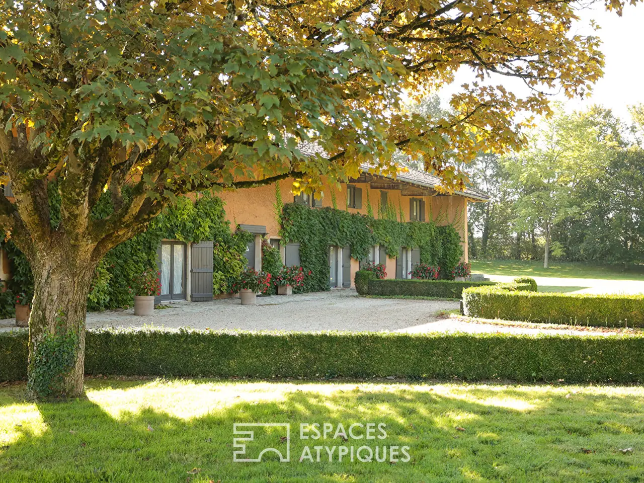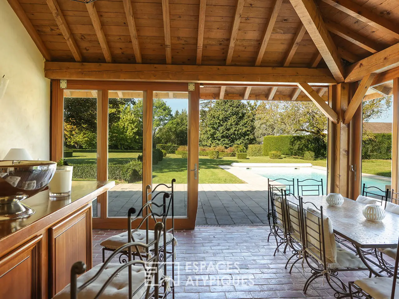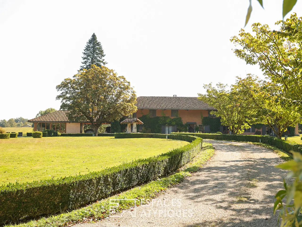 Nestled in a bucolic setting in the countryside on a wooded plot of approximately 1 hectare near POLLIAT, this character house offers a surface area of 470 M2 and generous volumes. This imposing building renovated in the 90s, in the architectural style of the region combines charm and tranquility, offering vast spaces in a comfortable setting, ideal for welcoming family and friends. This property has retained all the charm of the old, with authentic materials that will appeal to lovers of character properties. The spacious entrance links the rooms on the ground floor where you will discover a bright reception room with an impressive surface area with a magnificent fireplace in the center for cozy evenings by the fire. A small living room also with a fireplace provides access to a room with a shower room to be converted into an additional bedroom. The kitchen, and its large openings to the outside, will be the ideal place for family moments with its dining area. The staircase will take you to the sleeping area with 5 bedrooms, one of which has a shower room, a master suite with a bathroom and a dressing room, a leisure or sports room, a second bathroom, and a second dressing room. The outdoor space promises beautiful moments of relaxation in the large landscaped park, decorated with a beautiful swimming pool for sunny days, and a pool house with reception area equipped with a bar area. A perfect setting for outdoor receptions or to enjoy the calm of the surrounding nature. A carport and a small outbuilding complete this property, offering additional storage or development possibilities. And if you have an overwhelming desire for space, the possibility of acquiring more land is possible. Although located in a calm and green environment, the property is a few minutes from shops, schools and motorways and ten minutes from Bourg en Bresse guaranteeing a perfect balance between tranquility and accessibility. A real favorite for lovers of beautiful homes in the countryside. ENERGY CLASS: E / CLIMATE CLASS: D. Estimated average amount of annual energy expenditure for standard use, based on 2021 energy prices: between EUR9,190 and EUR12,490. Information on the risks to which this property is exposed is available on the Georisques website for the areas concerned. Jean-Charles BUATOIS, 06.27.47.49.38. Sales agent (EI), 911 278 737 RSAC. Bourg en Bresse. REF. 743EB Additional information * 10 rooms * 7 bedrooms * 2 bathrooms * 2 shower rooms * 1 floor in the building * Outdoor space : 9019 SQM * Property tax : 1 €