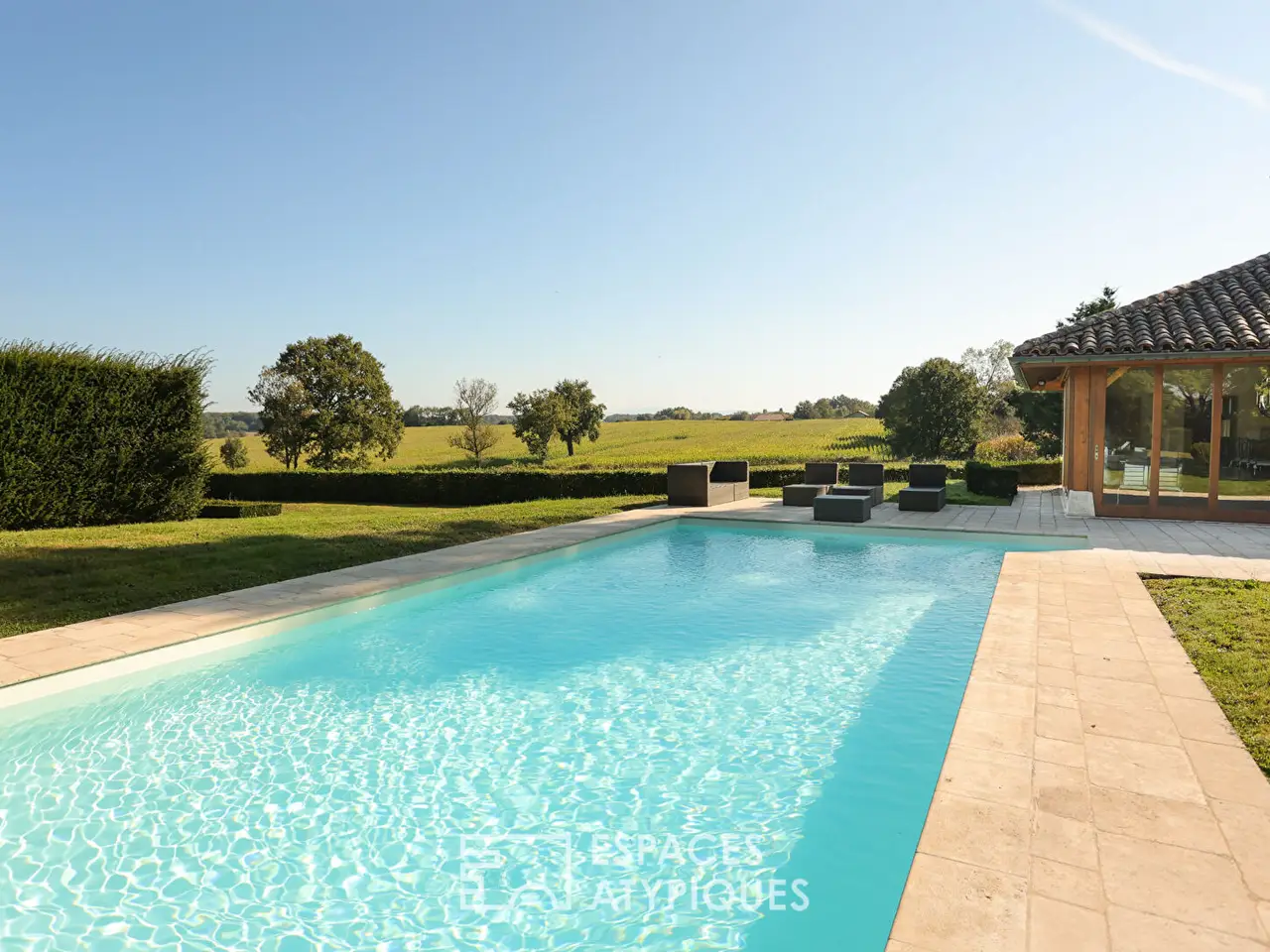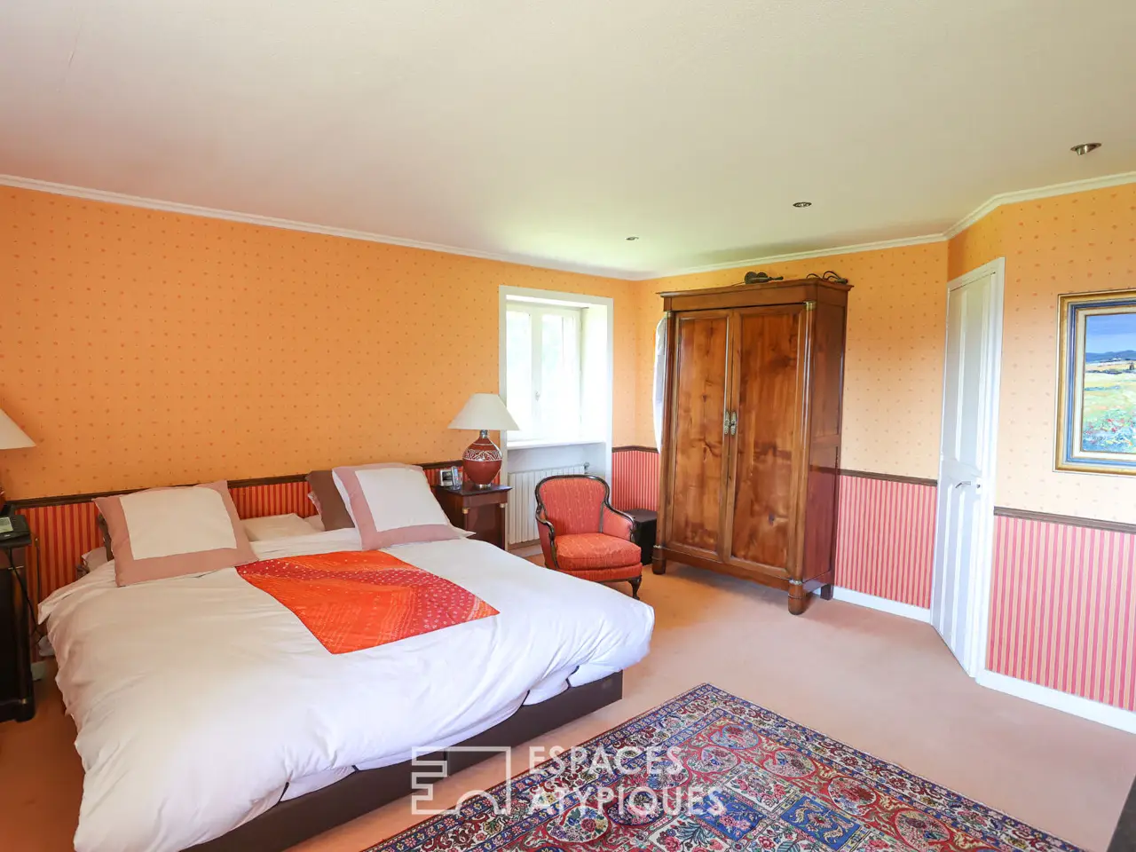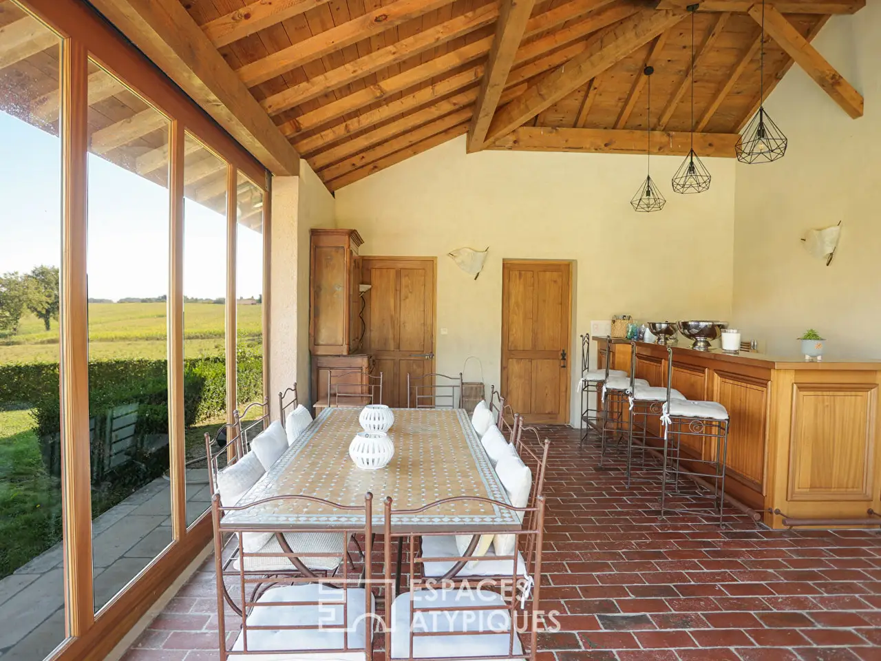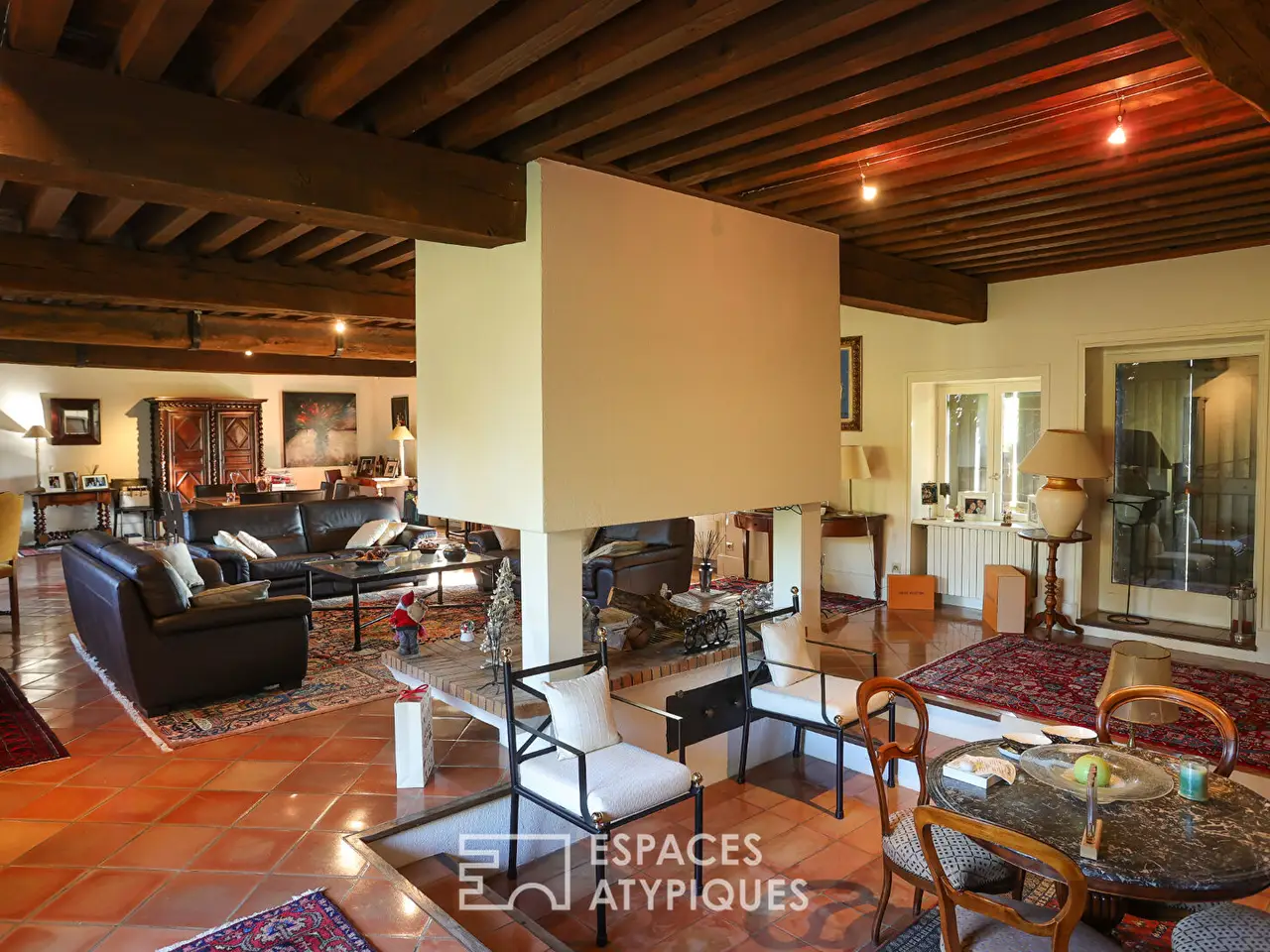 Nestled in a bucolic setting in the countryside on a wooded plot of approximately 1 hectare near POLLIAT, this character house offers a surface area of 470 M2 and generous volumes. This imposing building renovated in the 90s, in the architectural style of the region combines charm and tranquility, offering vast spaces in a comfortable setting, ideal for welcoming family and friends. This property has retained all the charm of the old, with authentic materials that will appeal to lovers of character properties. The spacious entrance links the rooms on the ground floor where you will discover a bright reception room with an impressive surface area with a magnificent fireplace in the center for cozy evenings by the fire. A small living room also with a fireplace provides access to a room with a shower room to be converted into an additional bedroom. The kitchen, and its large openings to the outside, will be the ideal place for family moments with its dining area. The staircase will take you to the sleeping area with 5 bedrooms, one of which has a shower room, a master suite with a bathroom and a dressing room, a leisure or sports room, a second bathroom, and a second dressing room. The outdoor space promises beautiful moments of relaxation in the large landscaped park, decorated with a beautiful swimming pool for sunny days, and a pool house with reception area equipped with a bar area. A perfect setting for outdoor receptions or to enjoy the calm of the surrounding nature. A carport and a small outbuilding complete this property, offering additional storage or development possibilities. And if you have an overwhelming desire for space, the possibility of acquiring more land is possible. Although located in a calm and green environment, the property is a few minutes from shops, schools and motorways and ten minutes from Bourg en Bresse guaranteeing a perfect balance between tranquility and accessibility. A real favorite for lovers of beautiful homes in the countryside. ENERGY CLASS: E / CLIMATE CLASS: D. Estimated average amount of annual energy expenditure for standard use, based on 2021 energy prices: between EUR9,190 and EUR12,490. Information on the risks to which this property is exposed is available on the Georisques website for the areas concerned. Jean-Charles BUATOIS, 06.27.47.49.38. Sales agent (EI), 911 278 737 RSAC. Bourg en Bresse. REF. 743EB Additional information * 10 rooms * 7 bedrooms * 2 bathrooms * 2 shower rooms * 1 floor in the building * Outdoor space : 9019 SQM * Property tax : 1 €