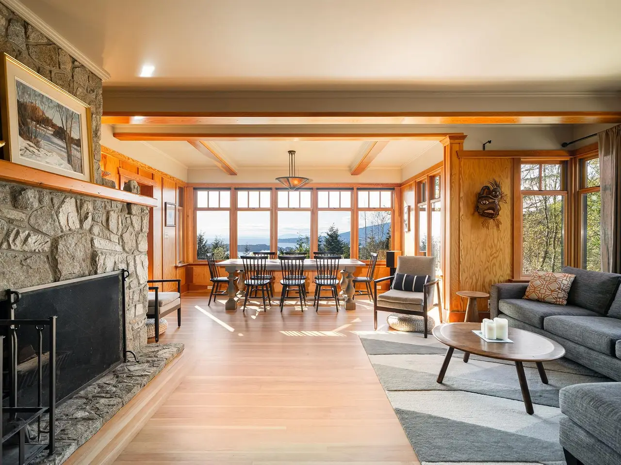 One of the most revered acreage properties on Bowen Island, priced well below assessed value. This private 5-acre elegant, rural estate features a stunning Craftsman home perched high with coastal ocean & island views from every room. The 4 luxurious bedrooms all have ensuites, and 2 bedrooms have their own entries - a perfect setup for a B&B. The kitchen is for those who entertain, with a 6-burner cooktop, double wall ovens, and a separate prep area. Craftsman homes are known for comfort, and this home is no exception with its wood-burning fireplace, warm wood paneling, coffered ceilings, and fir flooring. Outside is an established garden with apple, pear, Asian pear, quince, & cherry, plus many flowering trees & shrubs. It is an exceptional combination of nature, privacy, & luxury.