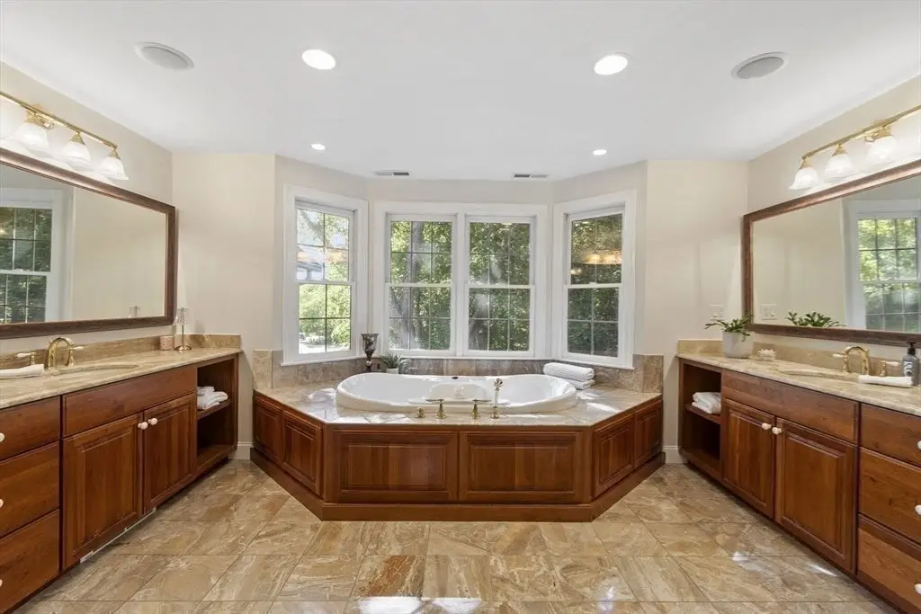 THE PERFECT HOUSE FOR HOSTING AND ENTERTAINING! West Boxford cul-de-sac neighborhood in convenient location minutes from Rt. 95. Beautiful Colonial w/ a dramatic entry into a double foyer w/ marble flooring, Home Office & front to back Living Room/Dining Room combination, all with hardwood floors w/ Mahogony inlay and crown moldings. Custom built ins create a natural divider between the formal Living Room with gas FP and DR which leads into the well-appointed Kitchen w/ a 5 burner gas stove & large vent hood, Large family room w/ stunning FP, vaulted ceiling, skylights & sliders to patio. 4 substantial bedrooms on second floor, 2 en-suite. The primary bedroom is absolutely amazing w/ a gas FP, front to back walk in closet and an impressive primary bath w/ a separate shower, 2 individual sinks separated by the jacuzzi. The LL is set up for an in-law, au pair or guest suite with a private entrance. IDEAL backyard for an inground pool, just design your own "Staycation"!