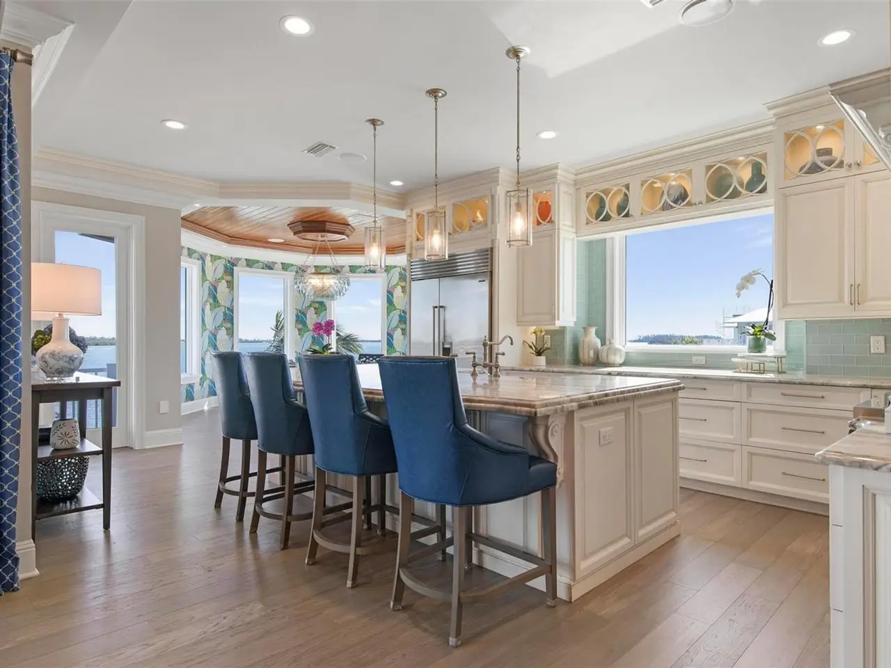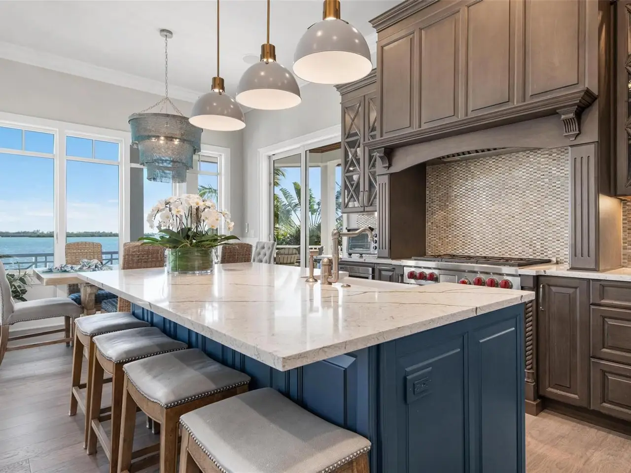 DIRECT BAYFRONT LIVING WITH BEACH TO BAY VIEWS - Welcome to Mandalay Bay on Anna Maria Island! The savvy investor has the opportunity to maximize earnings with short-term rentals allowed. This home features a total of 8,747 square feet under roof and spectacular 360-degree views from the gulf of Mexico to the intracoastal waters! Relish the island lifestyle in this bayfront home, three houses to the beach and a short stroll to the azure waters of the gulf of Mexico! This high-end turnkey furnished home offers seven-bedrooms, five well-appointed bathrooms and two half baths. This property shares a rich variety of options for the discerning buyer. The family-oriented buyer can realize their dream of securing a bayfront family retreat while building a legacy for generational wealth or enjoy the income as a vacation rental property. A home built with artful design and decorated features such as stylish upscale finishes. The walls of glass doors showcase breathtaking views of the intracoastal waterfront. Fabulous glass doors from the main living area and almost every bedroom open to spacious balconies for entertaining and relaxing. With nearly 6,000 square feet of living space, the home includes a stylish primary bedroom with an en-suite luxurious bath and a soaking tub, and a walk-in shower/steam room. The home also features two full kitchens featuring beautiful cabinetry, marble countertops and high-end appliances, including gas ranges. This home includes a wonderful theater and game room including a pool table. Outdoors, enjoy the many amenities with a full outdoor kitchen, bar and dining table in the covered porch, a large heated pool, waterfall and spa including poolside seating areas for soaking in the breathtaking scenery. This property is complete with a dock, two boat lifts (20,000 and 7,500 lbs.) and a jet ski lift. Head up to the roof top deck with 360-degree views from beach to bay with plenty of seating. All just a short stroll to the beach, where you can glimpse the sunsets and mesmerizing changing colors at night. This home offers buyers the opportunity to own a fabulous one of kind bayfront estate that was once a popular vacation rental. The home has just had $500,000 in new upgrades to the home, including 5 central heat and air units, new counter tops, new flooring, new garage doors, new tile around the pool, all new paint and wallpaper, light fixtures, furnishings, new washer and dryer and a beautiful home theater and game room for everyone to enjoy! Situated near the sugary sands of Anna Maria Island with the beautiful character of timeless architecture, this is a true bayfront oasis. Don't miss an amazing opportunity to make this serene island sanctuary your own.