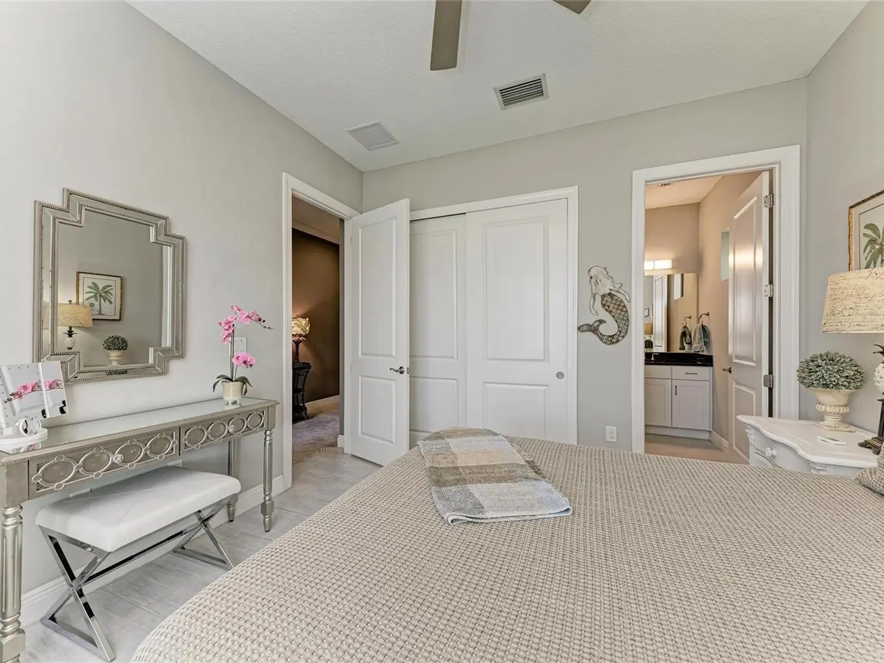 Discover this beautifully upgraded 4 bedroom, 4.5 bathroom home with tranquil water views in the gated Rosedale Golf & Country Club, designed for both luxury living and effortless entertaining. Featuring tile flooring throughout, crown molding, plantation shutters, custom draperies, and designer light fixtures, every detail has been thoughtfully curated to create a space that is sophisticated, welcoming, and move-in ready. The chef’s kitchen is a showpiece, offering granite counters and backsplash, custom cabinetry, abundant prep space, high-end KitchenAid appliances, a 5-burner gas cooktop, walk-in pantry, and a large island with breakfast bar and seating for family and friends. A butler’s pantry connects the kitchen to the formal dining room, making entertaining effortless. The kitchen opens to the great room, where sliding doors lead to the amazing outdoor living area. The backyard is an entertainer’s dream. Host gatherings or relax outdoors with a spacious entertaining area, heated saltwater pool and spa with sun shelf, travertine pavers, and lush, upgraded landscaping. The outdoor kitchen features two small beverage/wine refrigerators and a large island with seating, creating the perfect space for grilling, poolside dining, or enjoying quiet moments while taking in the beautiful water views. The owner’s suite is a luxurious retreat, offering picturesque water views, a large walk-in closet, dual sinks with granite counters, and a walk-in frameless glass shower. Two additional first-level bedrooms with ensuite bathrooms offer privacy and comfort. Upstairs, a generous loft bedroom suite with full bath and walk-in closet is ideal for overnight guests, extended stays, or a versatile media/game space. Additional upgrades include impact-resistant windows and sliding glass doors, tankless gas water heater, gutters, and designer touches throughout, ensuring both beauty and functionality. Living in Rosedale Golf & Country Club offers a resort-style lifestyle. Low HOA fees cover all landscaping and irrigation maintenance, high-speed fiber internet and cable, two manned 24/7 guard gates, plus two dog parks for residents. Social membership at the club provides access to tennis, a 22,000 sq ft clubhouse, fitness center, studio classes, full-service restaurant, Jr. Olympic-size heated pool, and year-round social events. For the avid golfer, Rosedale offers various levels of optional golf membership. Ideally located near I-75, Lakewood Ranch, UTC Mall, top-rated schools, shopping, dining, parks, medical facilities, and world-famous beaches, this home perfectly blends luxury, comfort, and an entertainer’s dream lifestyle.