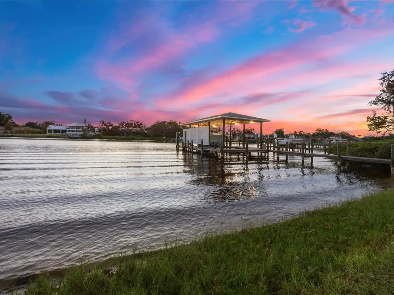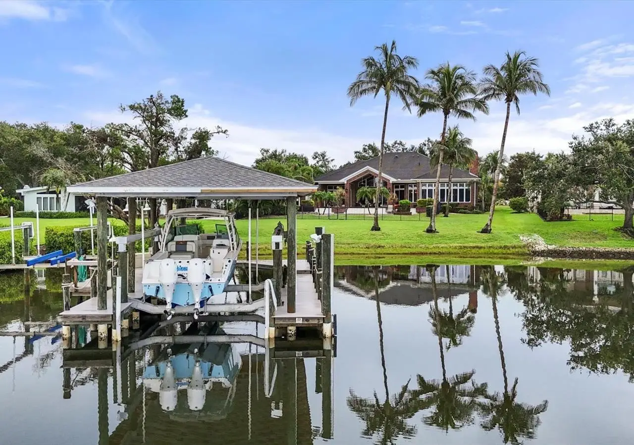 A boater's tropical paradise awaits you in this custom-built home located on Warner's West Bayou in desirable NW Bradenton. Imagine living the FL boating lifestyle where you can be out in your boat fishing or sightseeing in the beautiful Tampa Bay in a matter of minutes. This luxurious estate home features 4025 square feet with 3 bedrooms + den with 2 full baths + 2 half baths plus an oversized saltwater pool on a boatable waterfront lot. This beautiful home sits on an estate sized lot with 100' of water frontage and no HOA. There is a large covered dock that includes two boat lifts, one that is covered and fits a 50-foot yacht, 25,000lb lift, with water & electric & a fish cleaning station. Coming into the home are beautiful mahogany double doors with glass inserts that welcome you and set the scene for elegant living. Upon entering the home, you will love the open floor plan with its high ceilings and beautiful water views. The living and dining rooms are inviting, spacious, and feature wood floors, elegant crown moldings, chair rails and custom built-ins. To enjoy large gatherings and family fun there is an impressive, oversized family room/game room with wood-burning fireplace and large windows that let in the sunshine, pool, and water views. The spacious kitchen which opens to the family room is a chef's dream with wood cabinetry, granite countertops, tile backsplash, newer stainless-steel appliances, a large center island with prep sink, and a built-in desk. Rest and relax in the master bedroom suite overlooking the lovely backyard with sliding doors opening to the pool area and water views. The master bath features travertine floors, a large walk-in shower and large tub made for two. Separated from the master bedroom are two spacious bedrooms and a hall bathroom with tub and walk-in shower. Next is the laundry room that is oversized featuring a newer washer & dryer, laundry sink, plenty of cabinets and a large closet. Out back everyone will love the oversized covered lanai that is a dream come true and keeps you shaded during the day while your family is enjoying the sunshine in the pool and spa. There is a pool bath and an outside shower plus a storage closet for all your boating gear. Watching the sunsets views while sitting on the lanai with your favorite beverage is a lovely way to end the evening. The backyard is fenced for your family and pets to run and play and there is an open beach for kayaking or canoeing. Another great feature is the oversized 40-foot three-car insulated A/C'd garage with large semi-circular driveway with parking area. Plenty of room to park, store your possessions, and work on your cars. All this is conveniently located to Sarasota/Bradenton airport, IMG Academy, restaurants, shopping, and the beautiful AMI Gulf beaches.