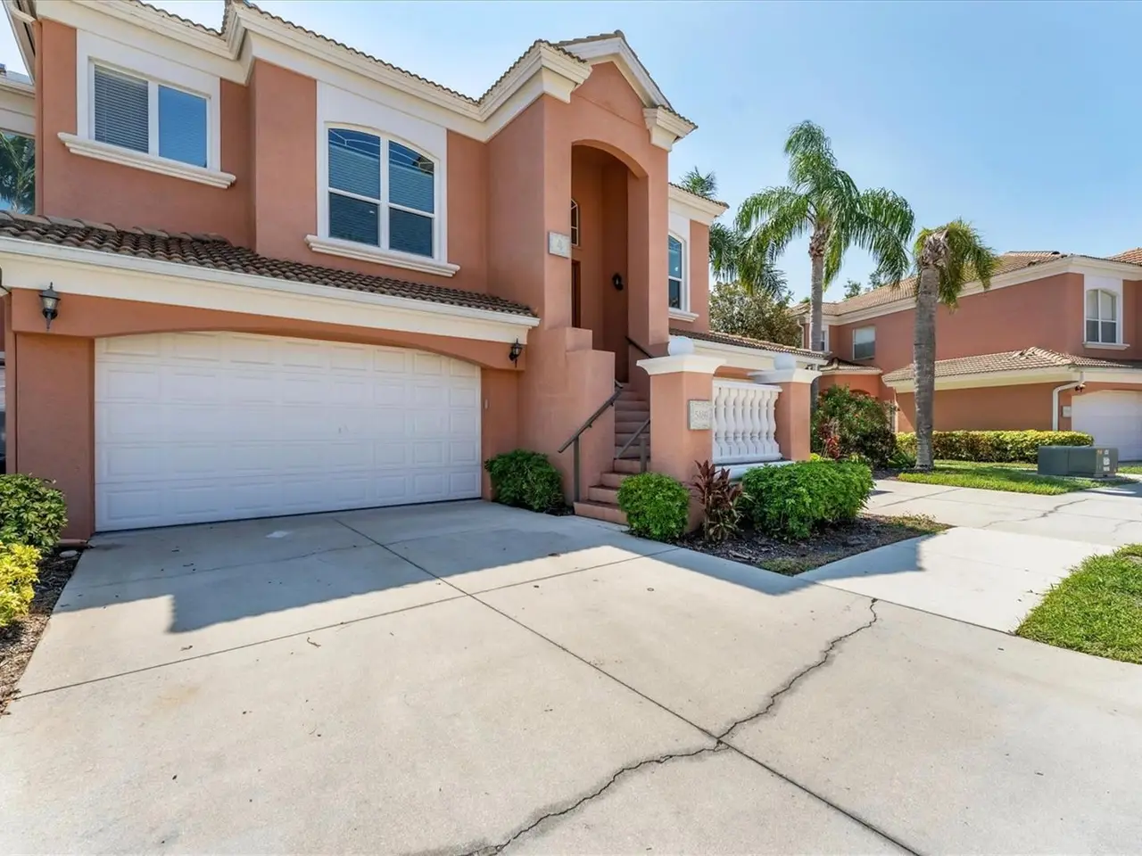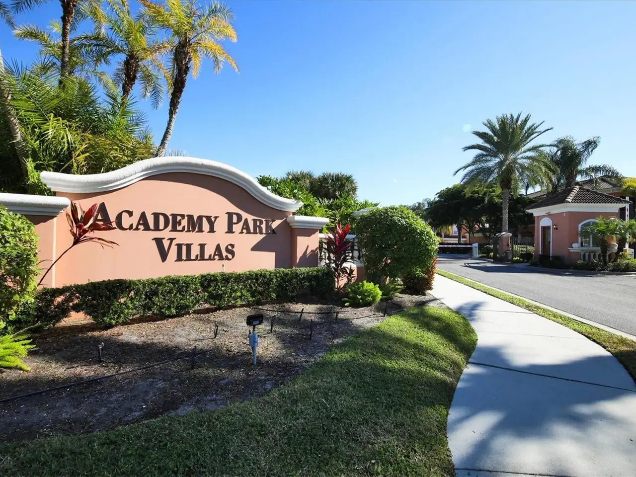 ONLY 4 BEDROOM VILLA available in gated Academy Park Villas, THE CLOSEST residential property to the main West campus entrance to IMG Academy, literally just down the sidewalk. Furnished as shown, this is over 2700 SF living space, 4 legit bedrooms, 3.5 bathrooms, lots of storage closets, vaulted ceilings in several rooms (2nd/top floor unit), screen porch overlooking trees, two car private garage. Owner has made the following improvements in recent month: All windows cleaned inside/outside, All interior walls/trim freshly painted, All kitchen cabinet doors freshly painted, two front bedroom blinds are new, living room and lanai furniture professionally machine cleaned, etc. All appliances and water heater are 2013, HVAC is 2014. Owners enjoy the use of a heated community pool and hot tub, as well as small clubhouse fitness room. Convenient to Legacy Hotel across the street.