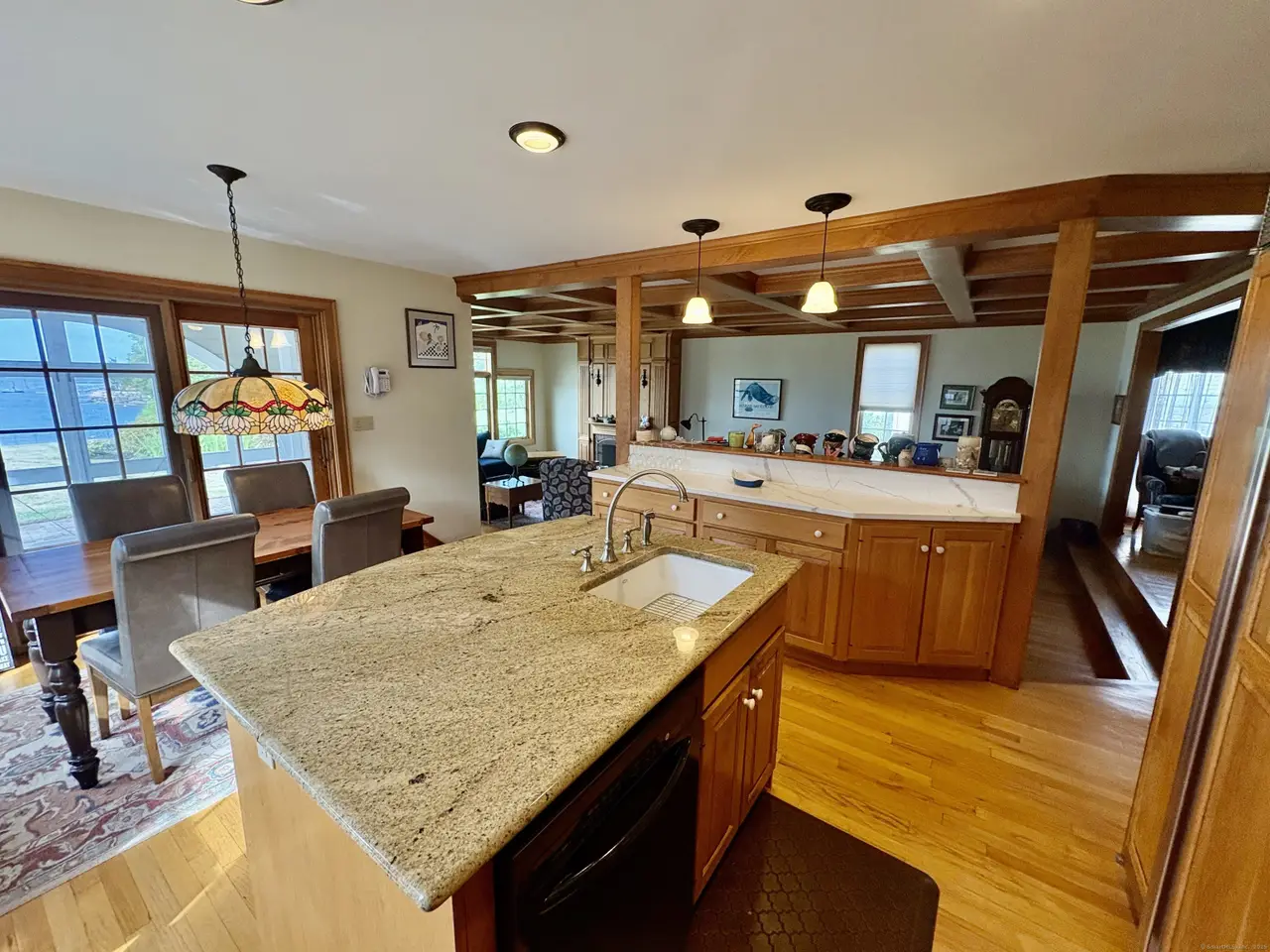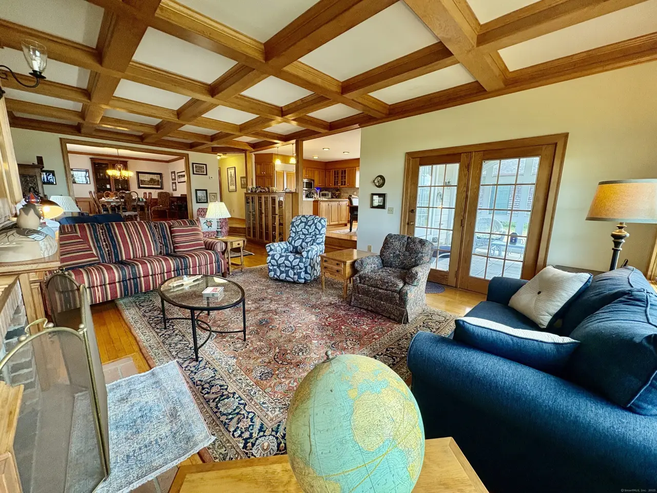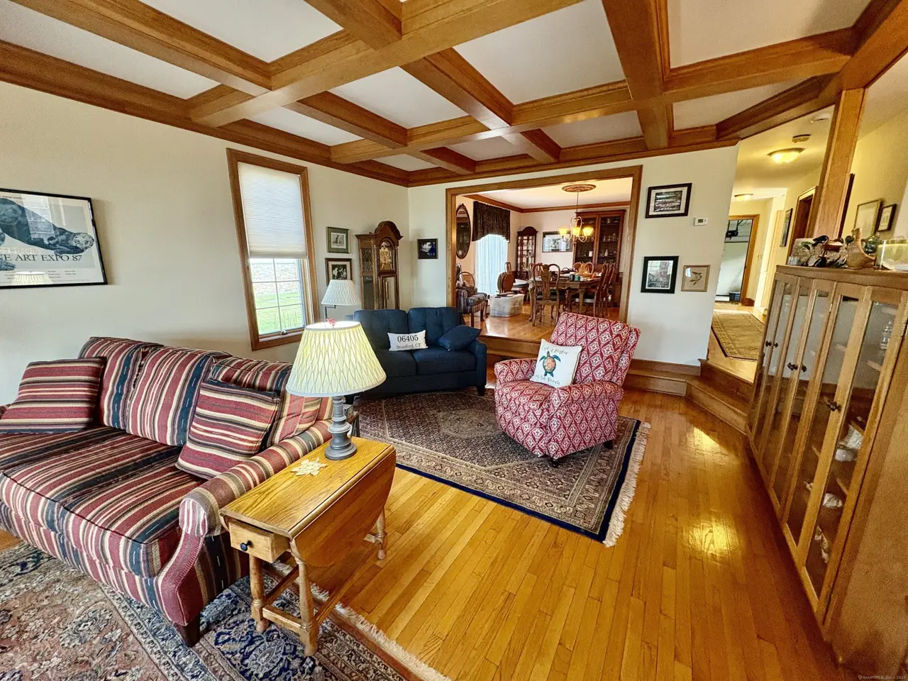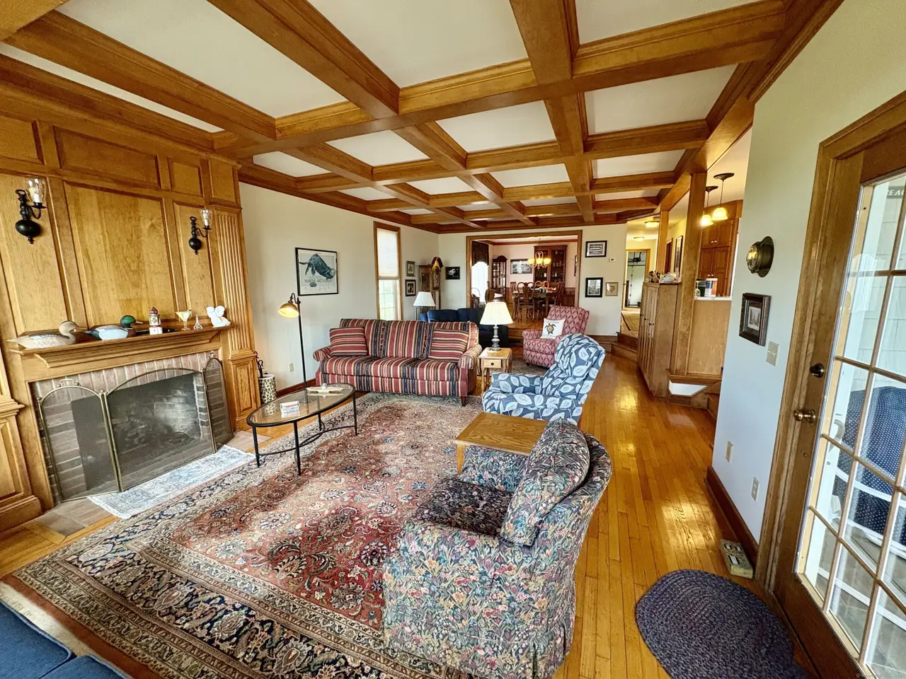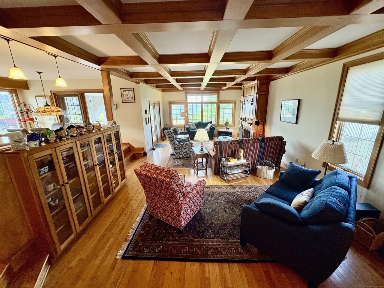 Custom built with hardwood floors and coffered ceilings