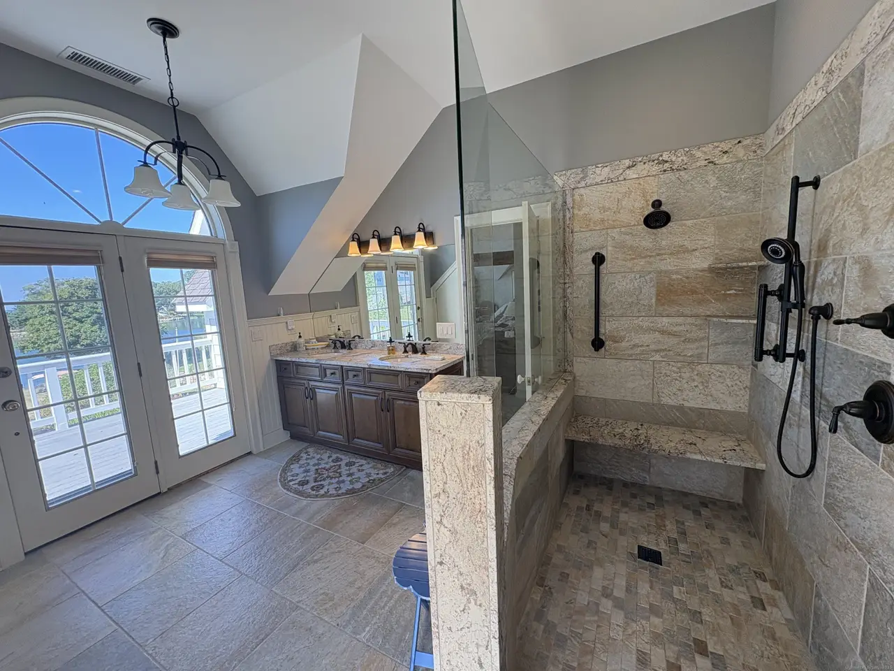 Remodeled bathroom with radiant heat tile floors