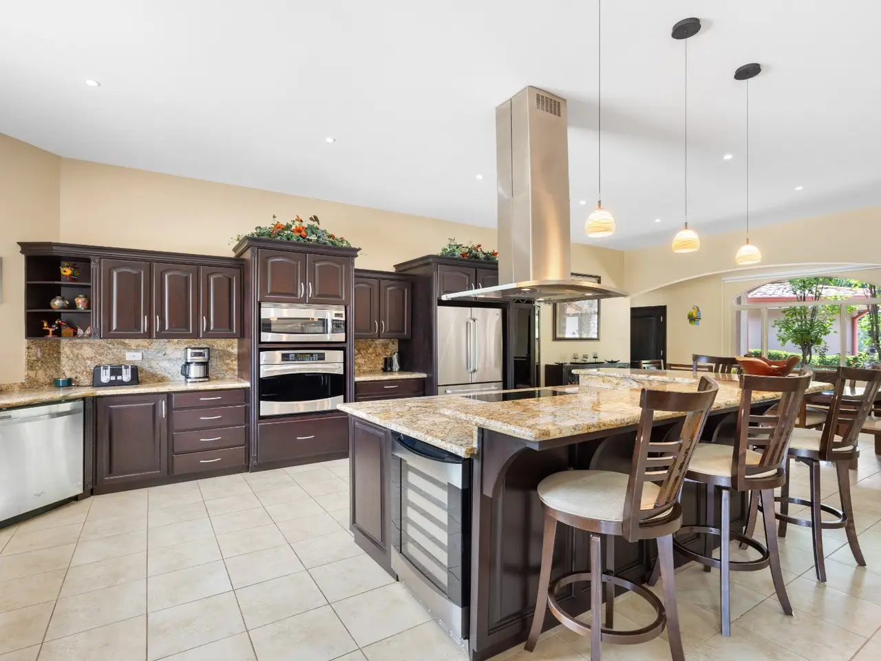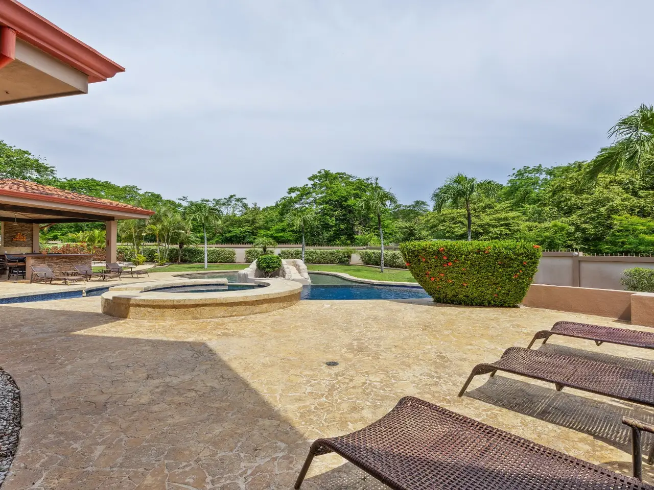 Exquisite Estate in Catalina Cove – Walk to the Beach, Live the Dream Welcome to Casa La Salle, a breathtaking private estate located in the gated community of Catalina Cove, just a short walk to the golden sands of Brasilito Beach and minutes from Playa Conchal. Spanning over 7,000 sq ft in the main residence and complemented by a 600 sq ft guest house, this 5-bedroom, 5.5-bathroom tropical retreat is set on a lush 5,451 m² (1.35-acre) fully fenced lot with impeccable landscaping, privacy, and space to entertain on a grand scale. From the moment you enter the estate through the long palm-lined driveway, you're greeted by elegant Mediterranean-inspired architecture, a resort-style pool with a cascading stone waterfall, a large jacuzzi, sun deck, outdoor kitchen, and tranquil fountain courtyard—all surrounded by mature palms and tropical gardens. Designed for relaxed luxury and effortless entertaining, the main living area features soaring vaulted ceilings, ample seating for large groups, and a seamless indoor-outdoor flow. The expansive chef’s kitchen is the heart of the home, complete with granite countertops, stainless steel appliances, custom hardwood cabinetry and a large center island perfect for gathering. Adjacent to the kitchen, a dedicated bar and lounge area opens to an oversized covered terrace and resort-style BBQ rancho—ideal for outdoor dining, poolside cocktails, or hosting family and friends in style. The main residence includes four spacious bedrooms, each with large windows and generous built-in closets. Two luxurious primary suites open directly onto the pool terrace and offer private covered sitting areas, spa-inspired bathrooms, and serene office nooks—providing the ultimate sanctuary for rest, productivity, and retreat. The 2 guest bedrooms offer king beds with en suite bathrooms. The independent guest house offers a full bedroom, bath, kitchen, and living space—ideal for visitors, caretakers, or rental income potential. Property Highlights: • 4 king beds & 1 bed | 5.5 baths across two homes with spacious social areas • Resort-style pool + jacuzzi with waterfall feature • Outdoor kitchen and BBQ area ideal for entertaining or hosting events • Multiple covered outdoor terraces for lounging, dining, and entertaining • Manicured landscaping, tropical palms, and decorative fountains • Secure, walled property with automatic gate and ample parking • Walk to the beach, shops, and restaurants • Located minutes from Playa Brasilito, Playa Conchal, Playa Flamingo, Tamarindo, Playa Grande, and the new Marina Flamingo • Close to top-rated international schools (La Paz and CRIA), shopping, and surf beaches • High-speed fiber optic internet • 2 car garage, and 2 storage rooms • Fully furnished and turnkey ready Whether you're looking for a luxurious full-time residence, a multi-generational family retreat, or an income-generating property in a prime beachside location, this Catalina Cove estate offers it all. Schedule your private showing today and experience the best of coastal luxury living in Guanacaste, Costa Rica.