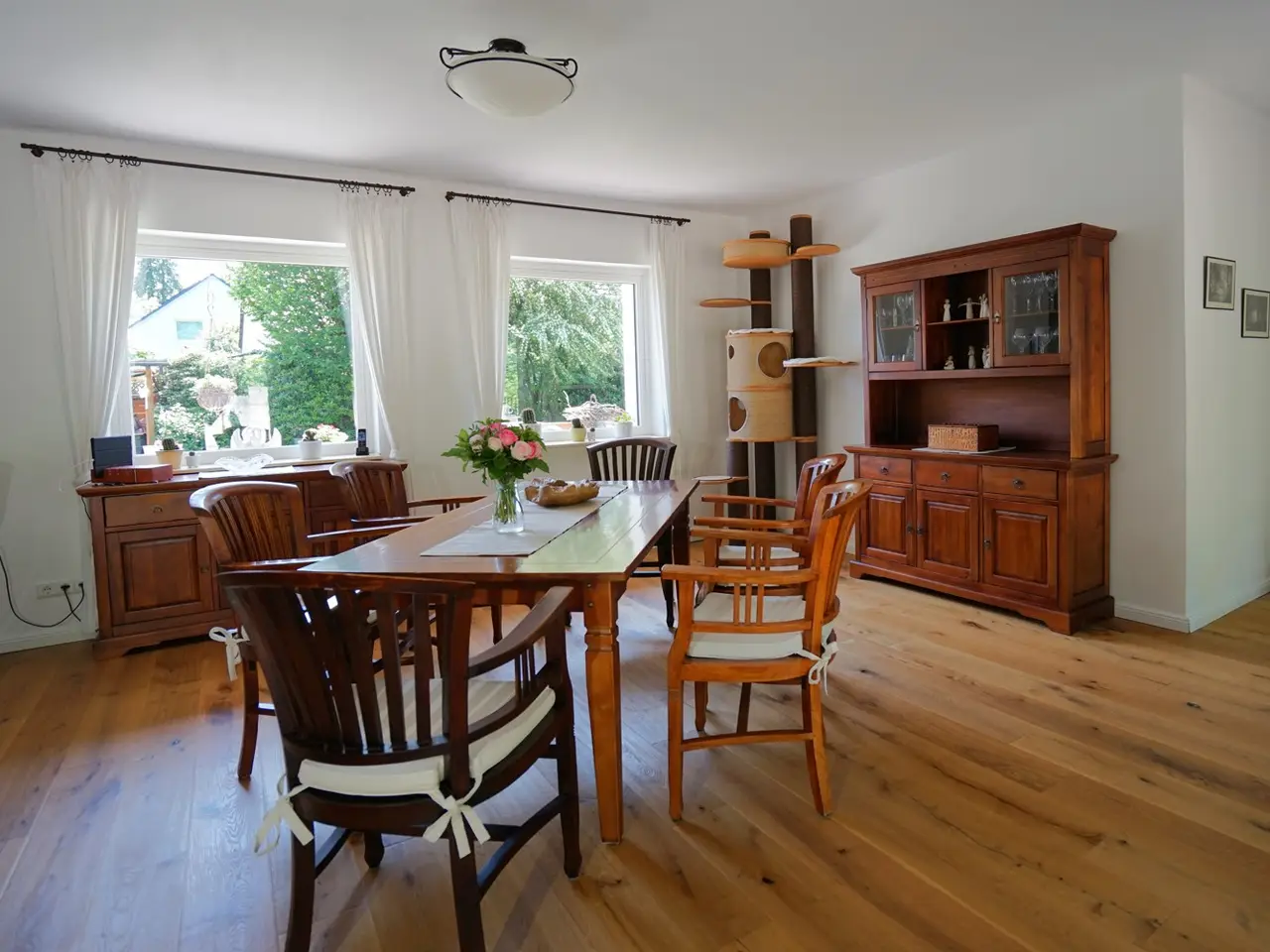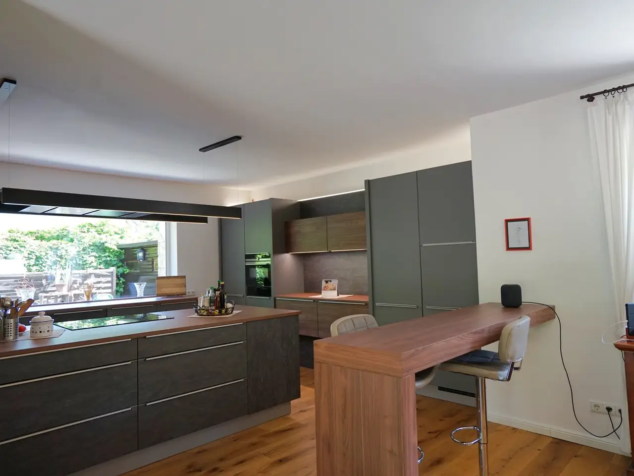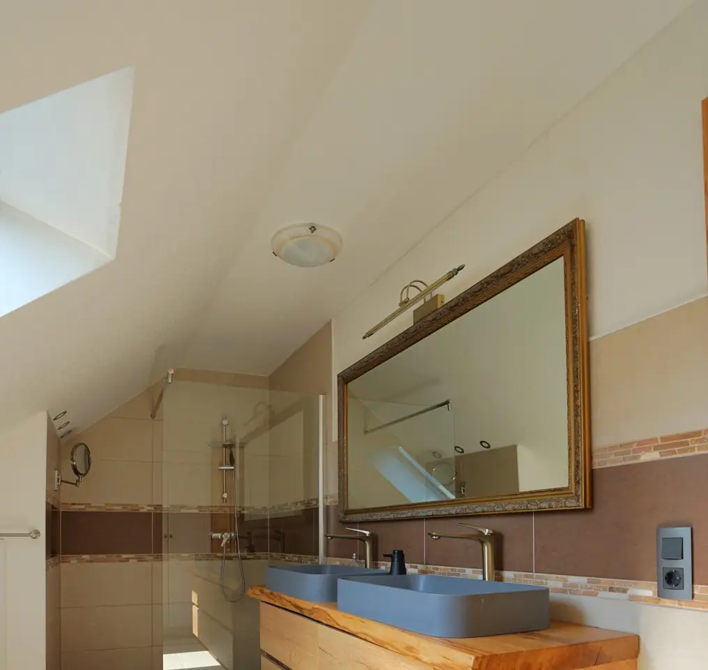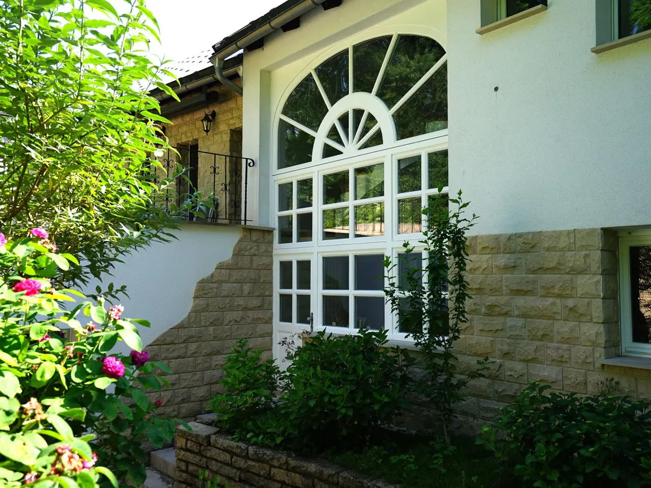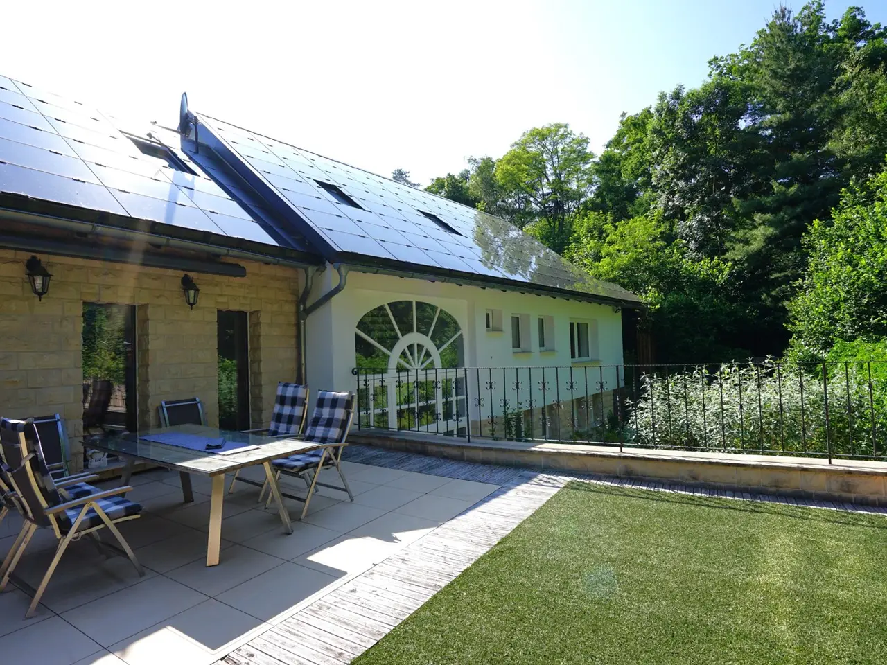 This spacious detached house with a total living/usable area of approx. 492 m² on a plot of approx. 1,180 m² is for sale. The property has been continuously modernized up to the present day and today offers the highest living comfort and a very special quality of life. It is ideal for families and people who want plenty of space for work and leisure activities. The house extends over three floors and has a spacious living room, a dining room with adjoining open-plan kitchen as well as several bedrooms and studies that can be individually designed, two bathrooms and a guest WC. The exclusive fitted kitchen is equipped with modern appliances, making it a wonderful place to cook and enjoy. Several large terraces and outdoor seating areas in different areas as well as a conservatory offer plenty of space for relaxation and social gatherings with friends and family. For fitness enthusiasts, there is an integrated fitness room in the basement with a pool table and direct access to the garden. A party room has also been set up. A large workshop with a separate sawing room offers hobby craftsmen the ideal space for creative projects. The entire roof of the property is equipped with an efficient photovoltaic system, while a solar thermal system supports the hot water supply. The pre-installed heat pump has a heating and cooling function and is integrated into the underfloor heating system to ensure a comfortable living climate all year round. Special attention is also paid to the security and efficiency of the property: electric shutters and a modern alarm system guarantee protection and privacy. A controlled ventilation system ensures a pleasant and healthy indoor climate at all times. The high-quality furnishings, starting with fine tiles in the entrance area, floorboards that blend harmoniously into the entire living and dining area, the beautiful cantilevered staircase and much more underline the exclusive character of the house. Finally, it should be mentioned that the property is quietly located at the end of a cul-de-sac. A garage measuring 3 x 10 meters, a storage room and a bicycle shelter round off this unique offer.