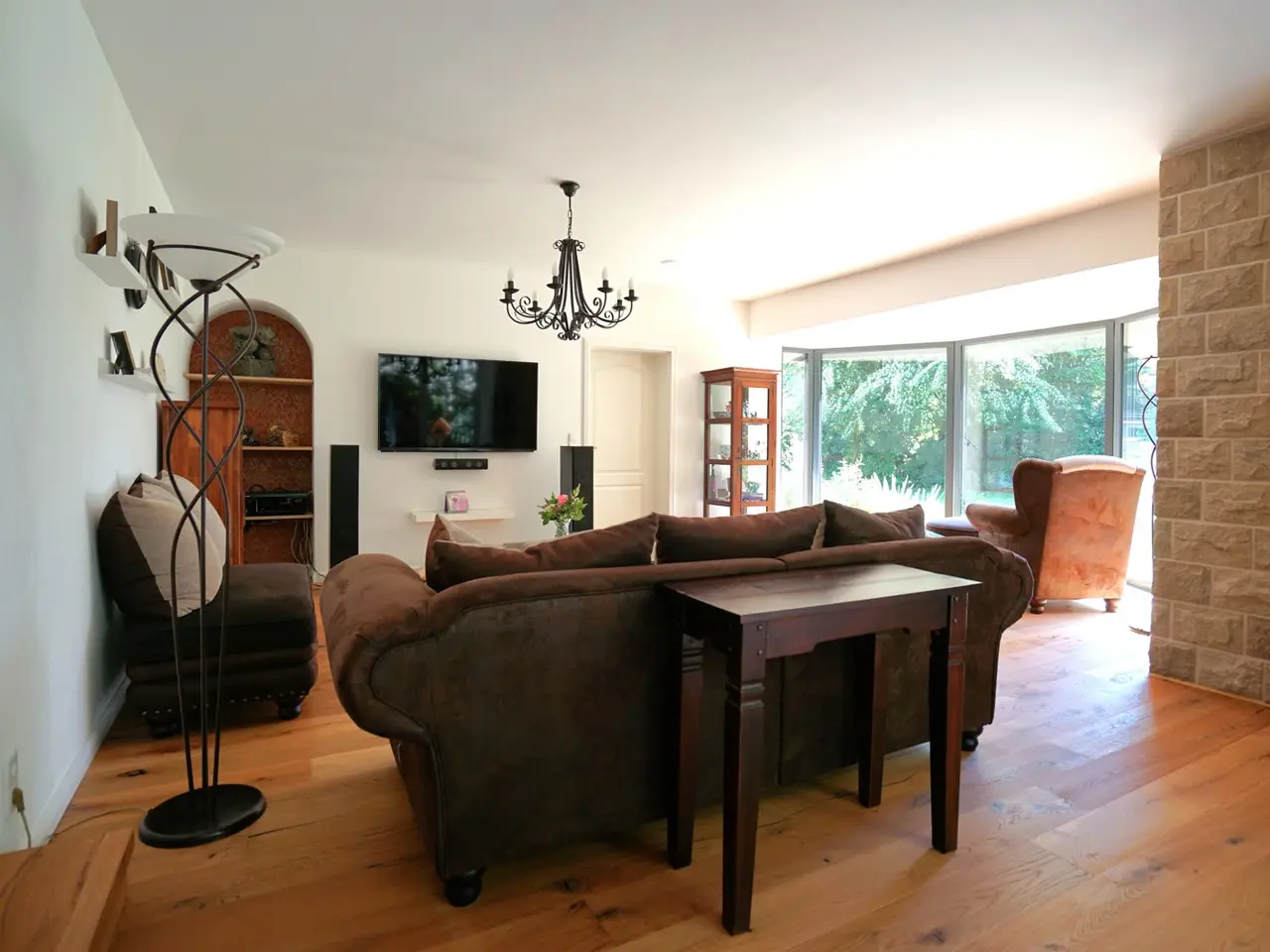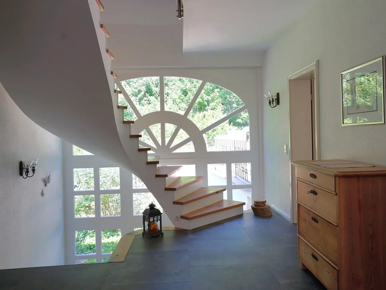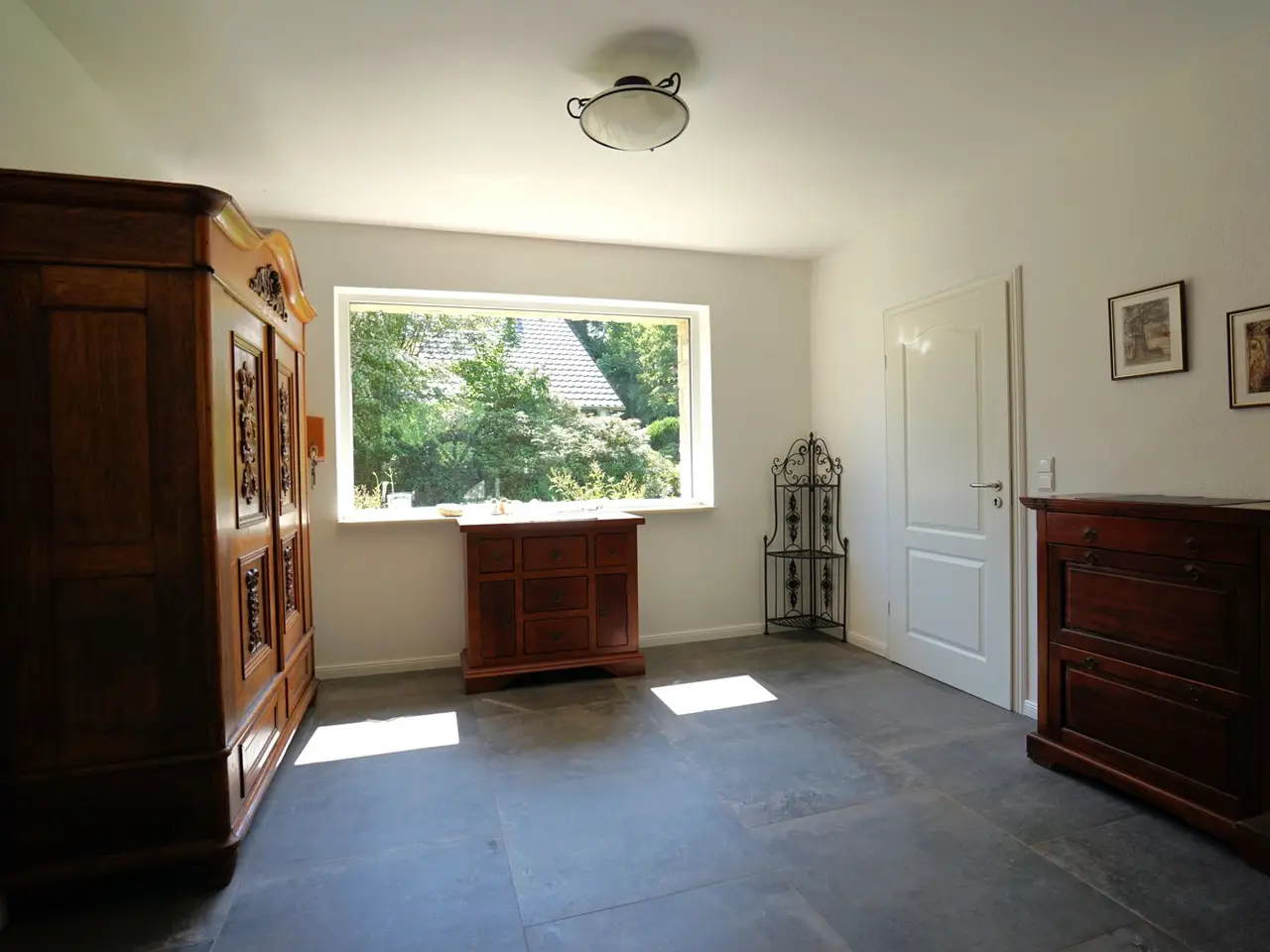 High-quality floorboards and fine tiles throughout