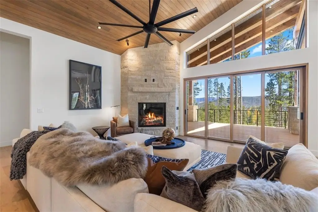 Introducing 226 Barton Way – a brand-new luxury mountain retreat nestled at the end of a private road in one of Breckenridge’s most exclusive settings. This stunning 5-bedroom, 7-bathroom estate spans 4,356 square feet, with an additional 840-square-foot 3-car garage and over 1,500 square feet of outdoor living spaces. Enjoy spectacular mountain views, privacy, and easy access to national forest trails and world-class skiing. Crafted with precision and designer finishes throughout, this home features vaulted ceilings, wide-plank white oak flooring, radiant heat, and custom cabinetry by Cutting Edge Woodworking. The gourmet kitchen is equipped with premium Sub-Zero, Wolf, and Cove appliances, quartzite countertops, and a large island with seating for 8. The main-level primary suite boasts a private deck, floor-to-ceiling limestone fireplace, and spa-inspired bathroom. The lower level includes four spacious en-suite bedrooms, a family room with fireplace and wet bar, and direct walk-out access to the patio with built-in gas fire pit and Bullfrog hot tub. Exterior highlights include cedar, standing seam metal, and stone siding, oversized decks, and a fully finished heated garage with smart access. This is refined mountain living—brand new, move-in ready, and unmatched in both design and location. This is staged furniture but negotiable to purchase.