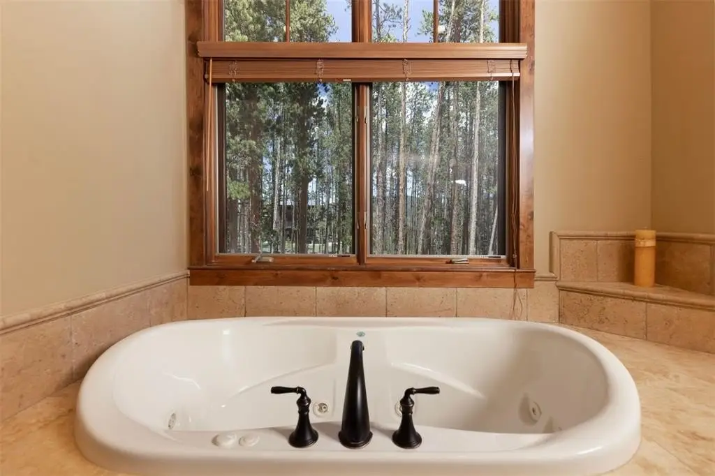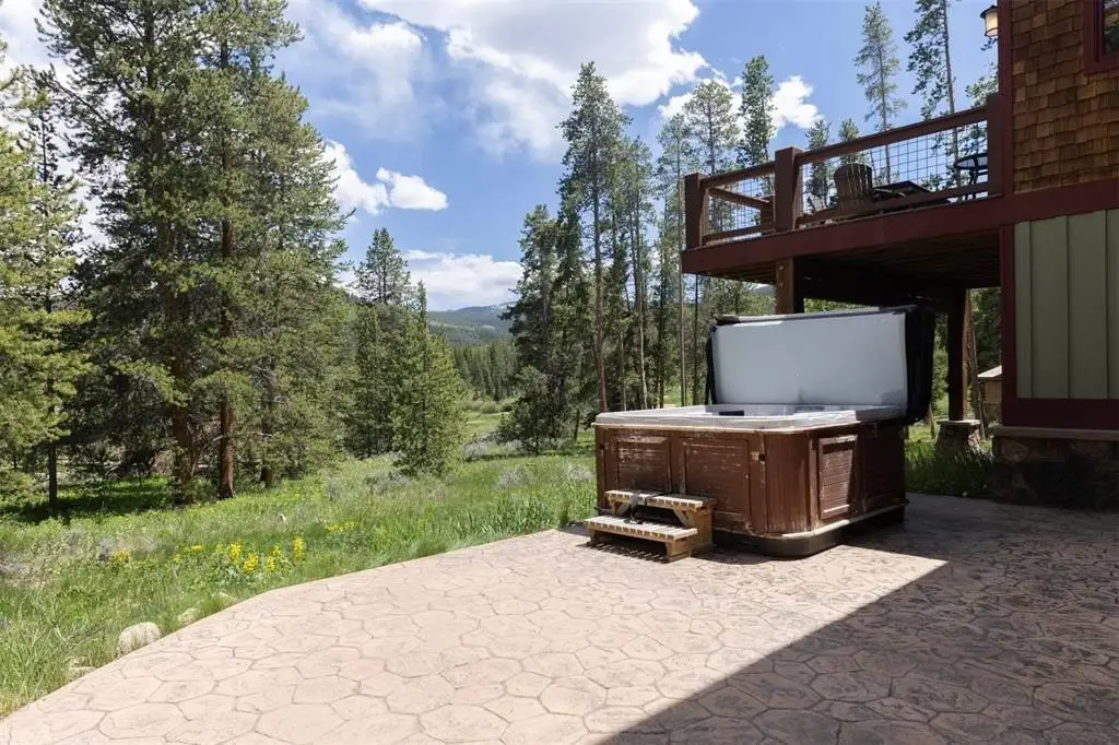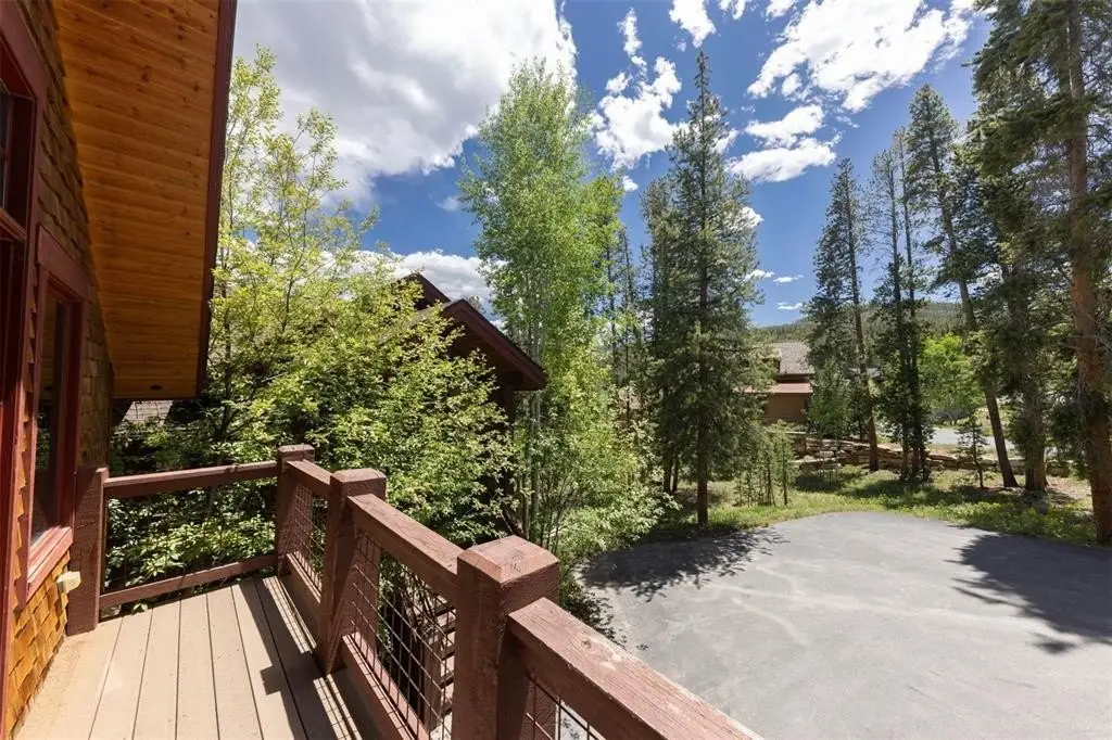 This classic mountain home is set low off Highlands Drive, nestled among protected trees and offering a rare combination of easterly mountain views and frontage along the iconic Jack Nicklaus–designed Breckenridge Golf Course. Overlooking holes 3 and 4 of the Beaver Course, the setting is private, picturesque, and serene. Inside, iron, stone, and wood elements create a bold first impression. Walnut floors span the main level, where a vaulted great room centers around a gas fireplace and expansive windows that bring the outdoors in. The layout flows easily into the dining area and well-equipped kitchen, featuring a gas range, custom hood, dishwasher, prep sink in the island, and a second sink by the window that perfectly frames the mountain scenery. Just off the kitchen, a covered deck is perfect for year-round use. The primary suite spans its own floor, complete with a private balcony, gas fireplace, office nook, walk-in closet, and a spacious bath with jetted tub, steam shower, and double vanity. The lower level is designed for comfort and entertaining, featuring a spacious family room where a wet bar with beverage fridge complements the cozy gathering space. Three additional bedrooms are located on this level—including two bedroom suites and a bunk room. Just outside, a private patio with a hot tub invites you to unwind and take in the peaceful alpine surroundings amidst the golf course.