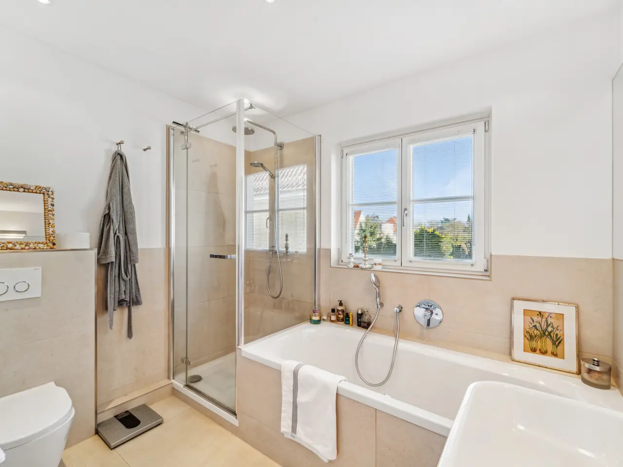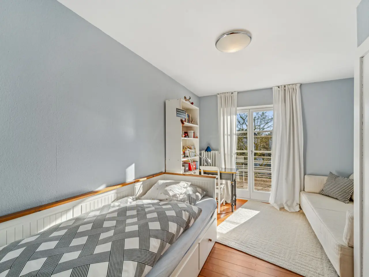 This charming semi-detached house, built in 1930, offers ample space for families and couples who value stylish living with a living area of approximately 163.6 m² and a plot of approximately 326 m². With a total of five rooms, the property impresses with its successful layout, combining both spaciousness and functionality. The ground floor features an inviting hallway, two rooms with floor-to-ceiling windows, and a half bathroom. The ground floor also houses a pantry, a utility room, and a utility room. A curved, historic wooden staircase leads to the upper floor, which houses the approximately 45 m² living and dining area and a fitted kitchen. Here, the high-quality furnishings create a pleasant living ambiance. The open space offers various design options and lends the house a warm and inviting atmosphere. A loggia, where you can sit sheltered even on inclement days, completes this level. A highlight of the house is the second floor, which houses the comfortable bedrooms and the bathroom. The bathroom is modern and, with a bathtub and separate shower, offers the opportunity to start or end the day in a relaxed manner. The bedrooms are generously sized and offer plenty of space for individual furnishing ideas. Another small room is ideal as a home office or creative space and rounds out the space on the second floor. The house was extensively modernized in 2015, which is reflected throughout the building. The outdoor area of the house, with its garden, invites you to relax. Here you can create a terrace, ideal for summer barbecues. Garden lovers will also find ample space for creative planting. In addition to the attractive indoor and outdoor areas, the property also boasts a convenient location. You benefit from good connections to the public transport network as well as nearby shops, schools, and other daily amenities. In summary, this semi-detached house from 1930 offers a successful blend of historic charm and contemporary living comfort. The modernization measures carried out in 2015 have contributed to the house meeting today's technical standards without losing the character of the original building. Those seeking a stylish home suitable for both families and couples will find this property an attractive option.