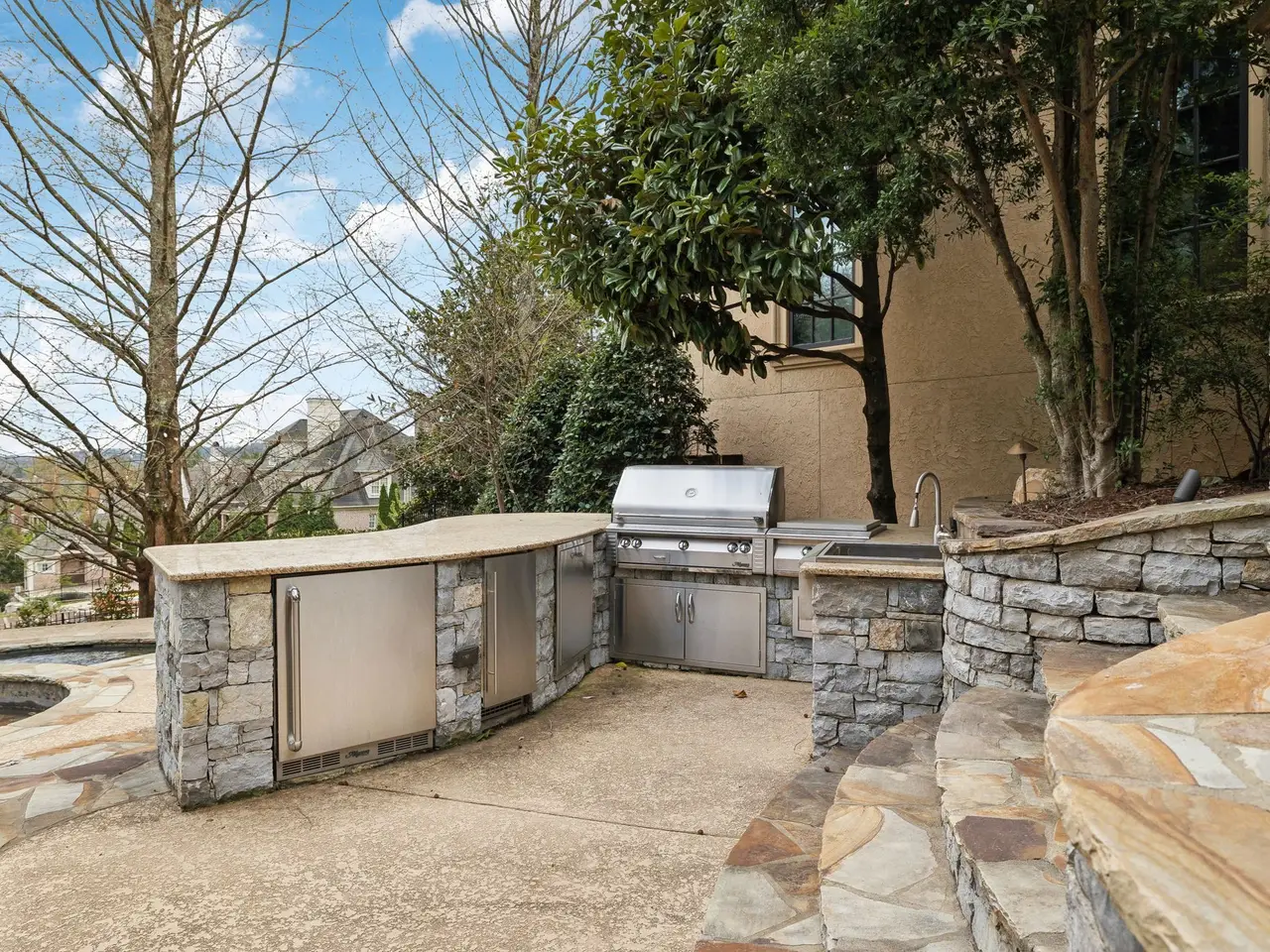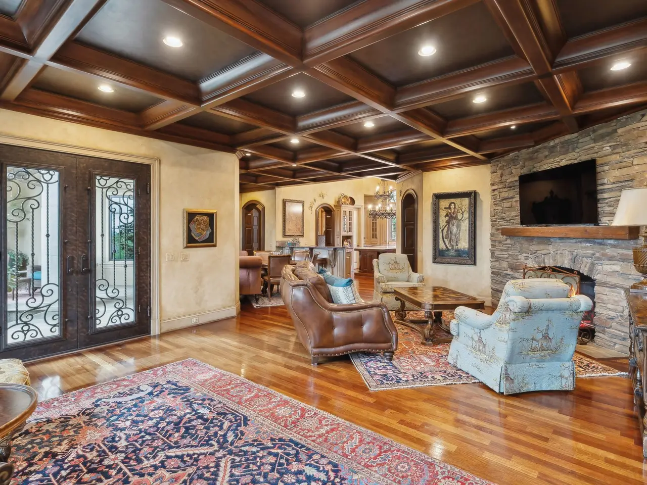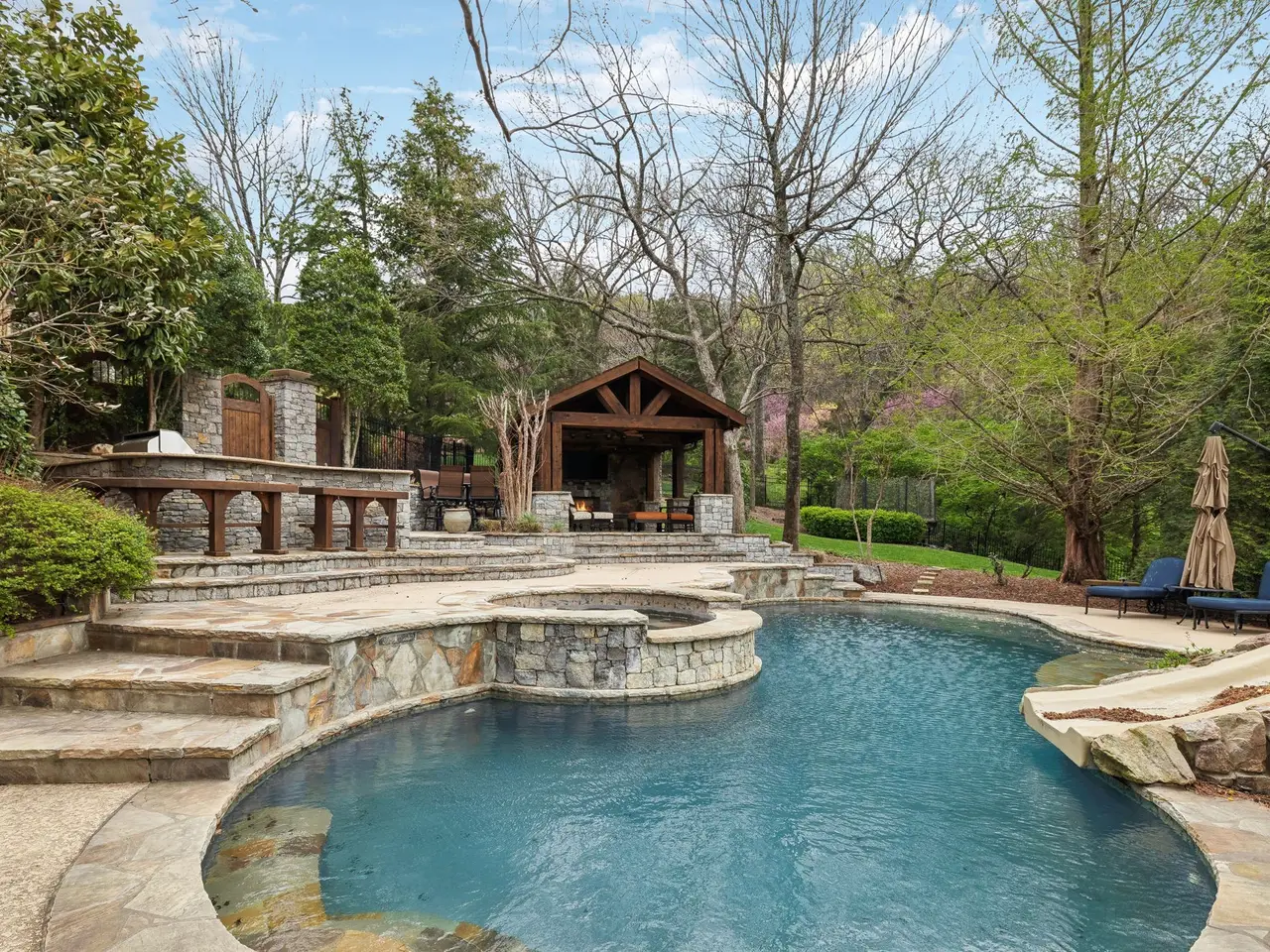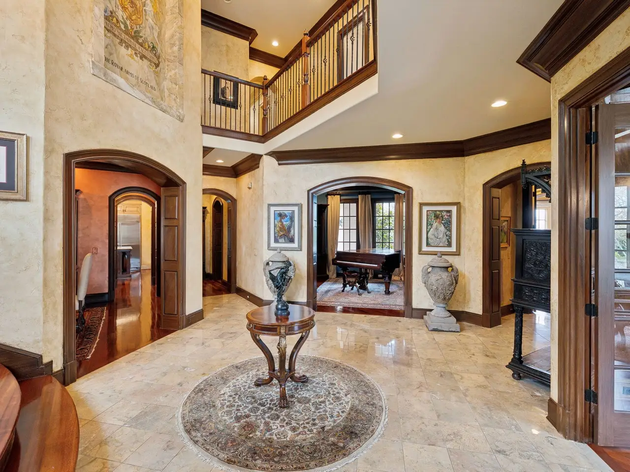 Nestled within the exclusive, gated enclave of Woodward Hills, this masterfully designed estate offers an unparalleled blend of architectural artistry and modern luxury. This residence is a true masterpiece, featuring hand-hewn limestone from the historic Avon Conley Farm in Woodbury, TN. Every inch of this home exudes elegance, with interiors curated by nationally renowned artisans, Faux Design and Jay Bernard, whose exceptional work brings depth and sophistication to every space. The primary suite ceiling transforms from a serene daytime sky into a celestial nightscape, while the intricately painted dome above the grand spiral staircase creates a breathtaking focal point in the foyer. Designed for both entertaining and relaxation, this home boasts an abundance of indoor and outdoor living spaces. The grand entry foyer leads to a chef's kitchen outfitted with premium stainless-steel appliances, while five fireplaces throughout add warmth and grandeur. The primary suite on the main level is a true retreat, featuring a spa-like bath with a Mother of Pearl ceiling, a footed tub, and exquisite tilework. Upstairs, a state-of-the-art media room seamlessly connects to the billiards lounge via a sophisticated wet bar, complete with a beverage center, microwave, and dishwasher. The third floor offers a private exercise studio, ensuring convenience and luxury at every level. Stepping outside, the estate transforms into a private resort-style oasis. A covered porch and a stunning pool with a custom-built slide and spa create the perfect setting for outdoor enjoyment. The outdoor kitchen, featuring a built-in gas grill, is ideal for al fresco dining, while the pool house with its own fireplace invites cozy gatherings under the stars. Every detail of this exceptional residence has been crafted to offer a harmonious blend of sophistication, comfort, and exclusivity. An extraordinary opportunity to own a home where art, design, and luxury living converge in perfect balance.