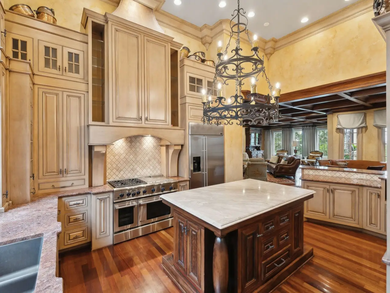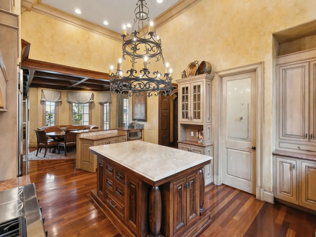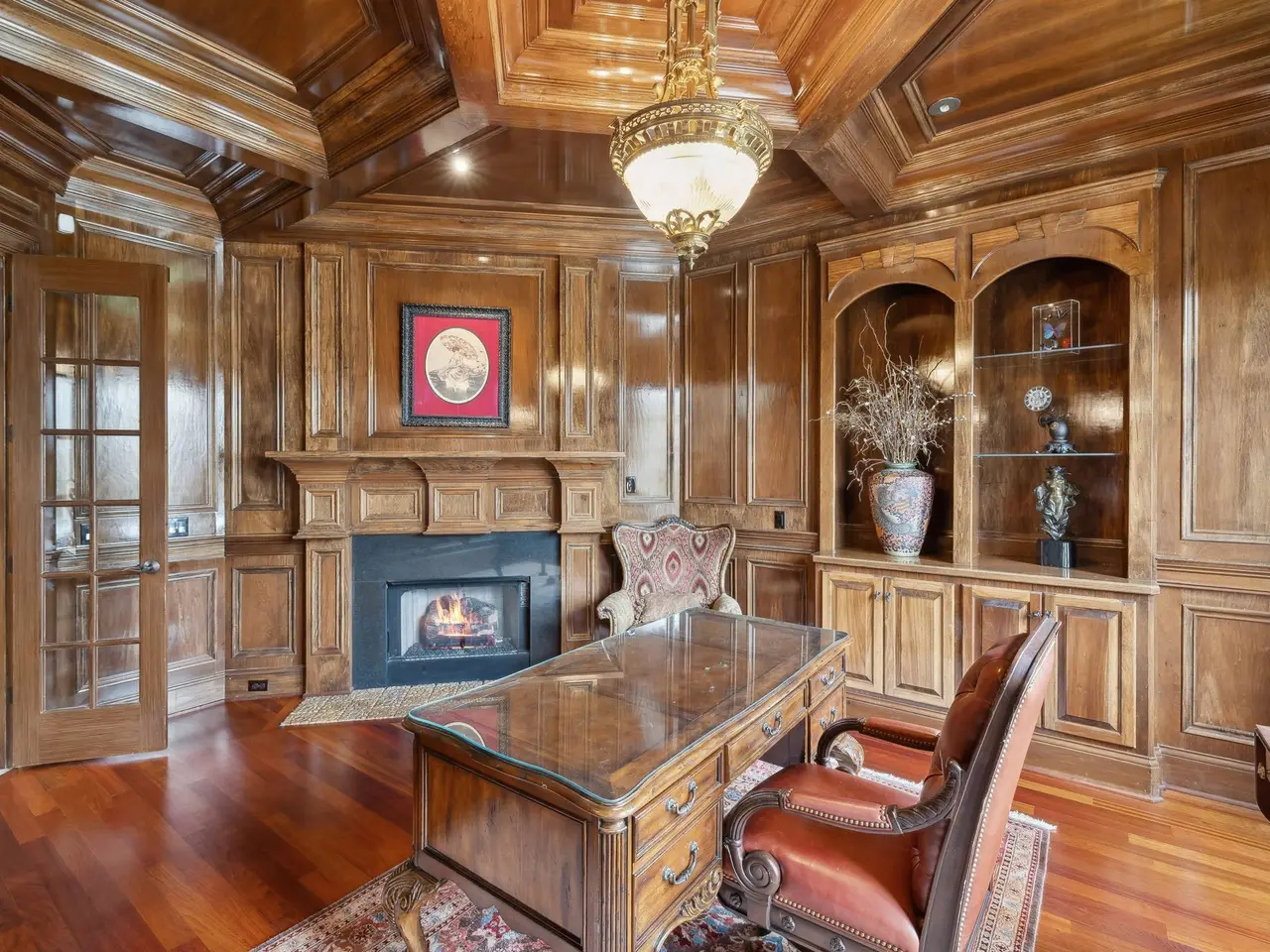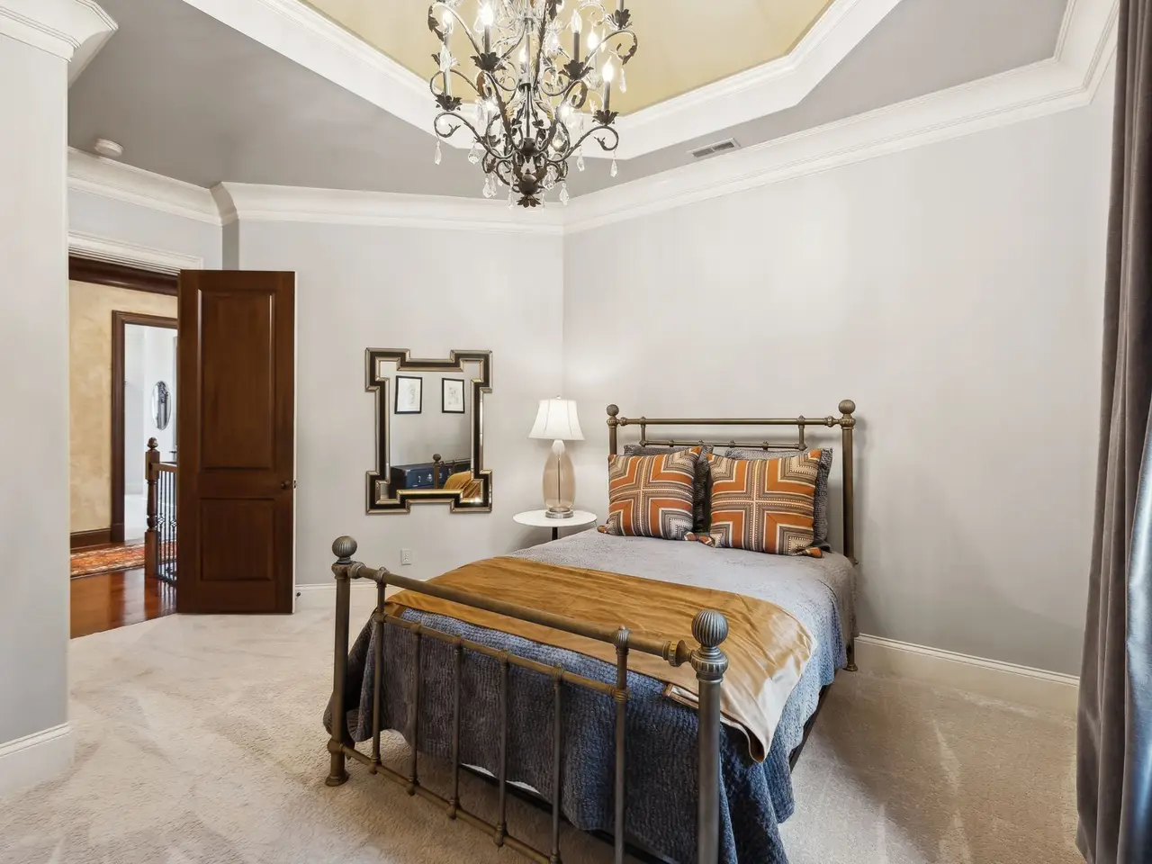 Nestled within the exclusive, gated enclave of Woodward Hills, this masterfully designed estate offers an unparalleled blend of architectural artistry and modern luxury. This residence is a true masterpiece, featuring hand-hewn limestone from the historic Avon Conley Farm in Woodbury, TN. Every inch of this home exudes elegance, with interiors curated by nationally renowned artisans, Faux Design and Jay Bernard, whose exceptional work brings depth and sophistication to every space. The primary suite ceiling transforms from a serene daytime sky into a celestial nightscape, while the intricately painted dome above the grand spiral staircase creates a breathtaking focal point in the foyer. Designed for both entertaining and relaxation, this home boasts an abundance of indoor and outdoor living spaces. The grand entry foyer leads to a chef's kitchen outfitted with premium stainless-steel appliances, while five fireplaces throughout add warmth and grandeur. The primary suite on the main level is a true retreat, featuring a spa-like bath with a Mother of Pearl ceiling, a footed tub, and exquisite tilework. Upstairs, a state-of-the-art media room seamlessly connects to the billiards lounge via a sophisticated wet bar, complete with a beverage center, microwave, and dishwasher. The third floor offers a private exercise studio, ensuring convenience and luxury at every level. Stepping outside, the estate transforms into a private resort-style oasis. A covered porch and a stunning pool with a custom-built slide and spa create the perfect setting for outdoor enjoyment. The outdoor kitchen, featuring a built-in gas grill, is ideal for al fresco dining, while the pool house with its own fireplace invites cozy gatherings under the stars. Every detail of this exceptional residence has been crafted to offer a harmonious blend of sophistication, comfort, and exclusivity. An extraordinary opportunity to own a home where art, design, and luxury living converge in perfect balance.