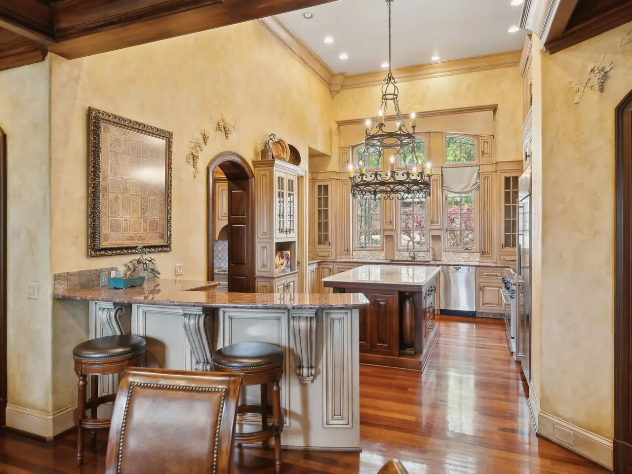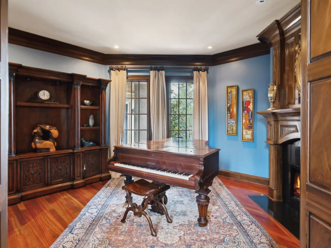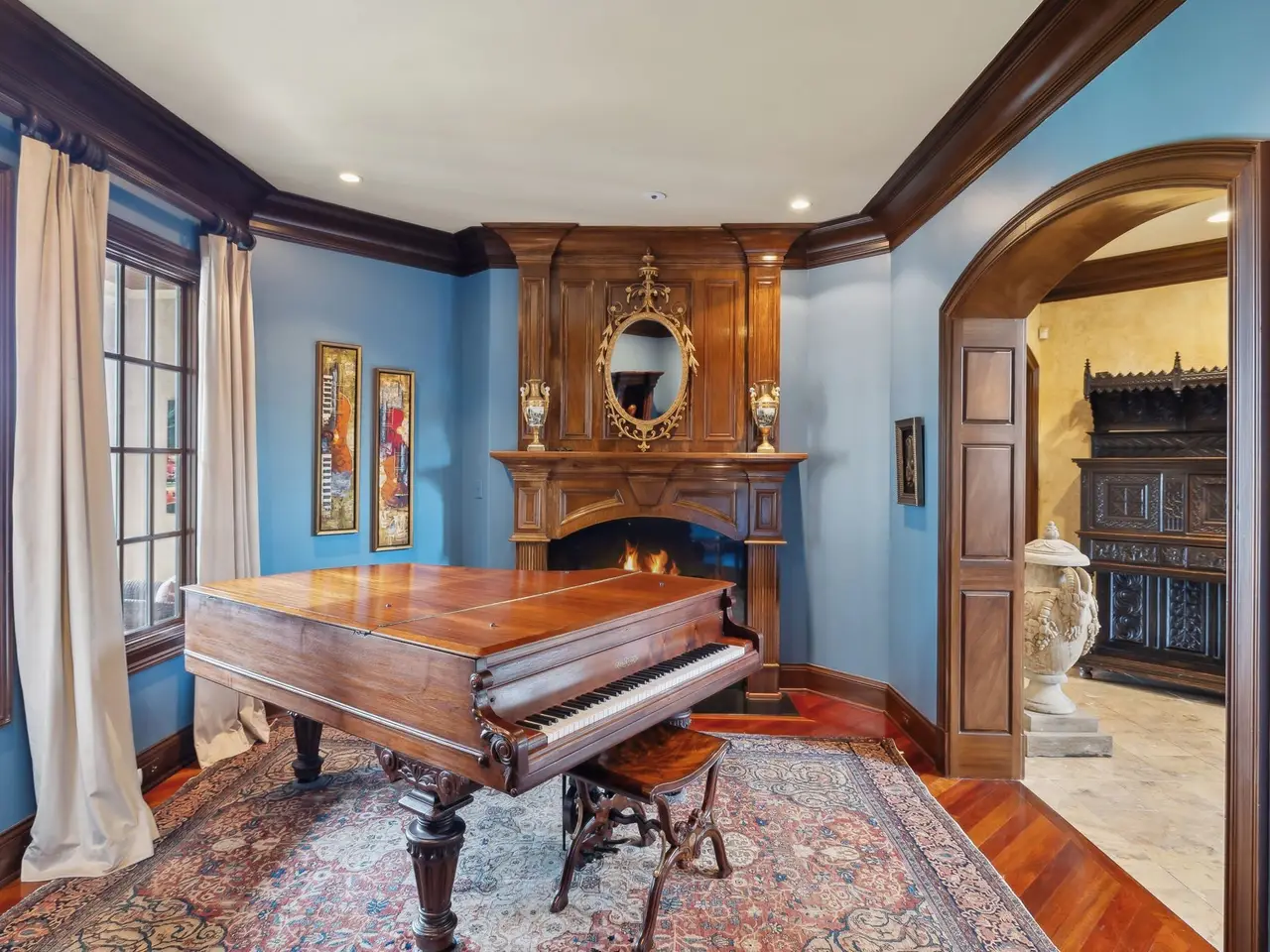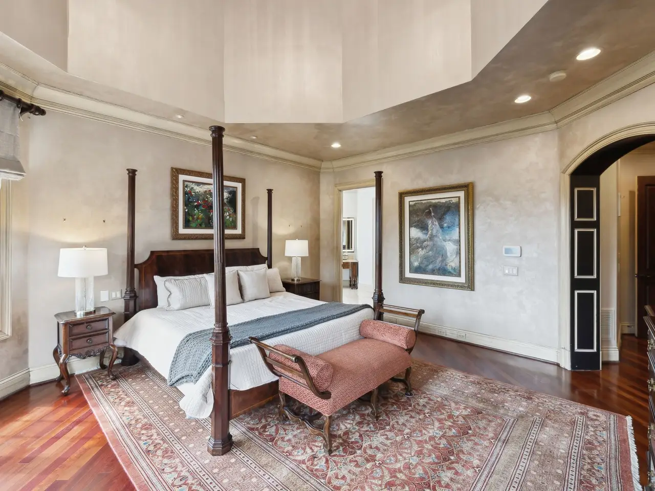 Nestled within the exclusive, gated enclave of Woodward Hills, this masterfully designed estate offers an unparalleled blend of architectural artistry and modern luxury. This residence is a true masterpiece, featuring hand-hewn limestone from the historic Avon Conley Farm in Woodbury, TN. Every inch of this home exudes elegance, with interiors curated by nationally renowned artisans, Faux Design and Jay Bernard, whose exceptional work brings depth and sophistication to every space. The primary suite ceiling transforms from a serene daytime sky into a celestial nightscape, while the intricately painted dome above the grand spiral staircase creates a breathtaking focal point in the foyer. Designed for both entertaining and relaxation, this home boasts an abundance of indoor and outdoor living spaces. The grand entry foyer leads to a chef's kitchen outfitted with premium stainless-steel appliances, while five fireplaces throughout add warmth and grandeur. The primary suite on the main level is a true retreat, featuring a spa-like bath with a Mother of Pearl ceiling, a footed tub, and exquisite tilework. Upstairs, a state-of-the-art media room seamlessly connects to the billiards lounge via a sophisticated wet bar, complete with a beverage center, microwave, and dishwasher. The third floor offers a private exercise studio, ensuring convenience and luxury at every level. Stepping outside, the estate transforms into a private resort-style oasis. A covered porch and a stunning pool with a custom-built slide and spa create the perfect setting for outdoor enjoyment. The outdoor kitchen, featuring a built-in gas grill, is ideal for al fresco dining, while the pool house with its own fireplace invites cozy gatherings under the stars. Every detail of this exceptional residence has been crafted to offer a harmonious blend of sophistication, comfort, and exclusivity. An extraordinary opportunity to own a home where art, design, and luxury living converge in perfect balance.