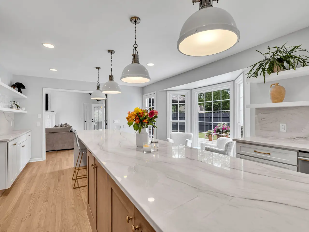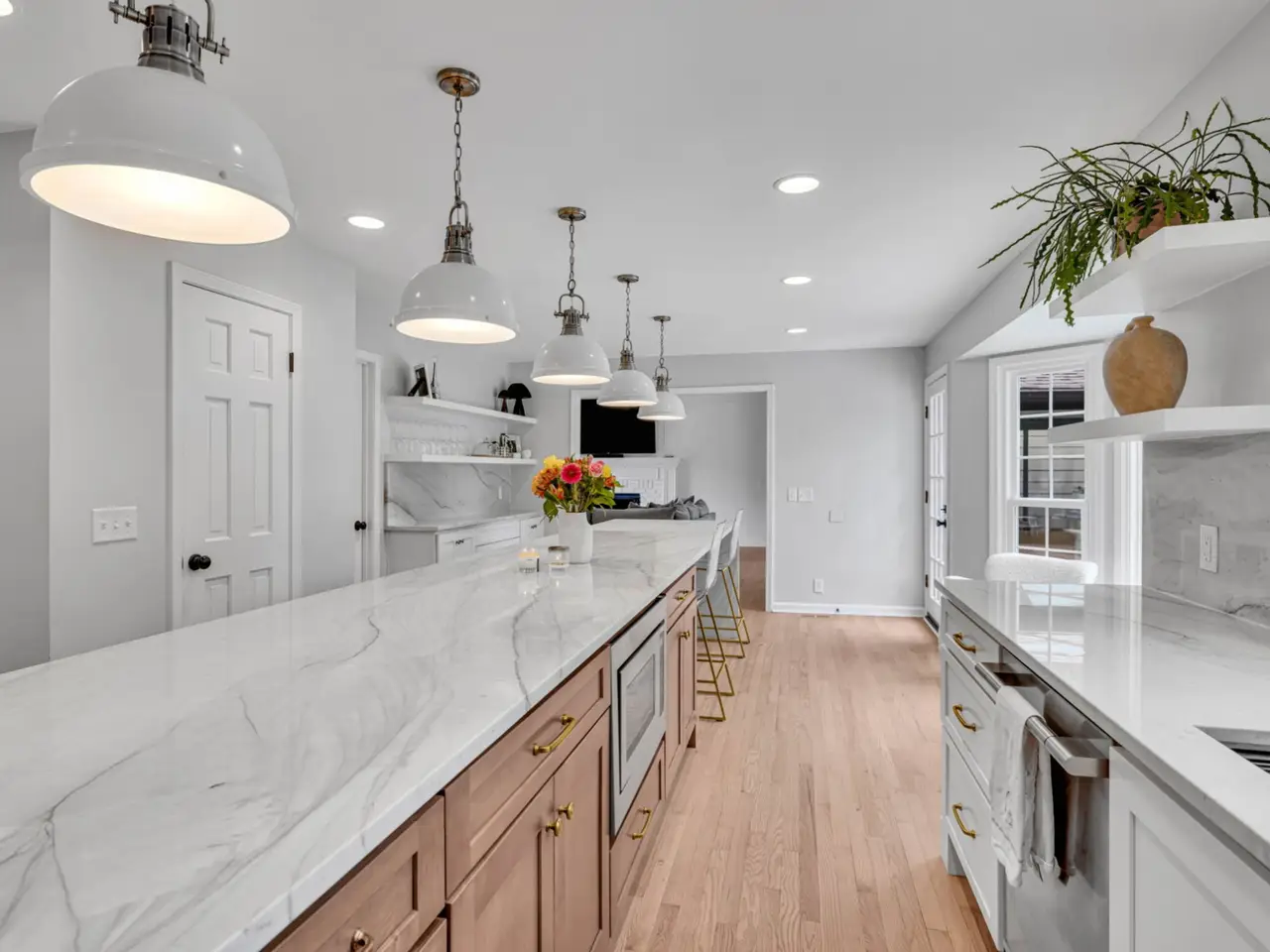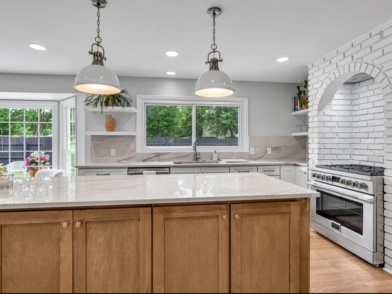 This beautifully renovated home (2021) sits on over an acre in one of Brentwood's most sought-after developments. From the moment you step inside, you'll be captivated by the show-stopping 17-foot quartzite waterfall island, complemented by Fulgor-Milano appliances and sleek, modern finishes throughout.