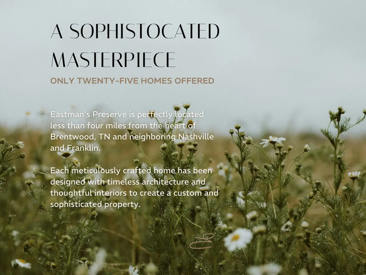 Amidst lush rolling hills, Eastman's Preserve is situated in the heart of Brentwood and nestled on a perfectly planned thirty-one acre haven of beauty. Only 25 homes will be available. This home sits on a private, level lot in the back of the community. Designed by renowned architect Pfeffer Torode, this masterpiece boasts an immaculate master suite on the main level. The sprawling kitchen with Butler Pantry, breakfast room, and dining room provide all the space you need for entertaining and opens up into the great room so you can seamlessly host and enjoy your guests. 4 additional bedrooms upstairs make it easy and convenient for visiting family or guests to enjoy their stay. The convenience to the heart of Brentwood cannot be matched and you'll find the top restaurants and shopping less than 10 minutes away. Additional lots available upon request.