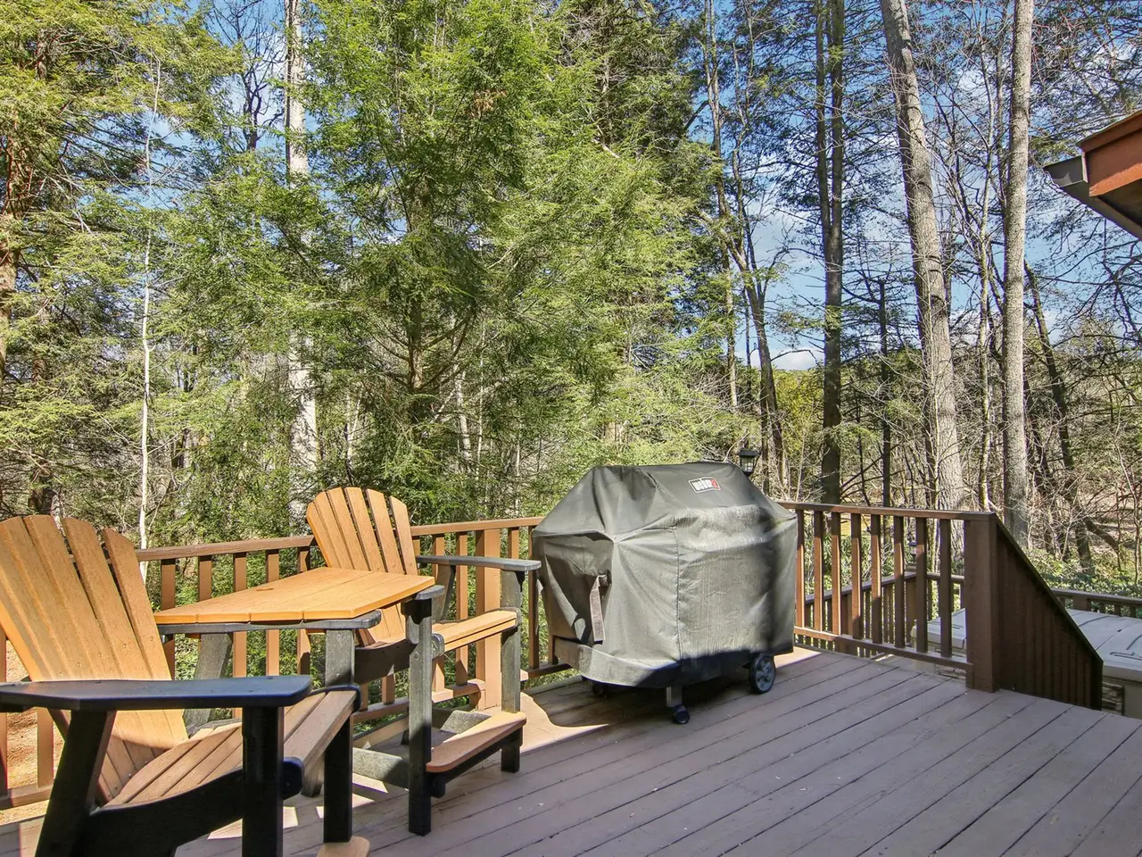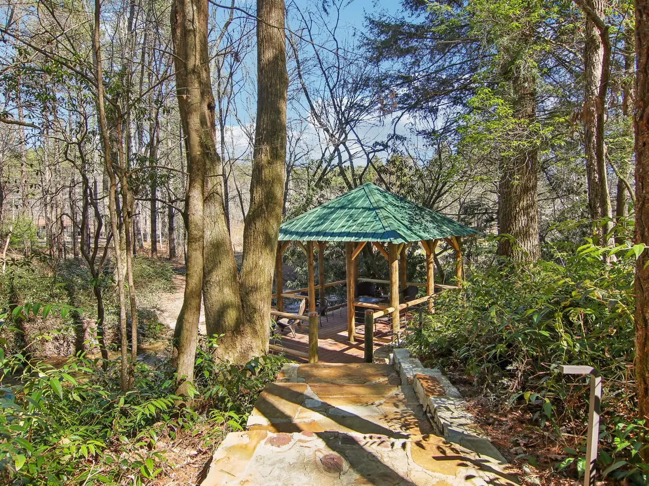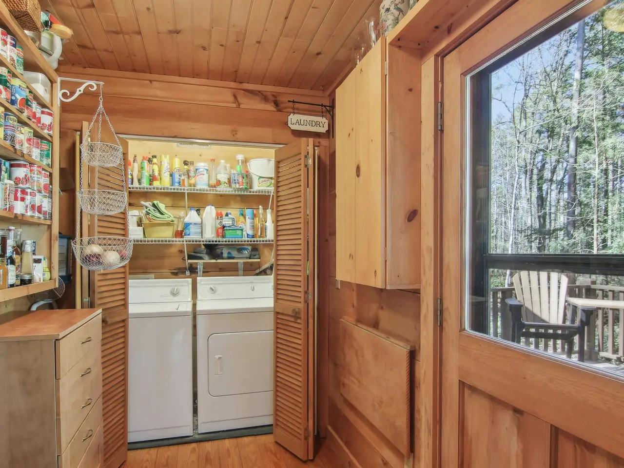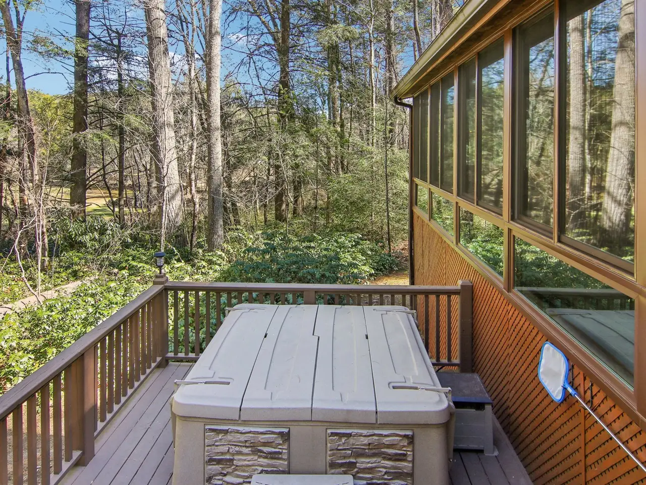 Appalachian-style log home with a separate workshop/office on 2.76 acres. The main house features an open floor plan w/skylights, 2 bedrooms and full bath on the main, a spacious loft/bedroom w/full bath, and a 4-seasons room spanning the back with dining and seating areas. Back decks w/6-person hot tub lead to a stone path to the Little River headwaters and a gazebo with electricity, perfect for relaxing or entertaining by the water. The guest house includes a workshop on the main level w/half bath. Upstairs is a finished office/studio with 3rd full bath and 3 skylights. Located in desirable Cedar Mountain, this rare property works as a primary residence, vacation home with rental potential. Both main cabin and office suite can be offered furnished. Additional lot available with RV hook up. Septic permit just expanded to a 4 bedroom so the garage apartment can be added as a bedroom.