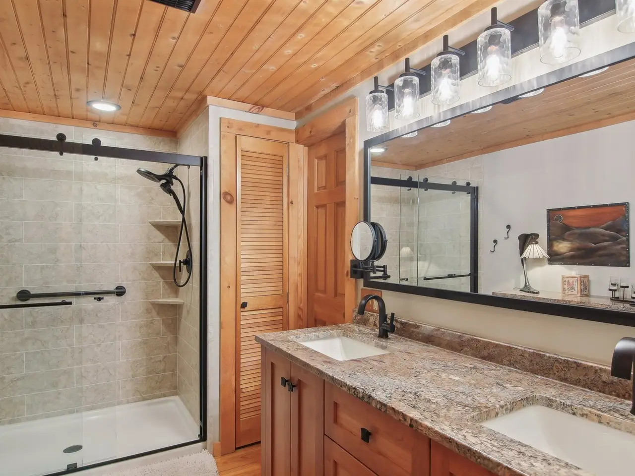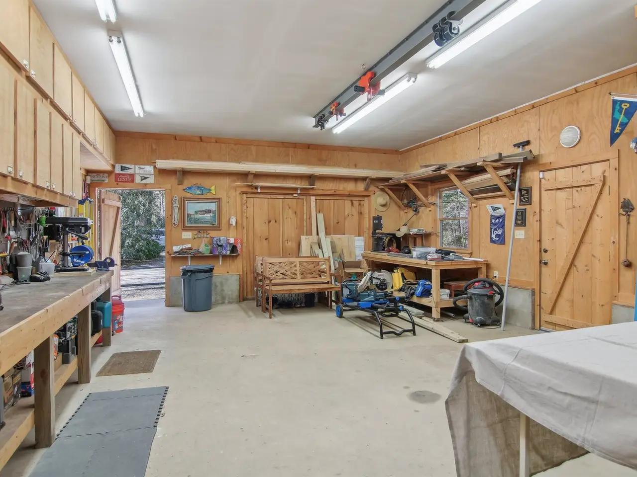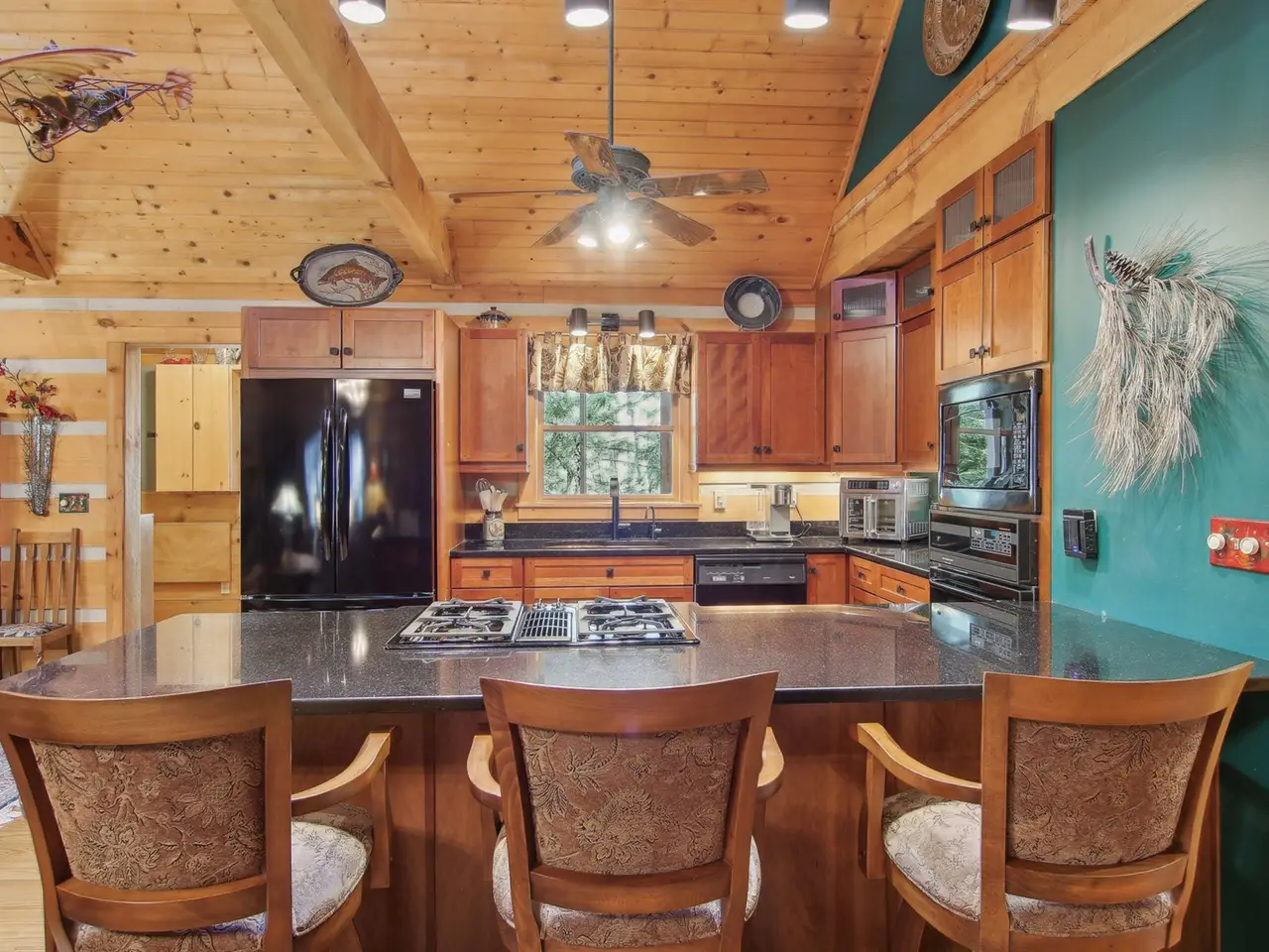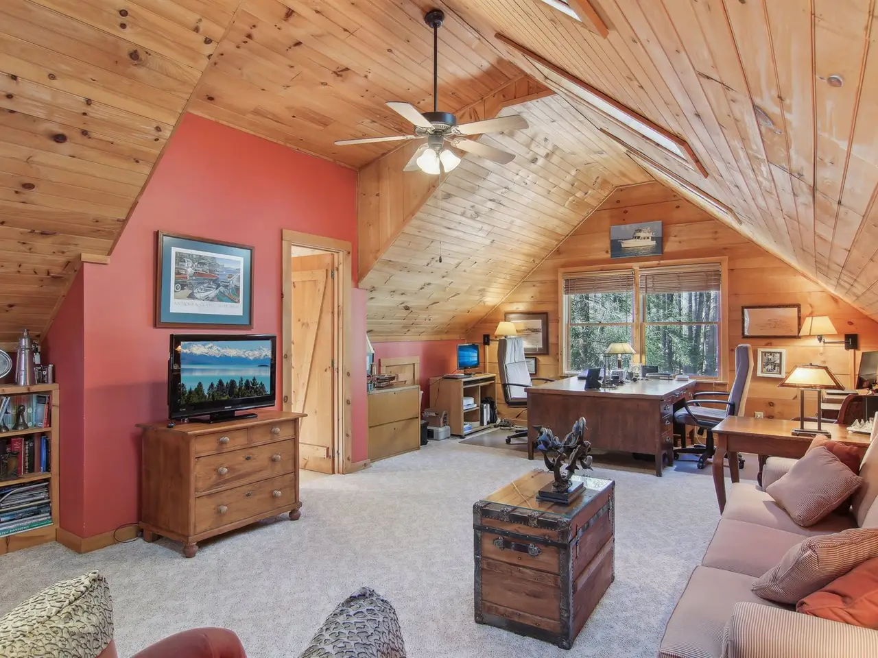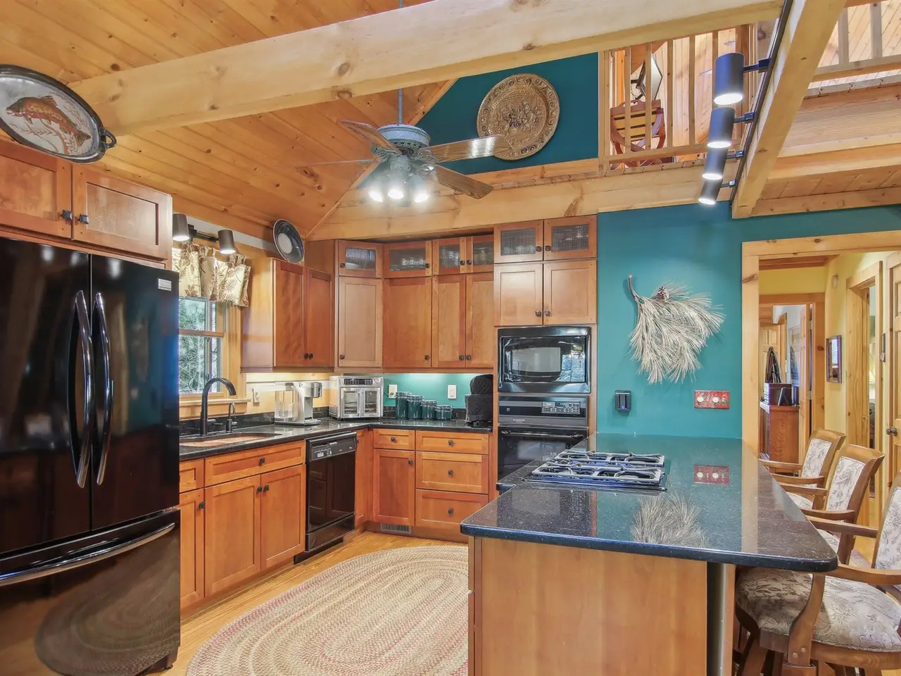 Appalachian-style log home with a separate workshop/office on 2.76 acres. The main house features an open floor plan w/skylights, 2 bedrooms and full bath on the main, a spacious loft/bedroom w/full bath, and a 4-seasons room spanning the back with dining and seating areas. Back decks w/6-person hot tub lead to a stone path to the Little River headwaters and a gazebo with electricity, perfect for relaxing or entertaining by the water. The guest house includes a workshop on the main level w/half bath. Upstairs is a finished office/studio with 3rd full bath and 3 skylights. Located in desirable Cedar Mountain, this rare property works as a primary residence, vacation home with rental potential. Both main cabin and office suite can be offered furnished. Additional lot available with RV hook up. Septic permit just expanded to a 4 bedroom so the garage apartment can be added as a bedroom.