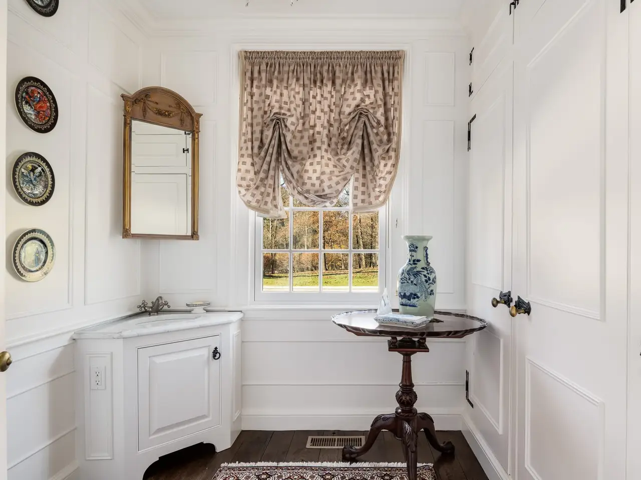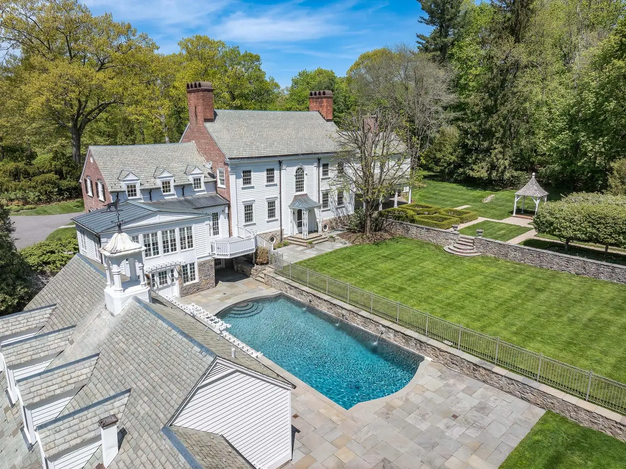 Welcome to Boxwood: A Timeless Retreat Boxwood offers a unique blend of classic Williamsburg Colonial architecture and thoughtful modern upgrades, creating a warm and inviting home that caters to both comfort and elegance. Situated on 3.895 acres of beautifully maintained grounds, this gated property provides a peaceful escape while remaining functional and accommodating for modern living. The home features six well-appointed bedrooms, including a serene master suite with an en-suite bathroom, a private office with a fireplace, and a spacious dressing room. The finished basement adds versatility with a private au pair suite, a large open area ideal for a gym or playroom, and separate entrances leading to a hidden garden and the pool. Every detail has been carefully considered, from the recently updated HVAC system and new kitchen appliances, including a Sub-Zero refrigerator, to the Kohler 48KW generator with a 1,000-gallon buried propane tank, offering peace of mind and reliability. A private well and updated irrigation system help maintain the vibrant landscaping while being cost-efficient. Outdoor features like the heated pool, a restored Lord & Burnham greenhouse, and a four-car heated garage provide both practicality and spaces to enjoy. The property is surrounded by deer fencing, ensuring privacy and preserving the beauty of the gardens and grounds. Boxwood is more than just a home, it's a place to create lasting memories and enjoy the beauty of a tranquil, thoughtfully designed estate. Its understated charm and versatility make it a perfect choice for those seeking both refinement and comfort.