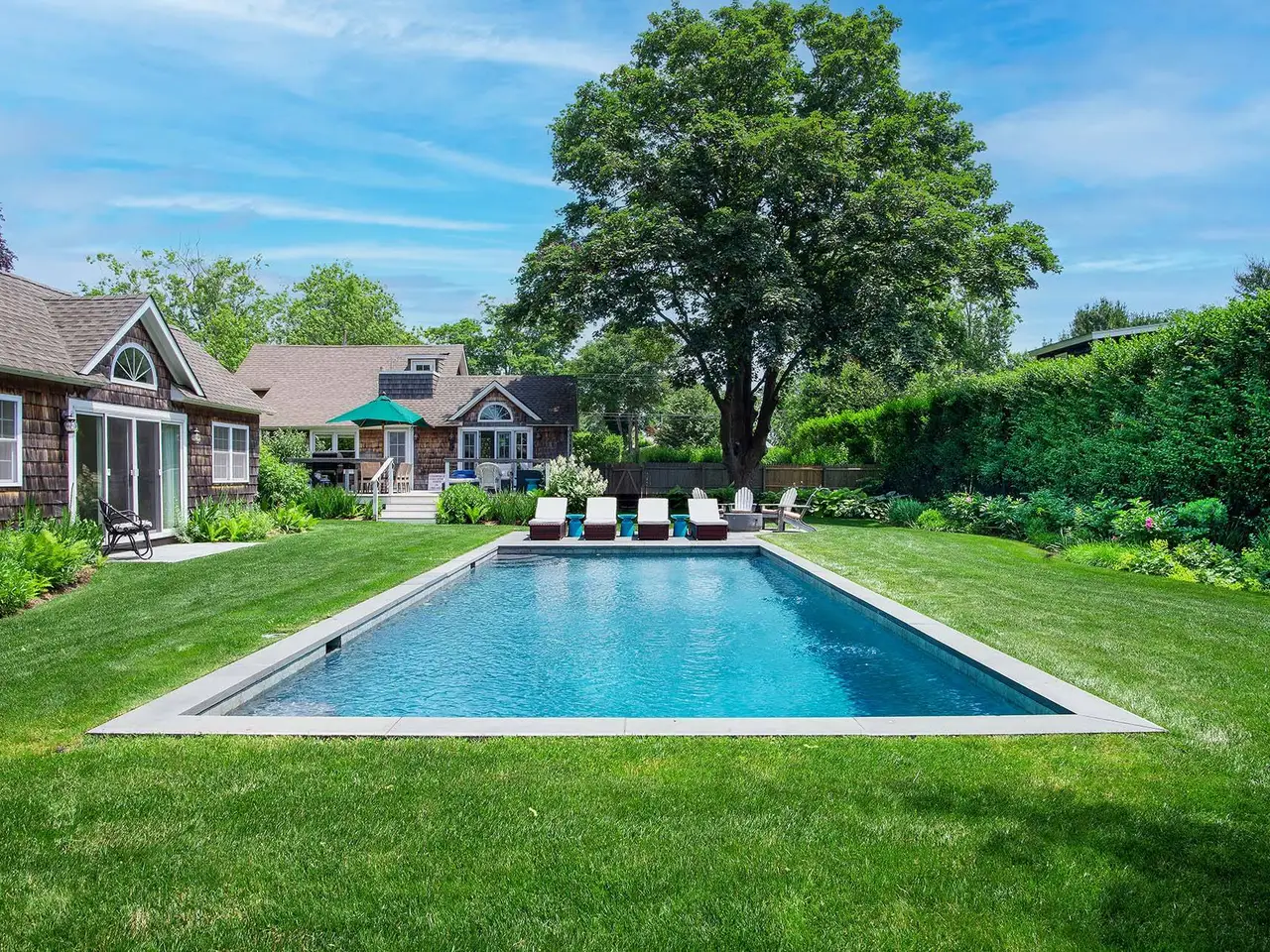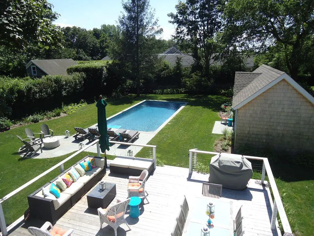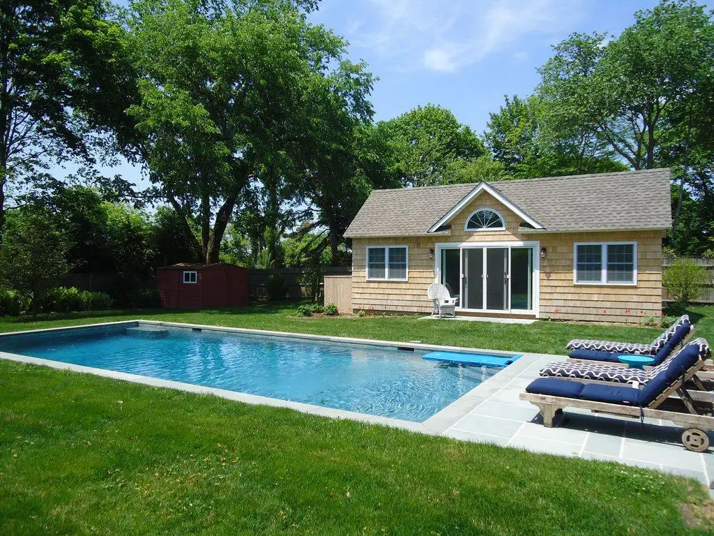 Beautifully renovated, this 19th century Cottage on Lumber Lane is a short distance to Main Street, LIRR and Jitney and offers four bedrooms, three baths in main and guest cottage, huge open kitchen with stainless appliances (including wine refrigerator) and marble counters, open living/dining room with walls of French doors, separate breakfast room, high ceilings, ebony stained hardwood floors, three full baths (two with walk-in showers with access to outdoor showers) and tons of windows which flood the house with sunlight all day. Two guest bedrooms and a full bath (with claw foot tub) on the first floor. The entire second floor is comprised of a huge Master Suite with a wall of closets, French doors, four exposures, high ceilings, marble en suite master bath with enormous walk-in shower (as well as private, rooftop outdoor shower) and double vanity. The separate three-room pool house (renovated 2020) has ample space, a full marble bath with a walk-in shower (and an outdoor shower), a kitchenette with ice maker, mini-refrigerator and beautiful views of the pool and gardens. The exterior spaces include an open front porch, huge backyard deck, outdoor entertainment areas (complete with gas firepit), an 18' x 36' heated gunite pool, bluestone terraces, a flat, fenced backyard with lush landscaped gardens, surrounded by 11-foot tall privacy hedges, forsythia, flowering plants, and native grasses! Ample parking, quiet neighbors.