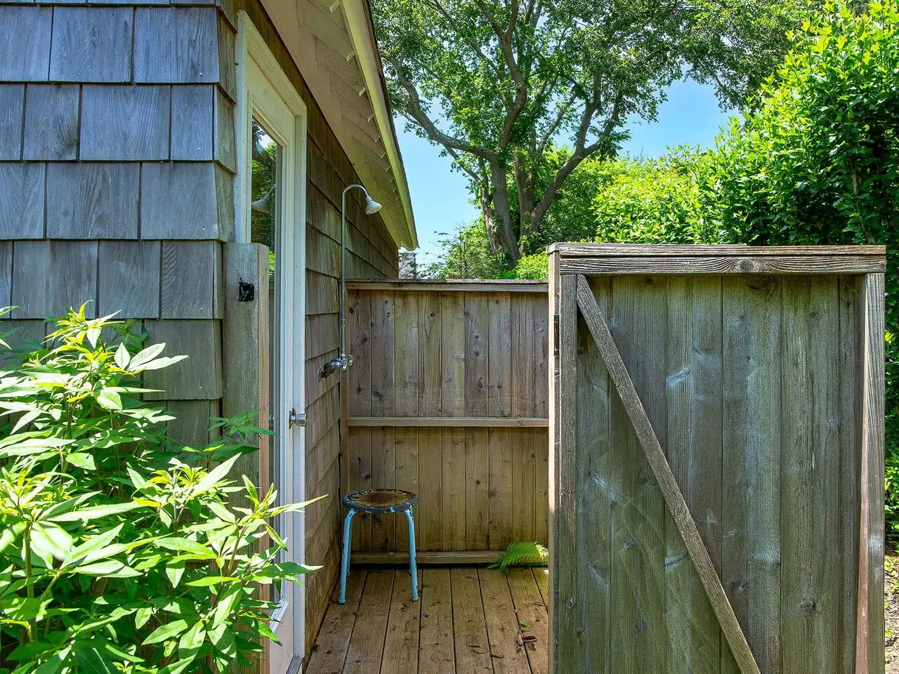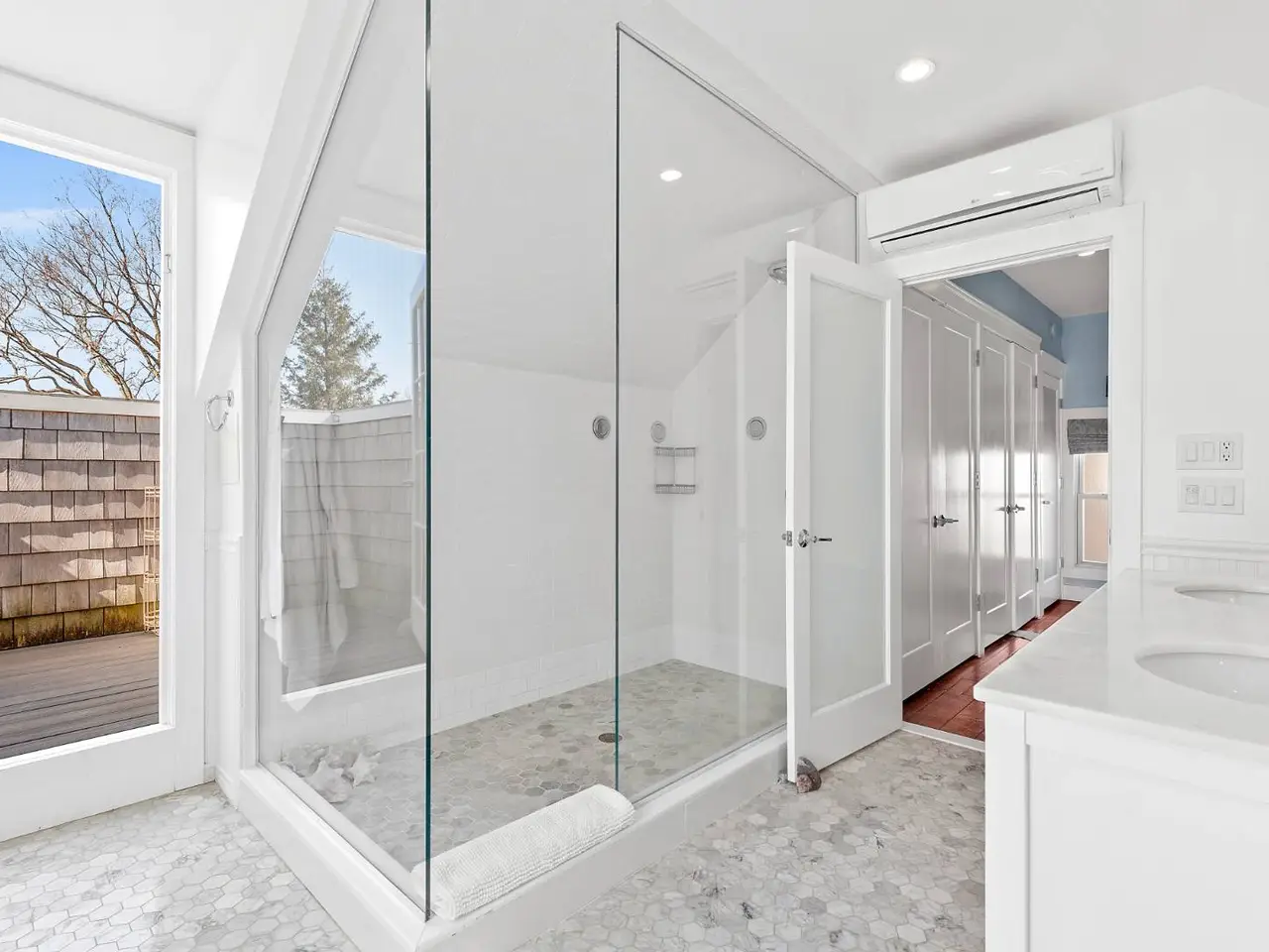 Walk-in showers with access to outdoor showers