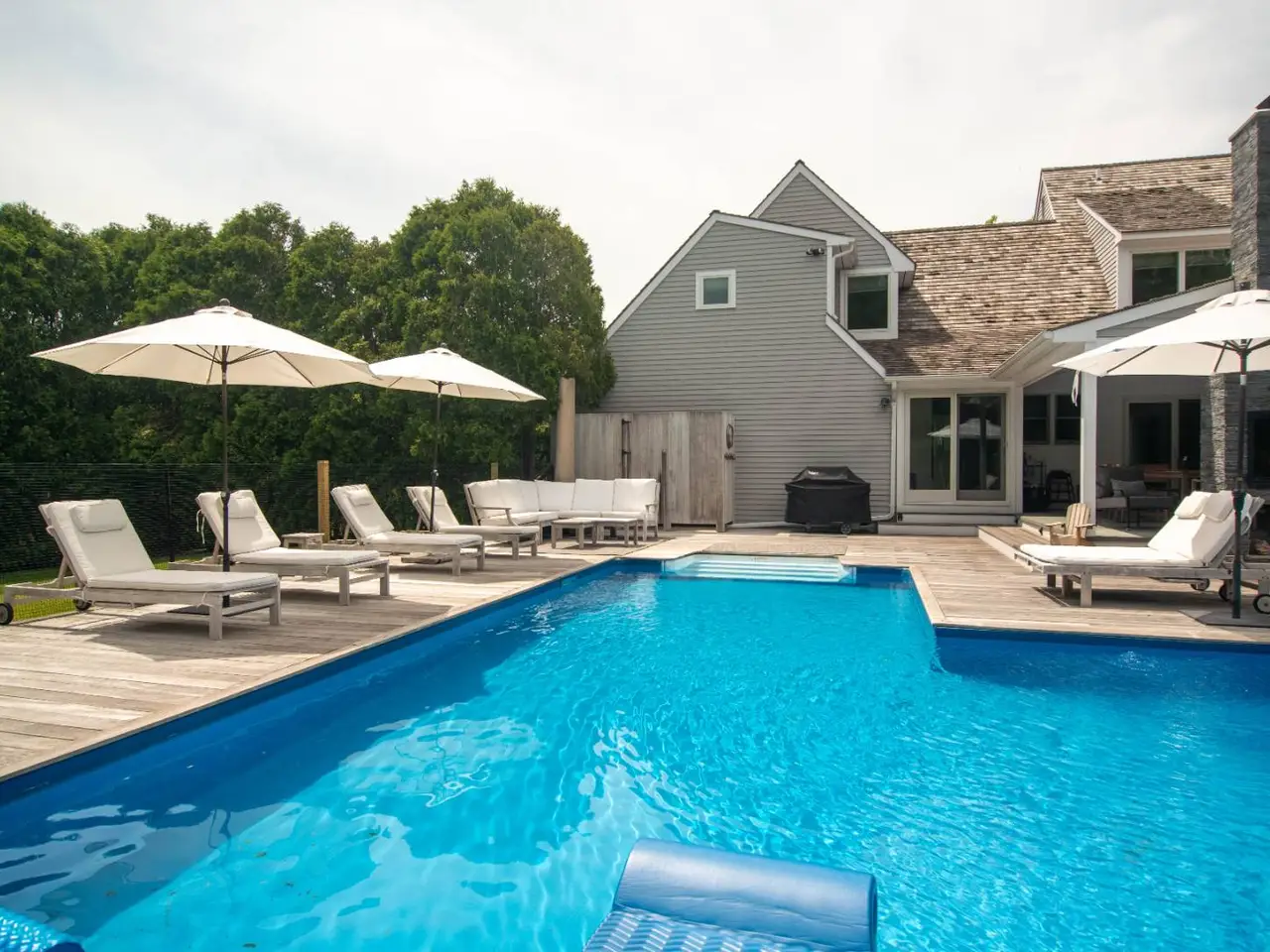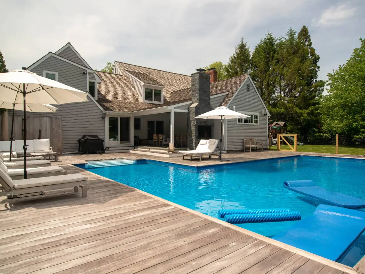 Enjoy your summer in this beautifully appointed traditional home, situated on a quiet cul-de-sac. There are five bedrooms, four bathrooms; a bright living room with fireplace; stylish kitchen and central air-conditioning. Some of the fine amenities include a spacious sun deck, outdoor shower and a heated pool set within a professionally landscaped private yard - perfect for relaxing or entertaining.