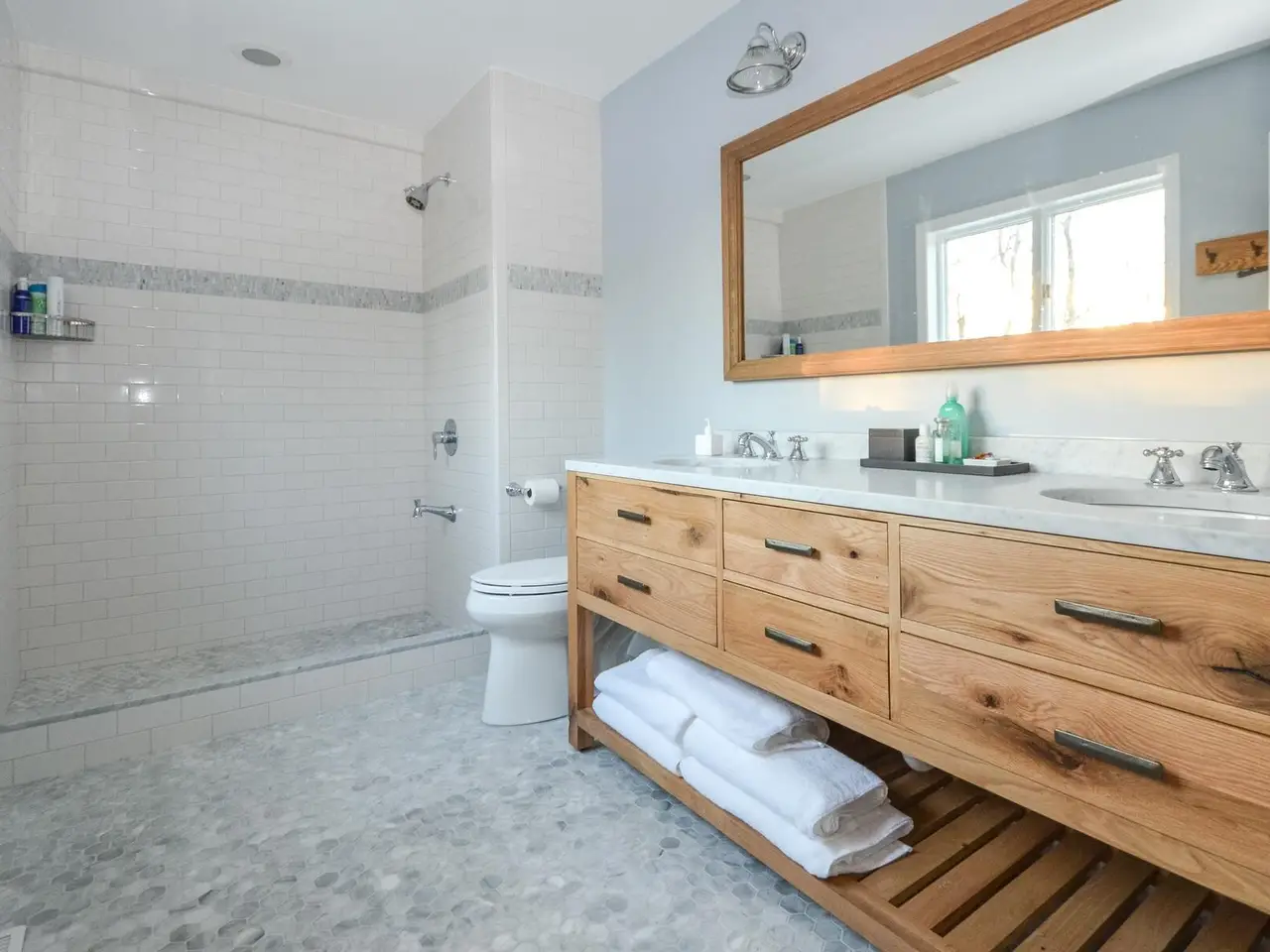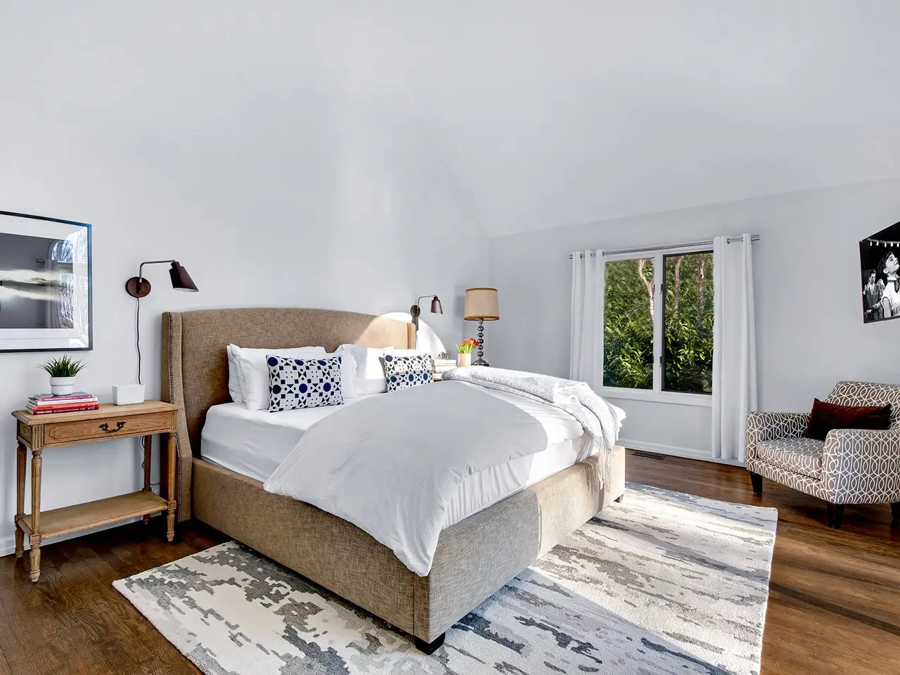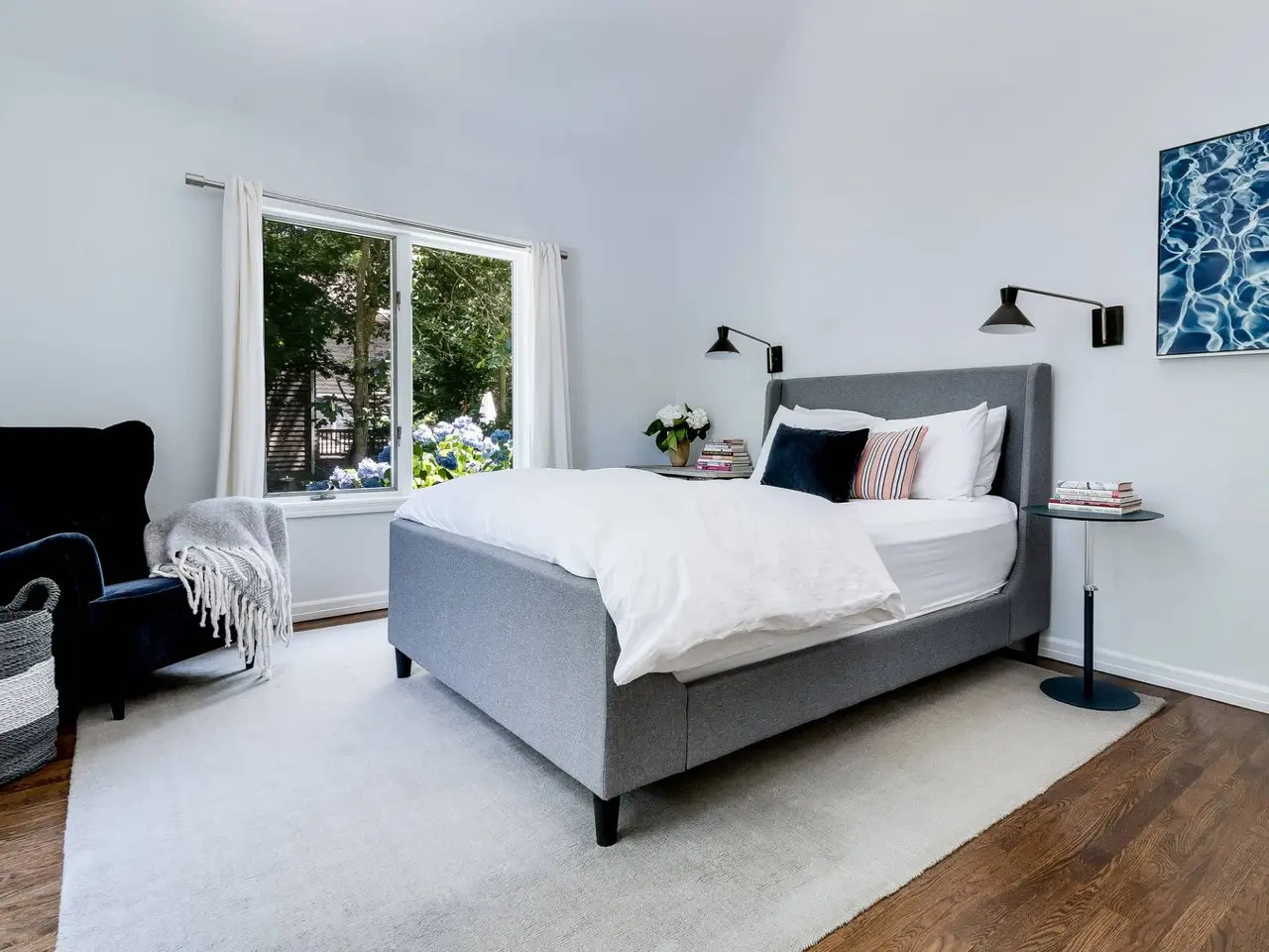 This designer home located in a private community situated minutes from Bridgehampton and Sag Harbor Villages features three bedrooms, three bathrooms, and open kitchen with an island and marble counters. The bathrooms have been completely updated with state-of-the-art finishes and fixtures and the light-filled space is complemented by vaulted ceilings, oversized windows, and sliding glass doors. Ideal for entertaining, this pristine home is decorated with muted grays, blues, and whites and will make an ideal summer retreat! Other features of this lovely home include: a fully equipped chef's kitchen with brand new appliances, central air conditioning, fire pit, heated salt-water pool with an option to add a child safety fence if needed. Located on a quiet cul-de-sac in a private community. Contact for more information.