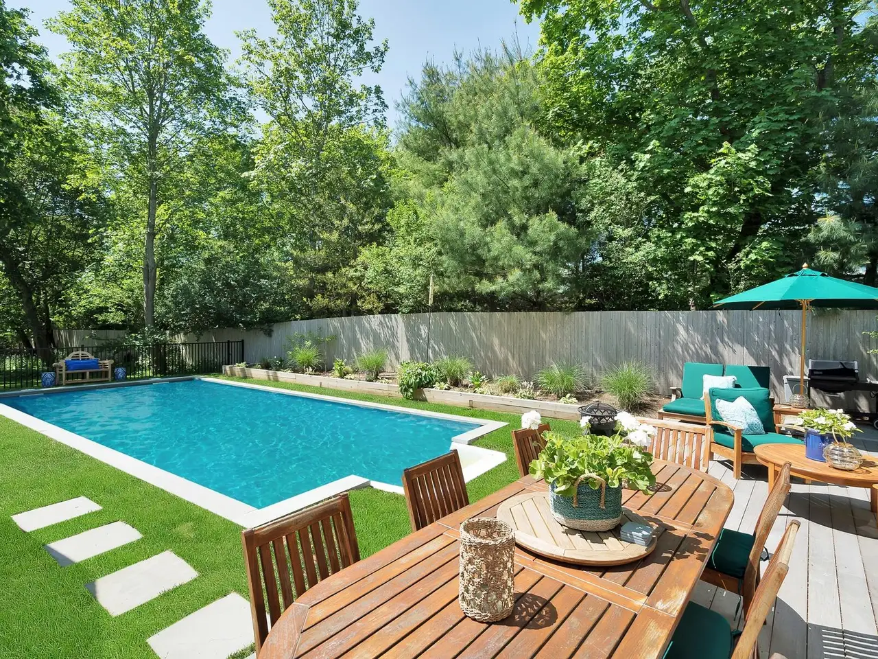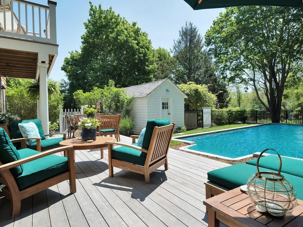 RP241857 - Newly renovated South of the highway Bridgehampton home. Minutes from Main street and Sagaponack Ocean beaches , the property borders acres of sagg swamp Preserve, is beautifully landscaped with Mature trees and perrenial flowering gardens surrounding entire parcel, the open backyard features a custom built children's playyard The classic farmhouse style home dating back to the 1800's is anything but rustic ~ 2,200 +/- sq ft of interior designer's perfection. The interior of the home includes four bedrooms and 3 fully updated bathrooms ,a sunny living room with full size gas fireplace & large flat screen TV and lovely dining area, the state of the art eat-in kitchen (Wolf, Bosch, Sub Zero& Wine Cooler is your ultimate chefs kitchen , the Architectural details throughout the home are prominent in every room , gourmet Kitchen opens up to spacious custom deck with teak furniture and comfortable entertaining area, heated pool and classic pool house and a barbecue area ,enjoy the grape vine trellis & dining area al fresco at the Pool House available July 1 to august 31 2026 just listed . Listing ID: 755168