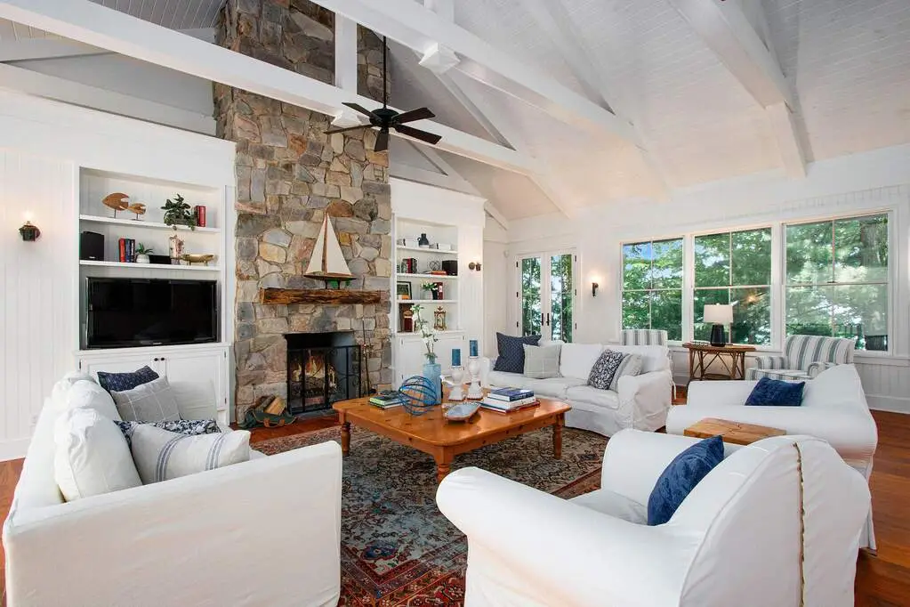 Cathedral ceilings with stone fireplace