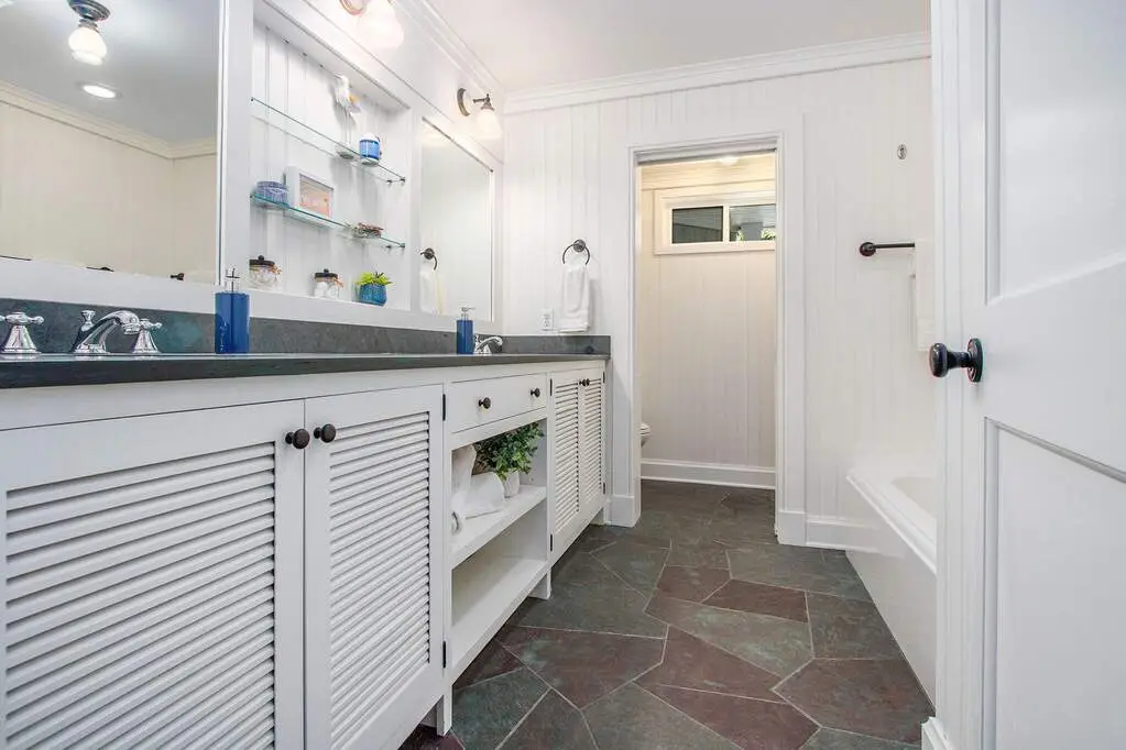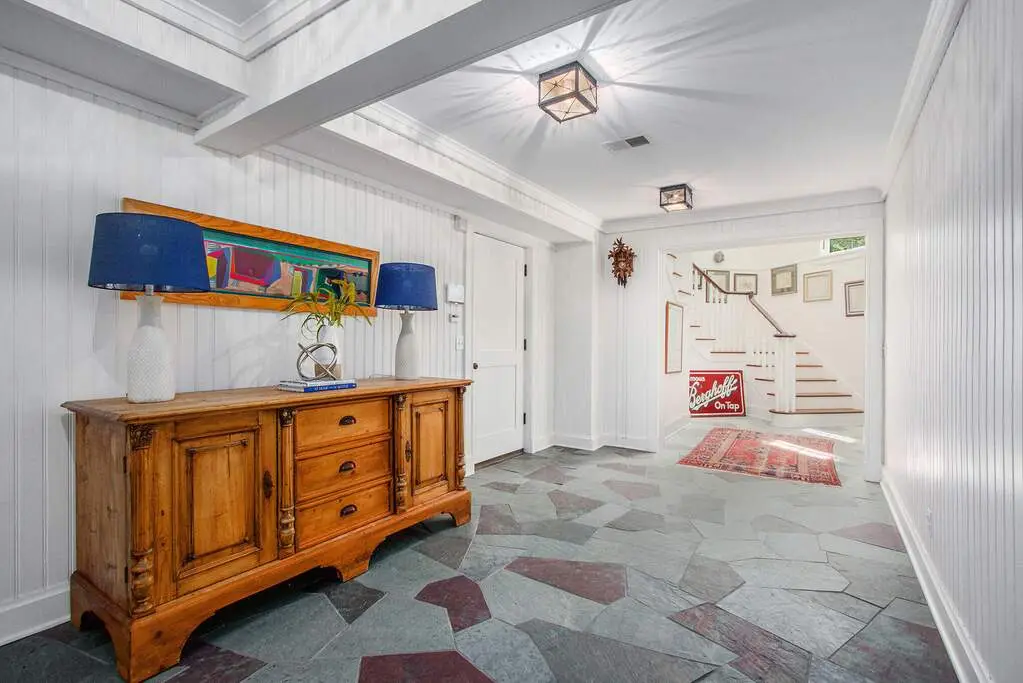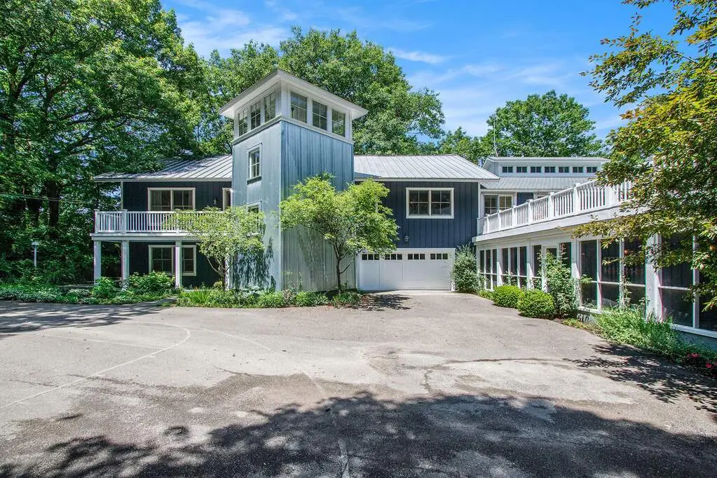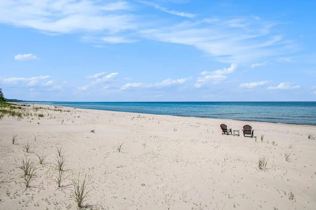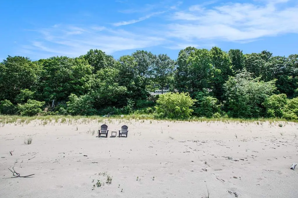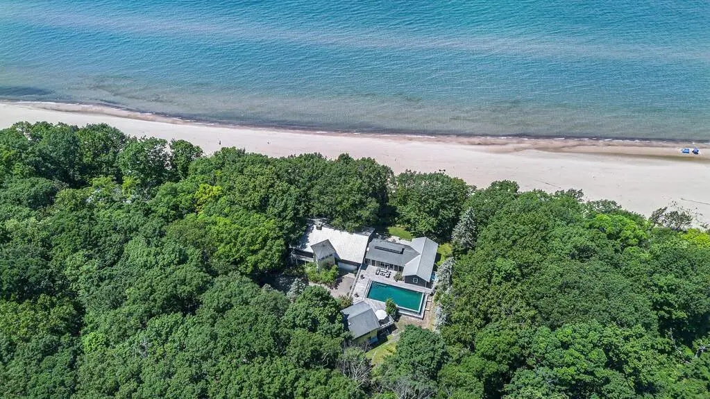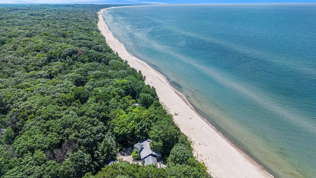 Lakefront, and very private. This truly exceptional 2.2 acre estate offers 250 feet of frontage on Lake Michigan, and an 8-bedroom, 7-bath home exquisitely designed by renowned Chicago architect Paul Konstant. The main residence's upper level living area boasts soaring cathedral ceilings; reclaimed heart pine floors; and a dramatic stone fireplace. The spectacular kitchen area is rich in both character and function, featuring heart pine cabinetry, soapstone counters, a Sub Zero refrigerator, and a Fratelli Onofri Royal Chiantishire oven. Just off the kitchen, an expansive screened porch provides breathtaking views of the lake while you enjoy your morning coffee or evening wine. A serene lakefront-facing primary suite borders one side of the upper level, and two ensuite guest rooms complete the other. The entry level features two additional bedrooms and a bath, along with a 1000+ bottle wine cellar, and ample room for a gym or rec room. The home's East Wing adds a large entertainment room, along with additional bedrooms and living space. A newly-refinished gunite saltwater pool, with a quartz finish and unique double negative edge, is framed by bluestone-and-slate tiles and surrounded by IPE decking. A separate hot tub, your own vineyard and spacious entertaining areas further elevate the home's outdoor experience. A scenic grassy path gently descends to the private beach, offering a natural and picturesque approach to the shoreline. Unmatched privacy and serenity - a true lakefront paradise.