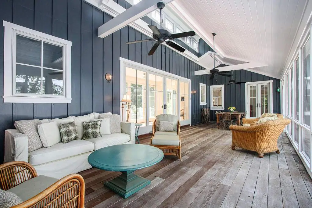 Expansive screened porch with lake views