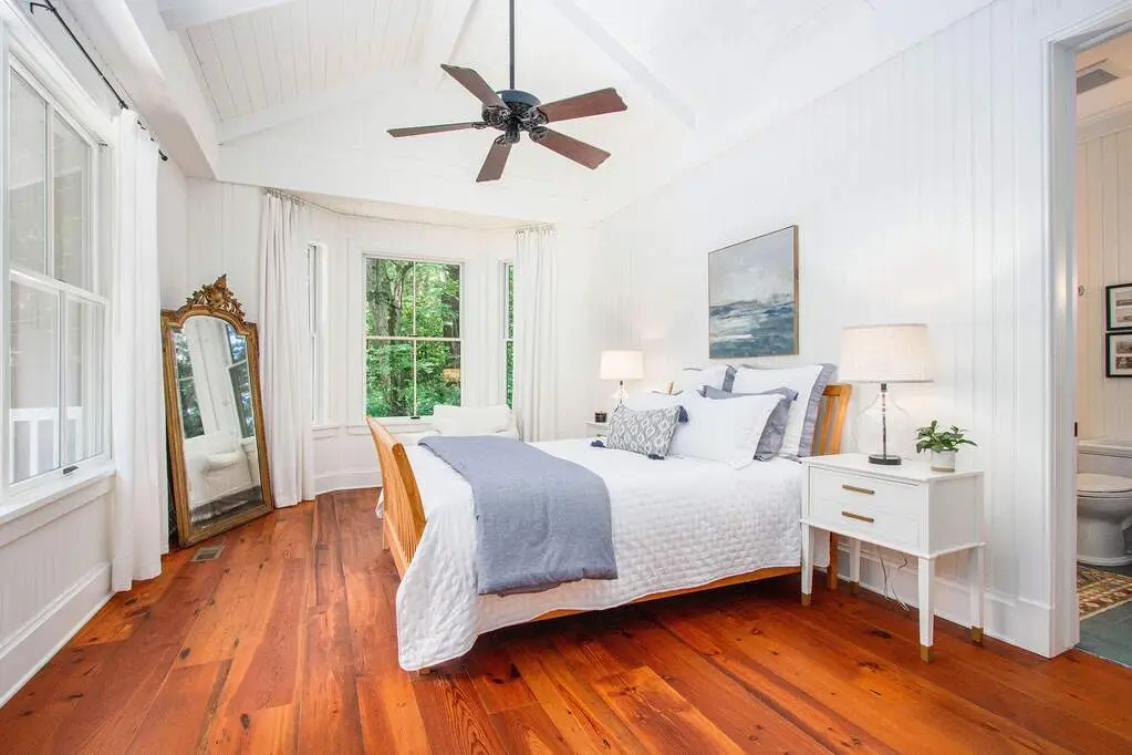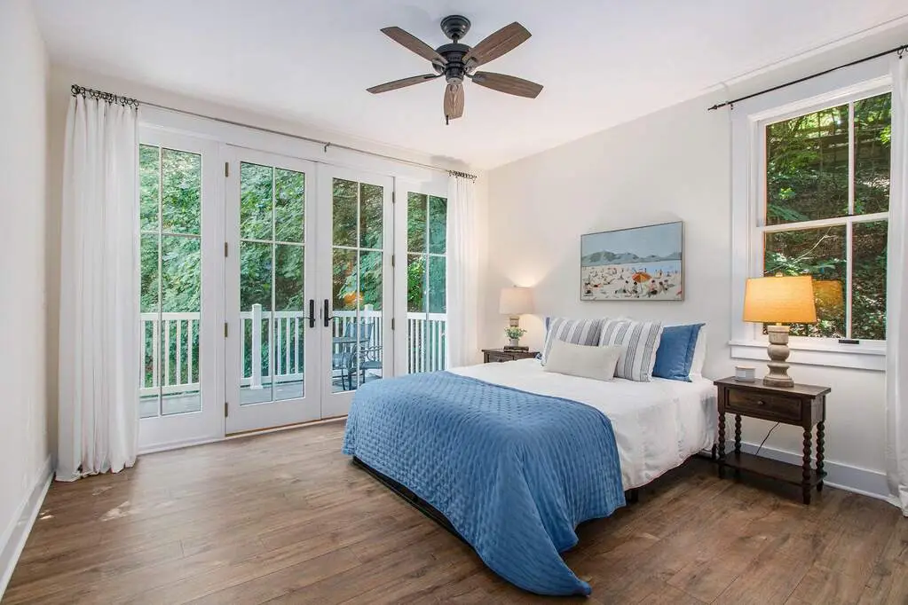 Serene lakefront-facing primary suite