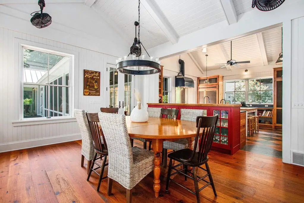 Heart pine cabinetry and reclaimed floors