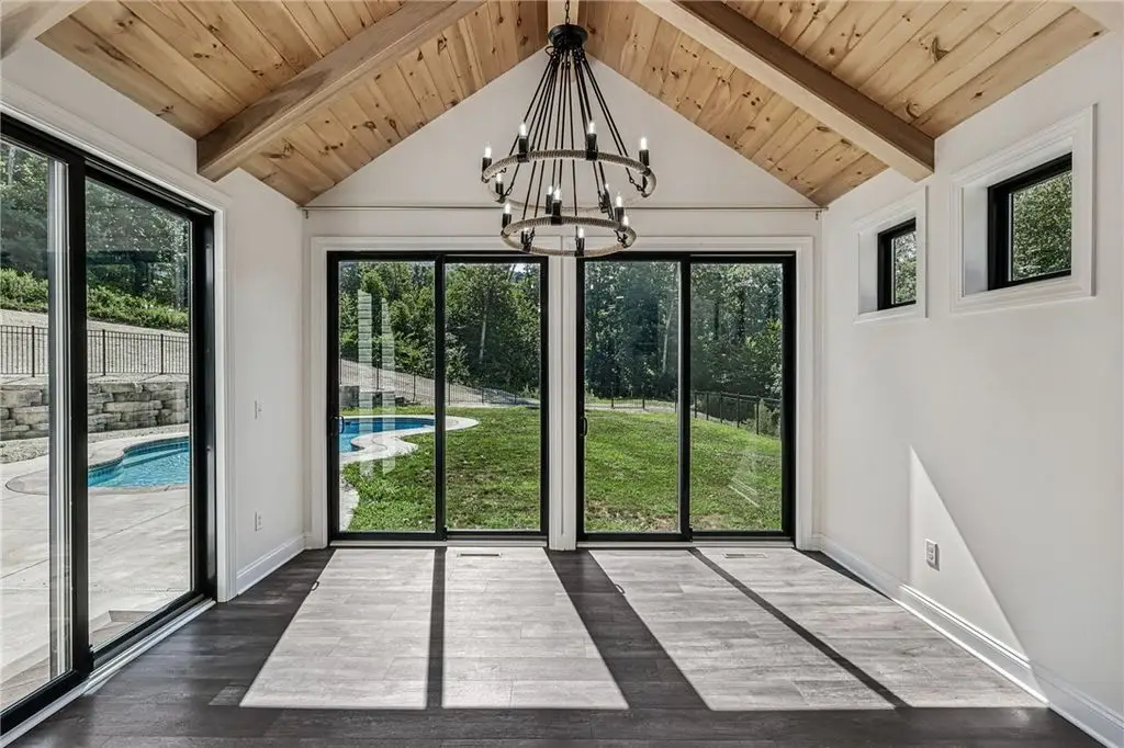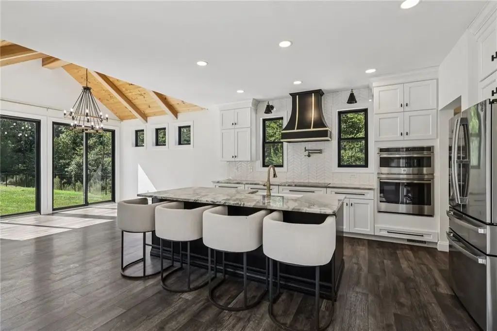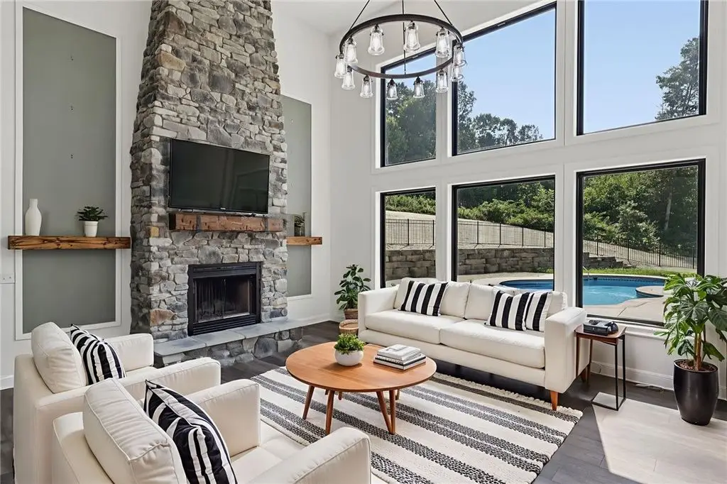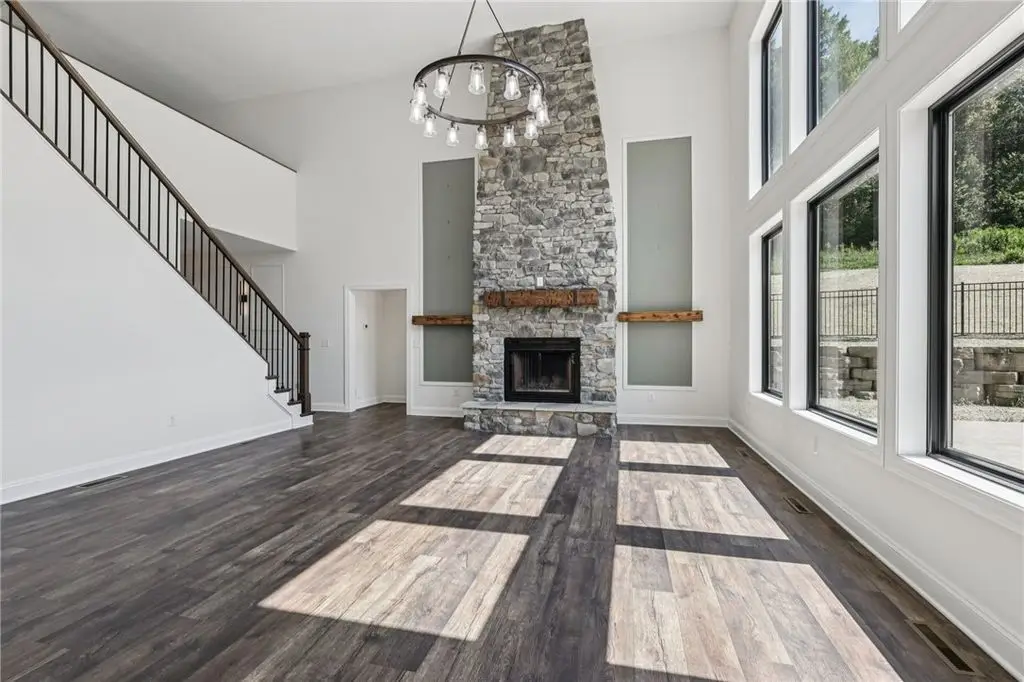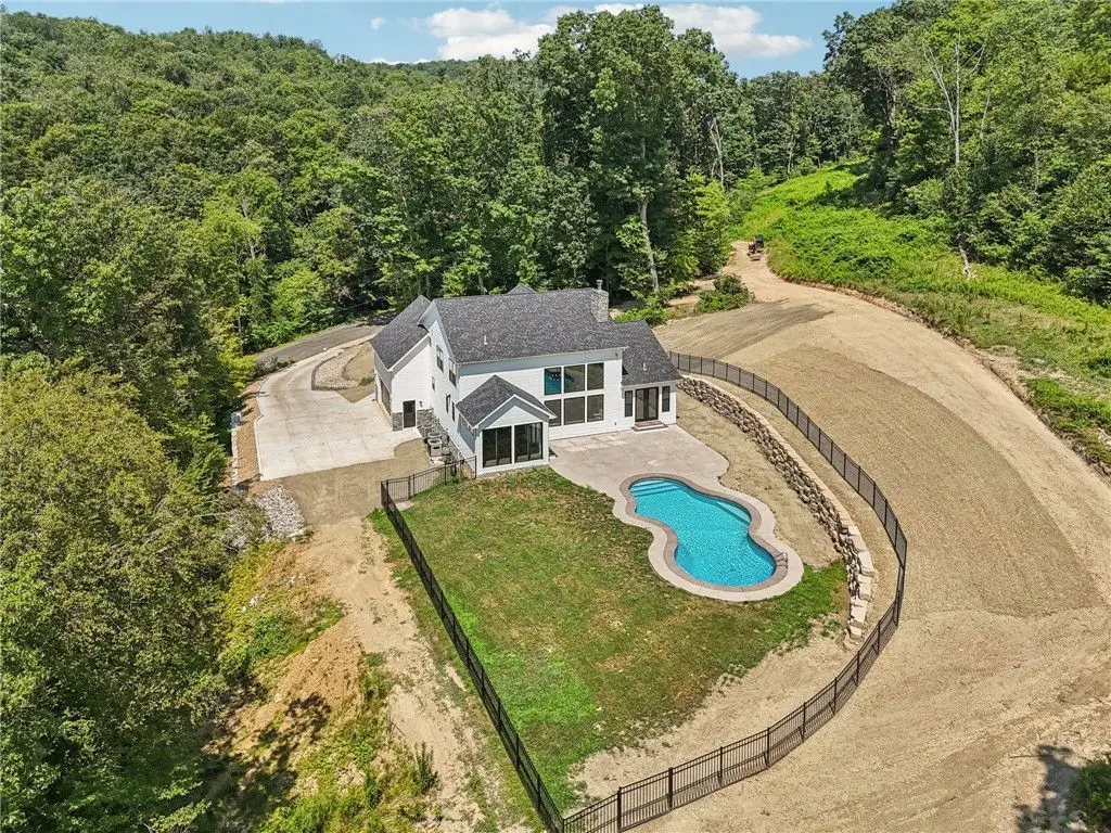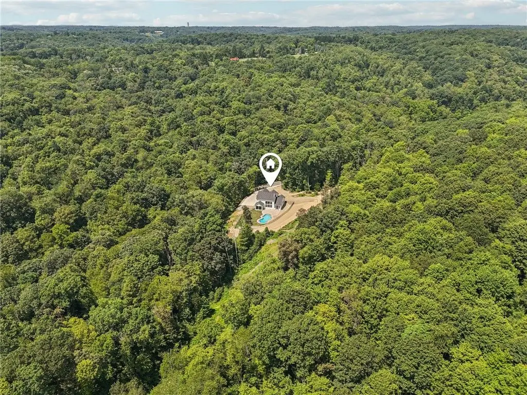 Phenomenal custom built home nestled amongst 35 peaceful/private acres. Concrete textured driveway grants entry to magnificently designed open floor concept living. Functional layout from main floor organized mudroom off garage & full laundry to unique Brazilian quartz counters showcasing the expansive kitchen with walk in pantry & pull out hidden coffee station drawer. Living room stuns with floor to ceiling stone wood burning fireplace. Vaulted wood ceiling with custom lighting & full 180 view via slider doors with invisible screens to the heated, salt-water inground pool. Primary on main is its own retreat. Wifi controlled lights/fans/music make this smart home totally sufficient including whole house Gen-r-ac back up system-dual zone HVAC. Entertainment luxury + function awaits you in lower level family room featuring electric fireplace, game room, kitchenette/dining area & two more bedrooms with newly finished full bath. Upper level lends to expansive open loft, three beds and bath.