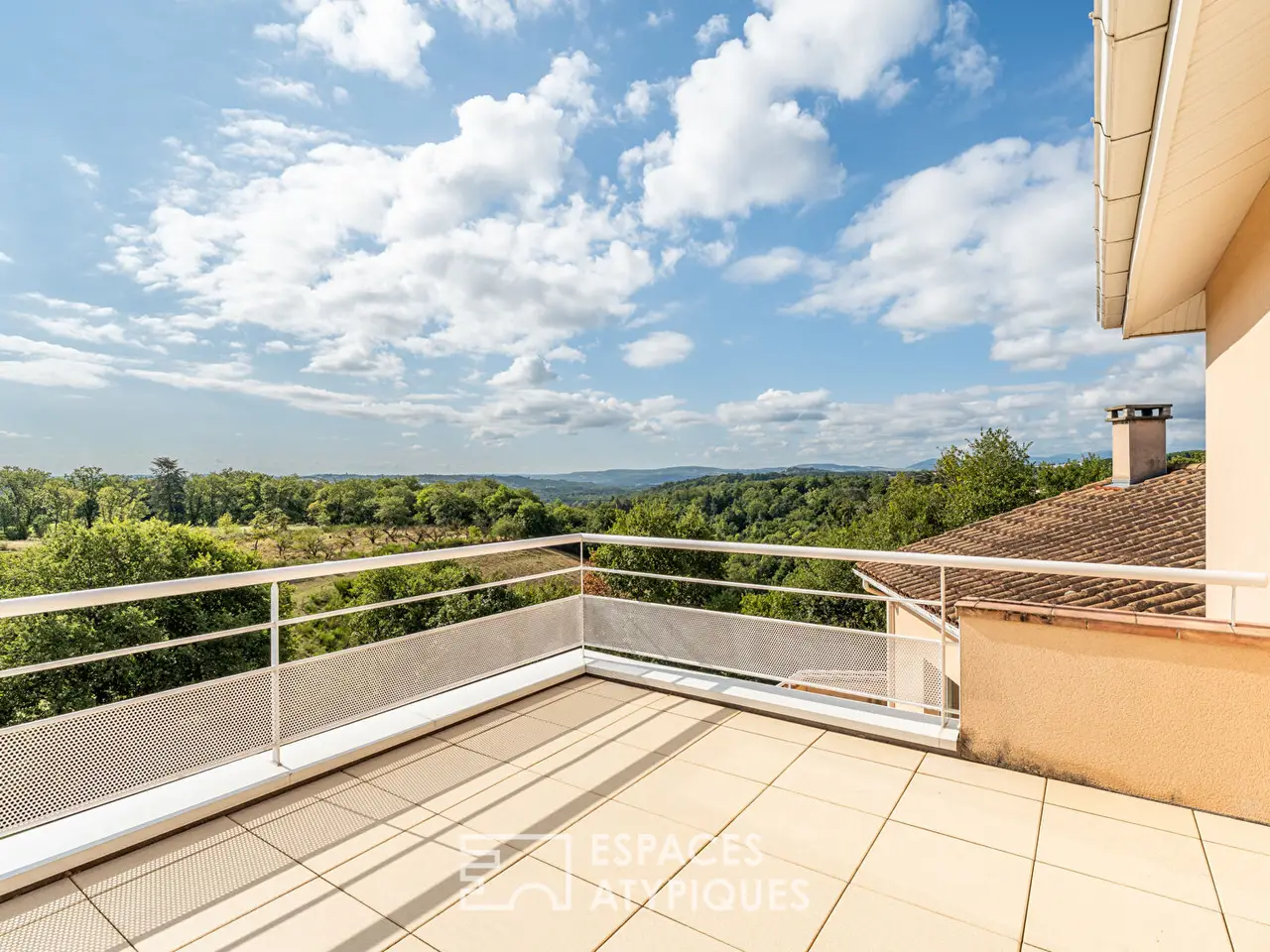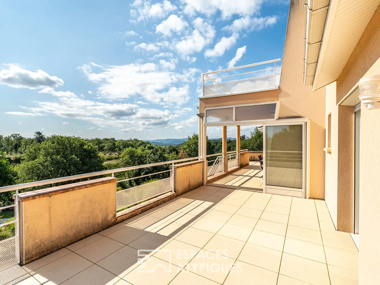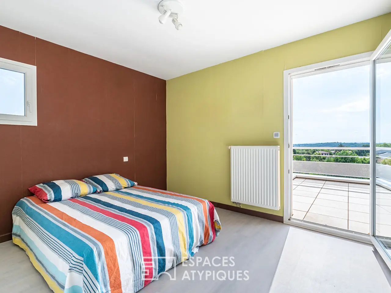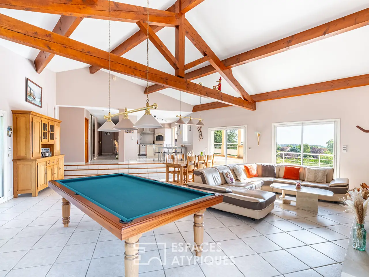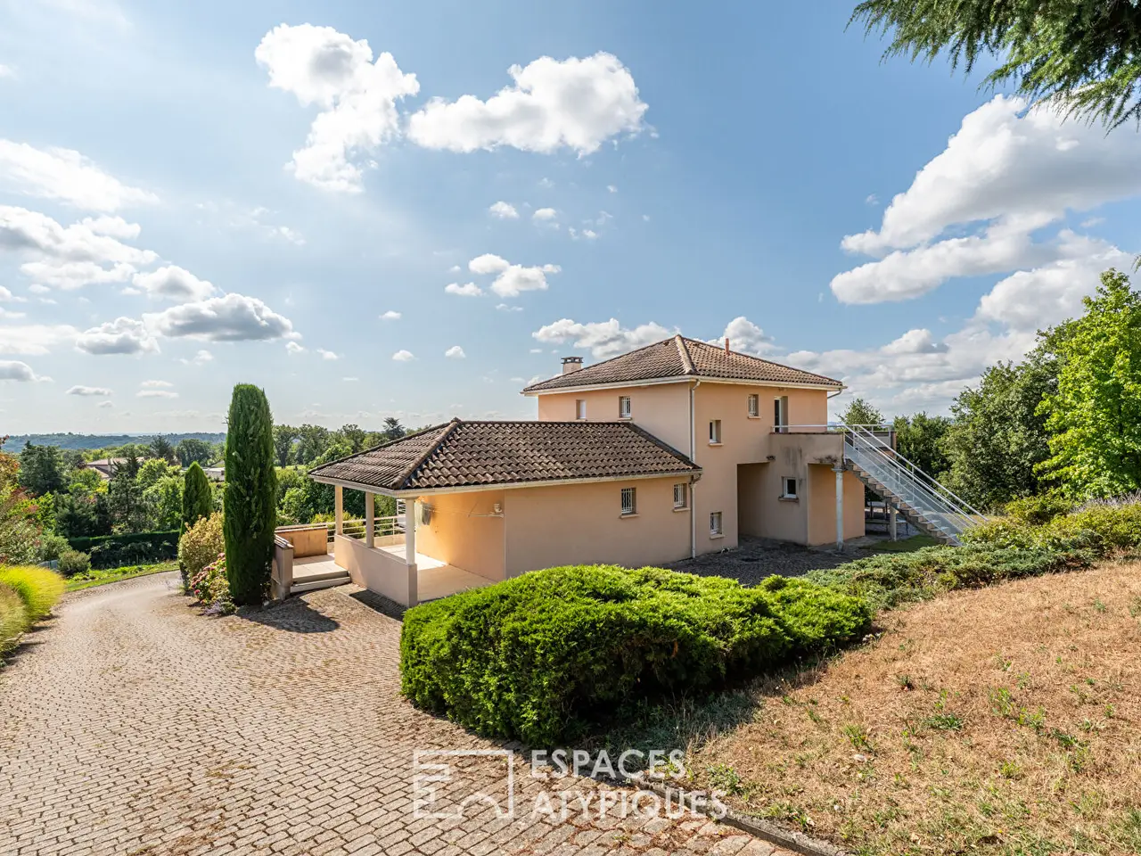 Located on the heights of Brignais, in absolute calm, this family home of 210sqm of living space is located on a landscaped plot of 3015sqm with a swimming pool. Upon entering, the gaze is drawn to a vast cathedral living room bathed in light, benefiting from a triple exposure that accentuates the feeling of space and clarity. The exposed framework and the fireplace bring an authentic charm to this living room with its generous volumes. Open to the dining room, the kitchen stands out as a true living space, designed to combine functionality and conviviality. It naturally extends to the outside thanks to a large bay window leading to the terrace, inviting you to fully enjoy the panorama. Its integrated pizza oven adds a warm touch, ideal for moments of sharing around generous meals. This level also includes an office space as well as two bright bedrooms, both open to the outside.One has an en-suite bathroom, while the other benefits from its own shower room, offering comfort suitable for family life or welcoming guests. A toilet is also located. Upstairs, three bedrooms complete the sleeping area: two of them share a common terrace, while the third has independent access as well as its own terrace. A shower room and a toilet complete this level.Below, an elegant wooded garden unfolds around a swimming pool nestled in a green setting, not overlooked. The unobstructed view of the surrounding countryside reinforces the impression of tranquility, just 20 minutes from Lyon. A well-kept vegetable garden and a petanque court complete this bucolic setting, designed to savor every moment in tune with nature.The basement of approximately 250sqm includes 5 garages, 3 of which are electrified. The ceiling height and its volumes allow for potential developments.The atypical character of this property lies in the rare combination of a preserved natural environment and architecture with unique volumes.A unique property, designed for those looking for a living space that is both spacious and connected to nature. Ideal for a family.ENERGY CLASS: C - CLIMATE CLASS: CEstimated average amount of annual energy expenditure for standard use, established from energy prices for the year 2021 / 2022 / 2023: between EUR2,240 and EUR3,350Contact: Emmanuel - 06 67 58 74 89REF. 12254-1Additional information* 7 rooms* 5 bedrooms* 1 bathroom* 2 shower rooms* Outdoor space : 3015 SQM* Property tax : 4 015 €Energy Performance CertificatePrimary energy consumptionc : 130 kWh/m2.yearHigh performance housing*A*B*130kWh/m2.year27*kg CO2/m2.yearC*D*E*F*GExtremely poor housing performance* Of which greenhouse gas emissionsc : 27 kg CO2/m2.yearLow CO2 emissions*A*B*27kg CO2/m2.yearC*D*E*F*GVery high CO2 emissionsEstimated average annual energy costs for standard use, indexed to specific years 2021, 2022, 2023 : between 2240 € and 3350 € Subscription IncludedAgency feesThe fees include VAT and are payable by the vendorMediatorMediation Franchise-Consommateurswww.mediation-franchise.com29 Boulevard de Courcelles 75008 ParisInformation on the risks to which this property is exposed is available on the Geohazards website : www.georisques.gouv.fr