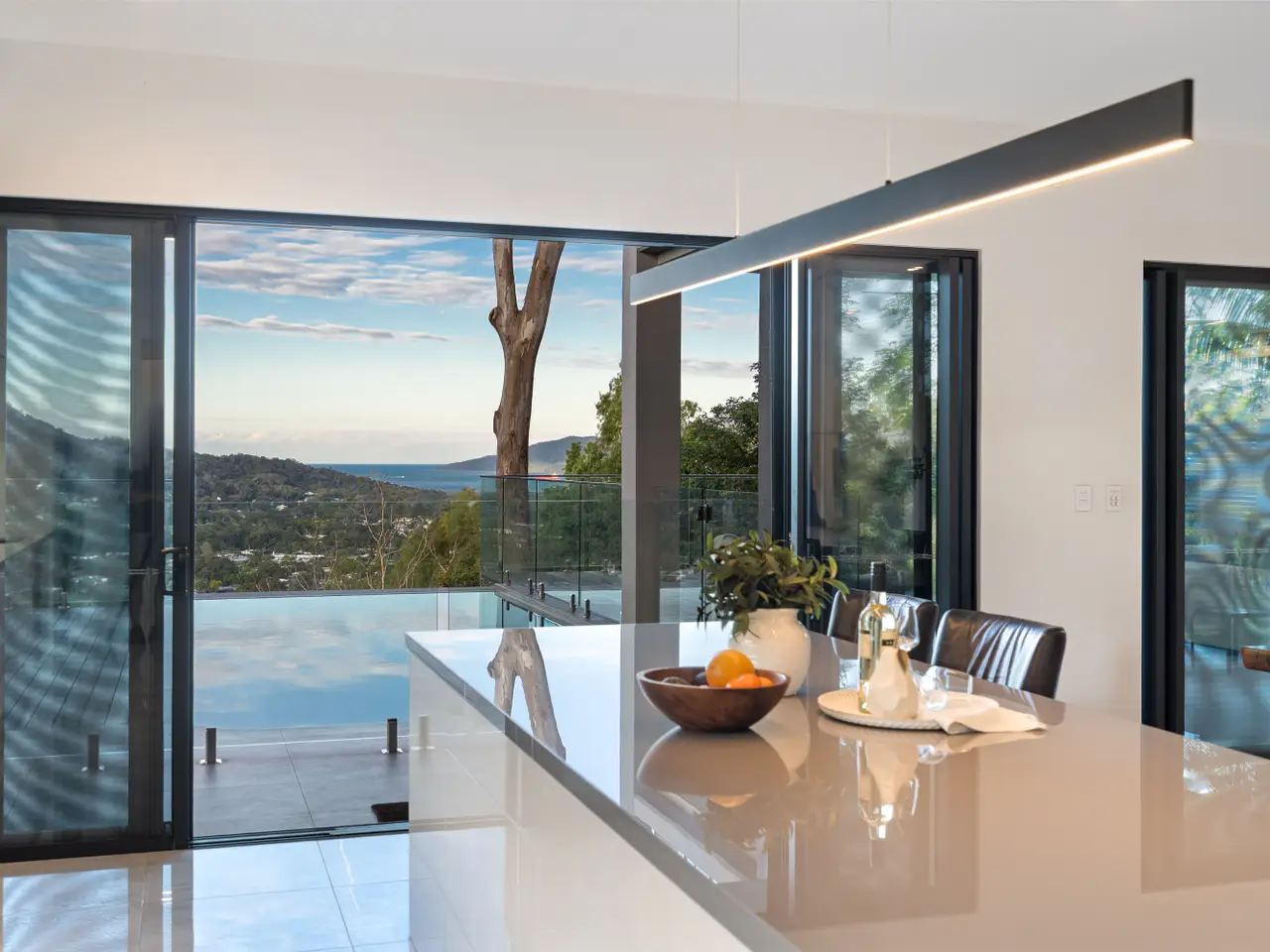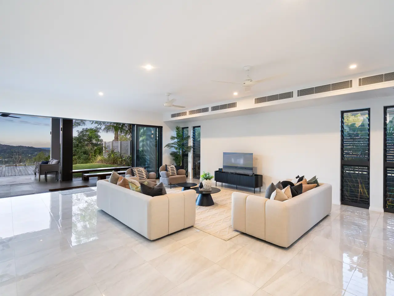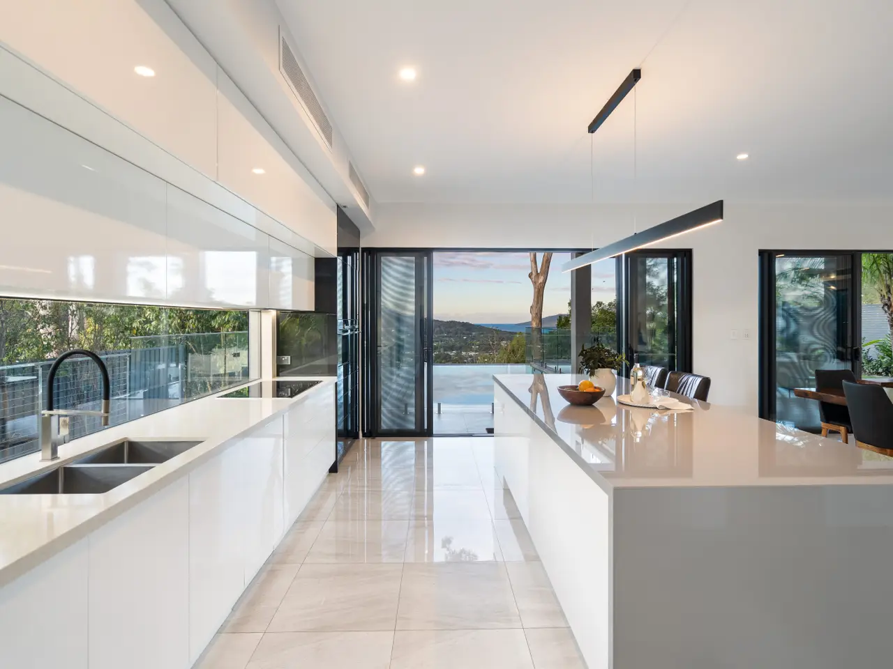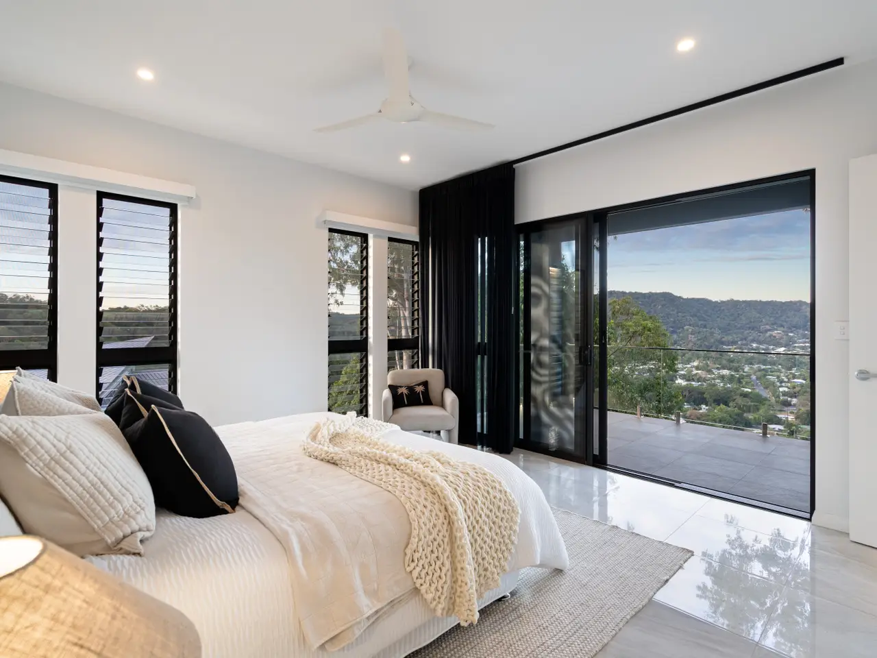 Positioned at the top of The Peak, this striking contemporary residence commands sweeping city, ocean, and mountain views. Built just four years ago to exacting standards, the home presents as new, with expansive interiors, soaring ceilings, and walls of glass designed to maximise light and outlook from every angle. The seamless connection between living spaces, balconies and a stunning wet-edge pool ensures effortless entertaining and a lifestyle of refinement and ease. - Prestigious, tightly held position at the top of The Peak - Over 540m² of living across two levels, designed for space and flow - Panoramic city, ocean, and mountain views enjoyed from almost every room - Expansive open-plan living and dining framed by full-height glass - Gourmet kitchen with butler's pantry, opening directly to poolside entertaining - Infinity-edge pool with decks and multiple alfresco terraces - Luxurious master retreat with ocean views, walk-in robe, and ensuite - Upstairs entertaining areas with balconies on both sides of the home - Guest suite with ensuite on ground level, ideal for multi-generational living - High-end bathrooms with full-height tiling and modern finishes - Ducted air-conditioning, tiled flooring, and secure entry with intercom - Oversized garage, powder room, lots of storage and solar power - Beautiful natural surrounds and established greenery - Low maintenance 1,013m² block, with small amount of grass for pets