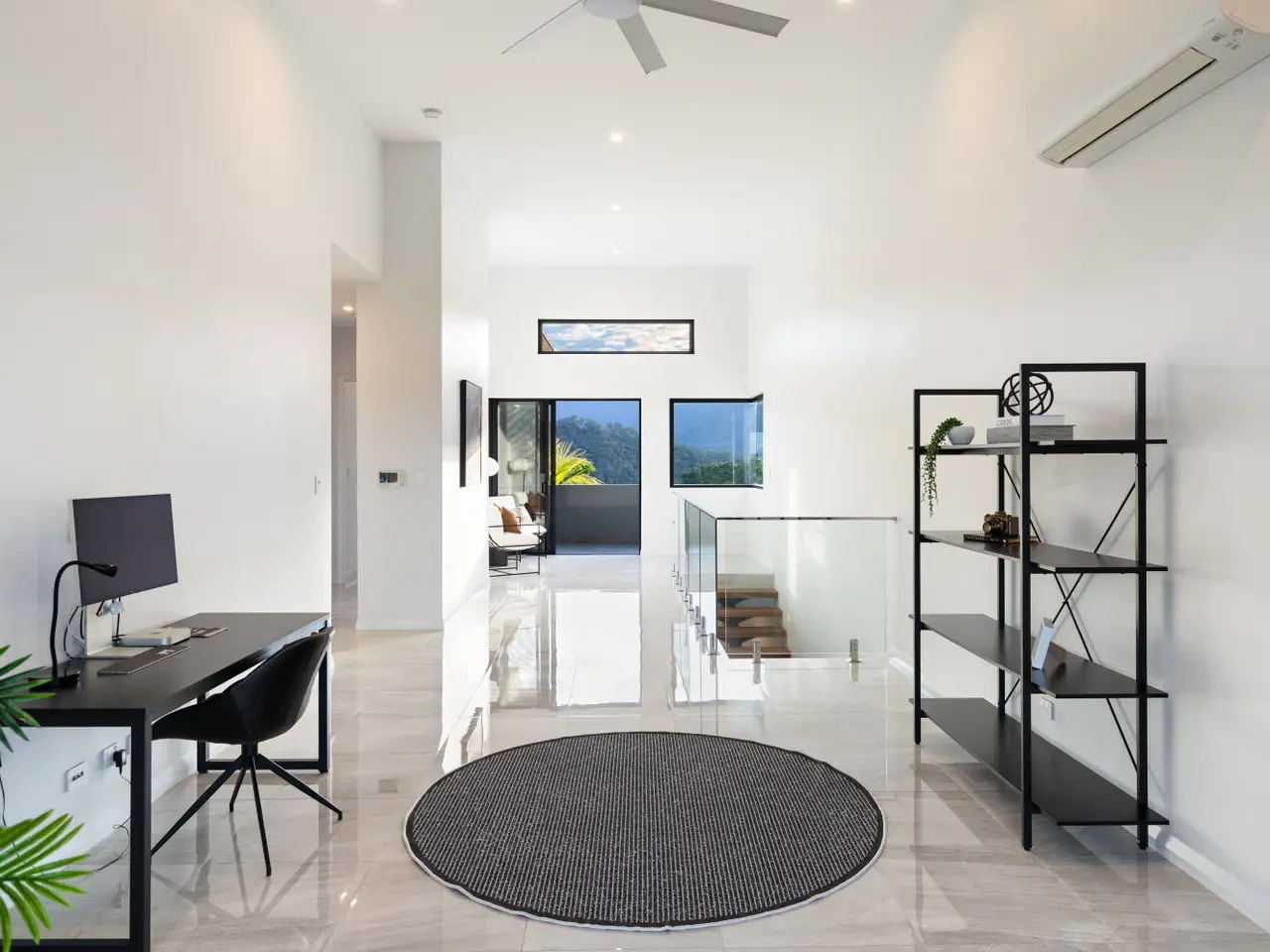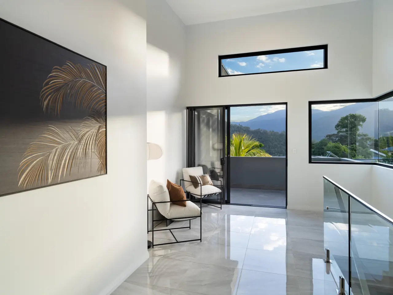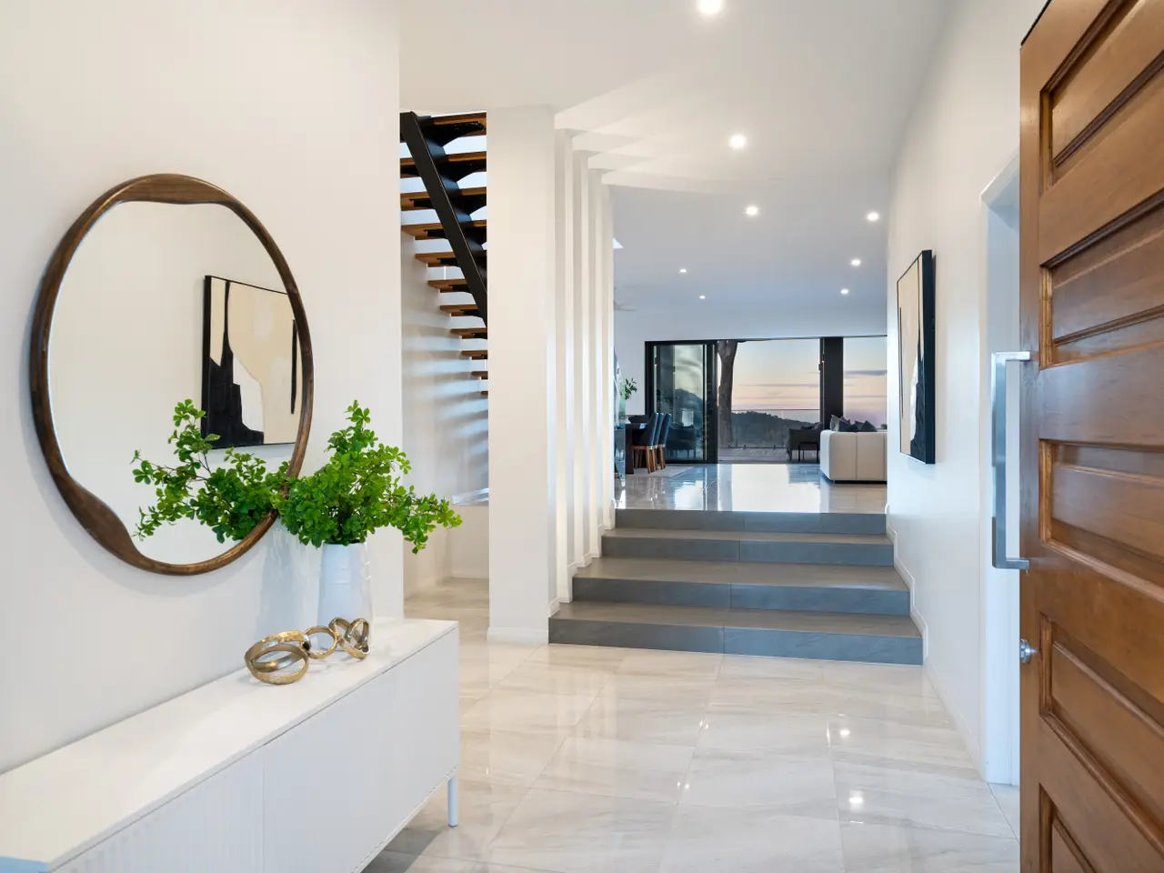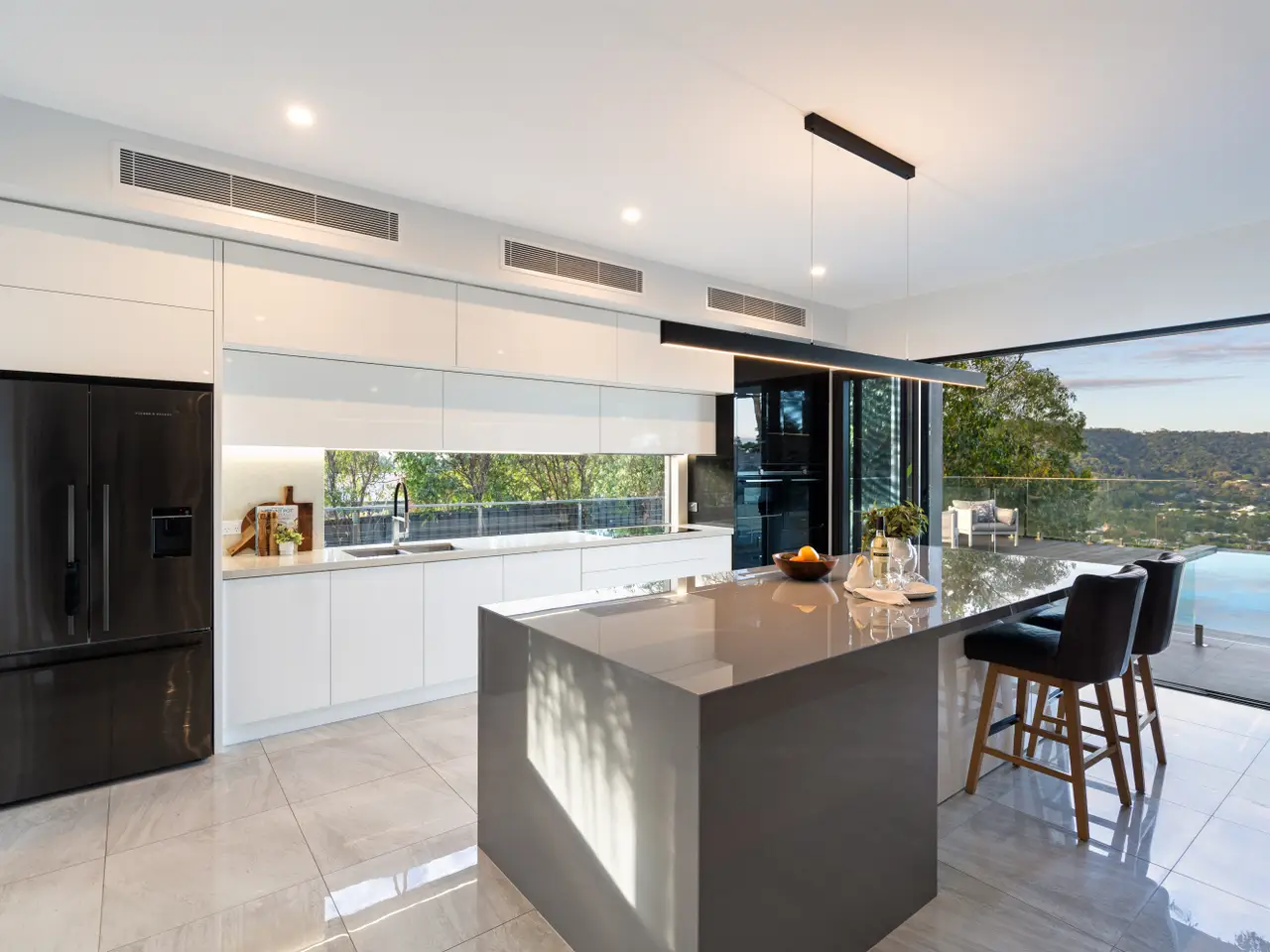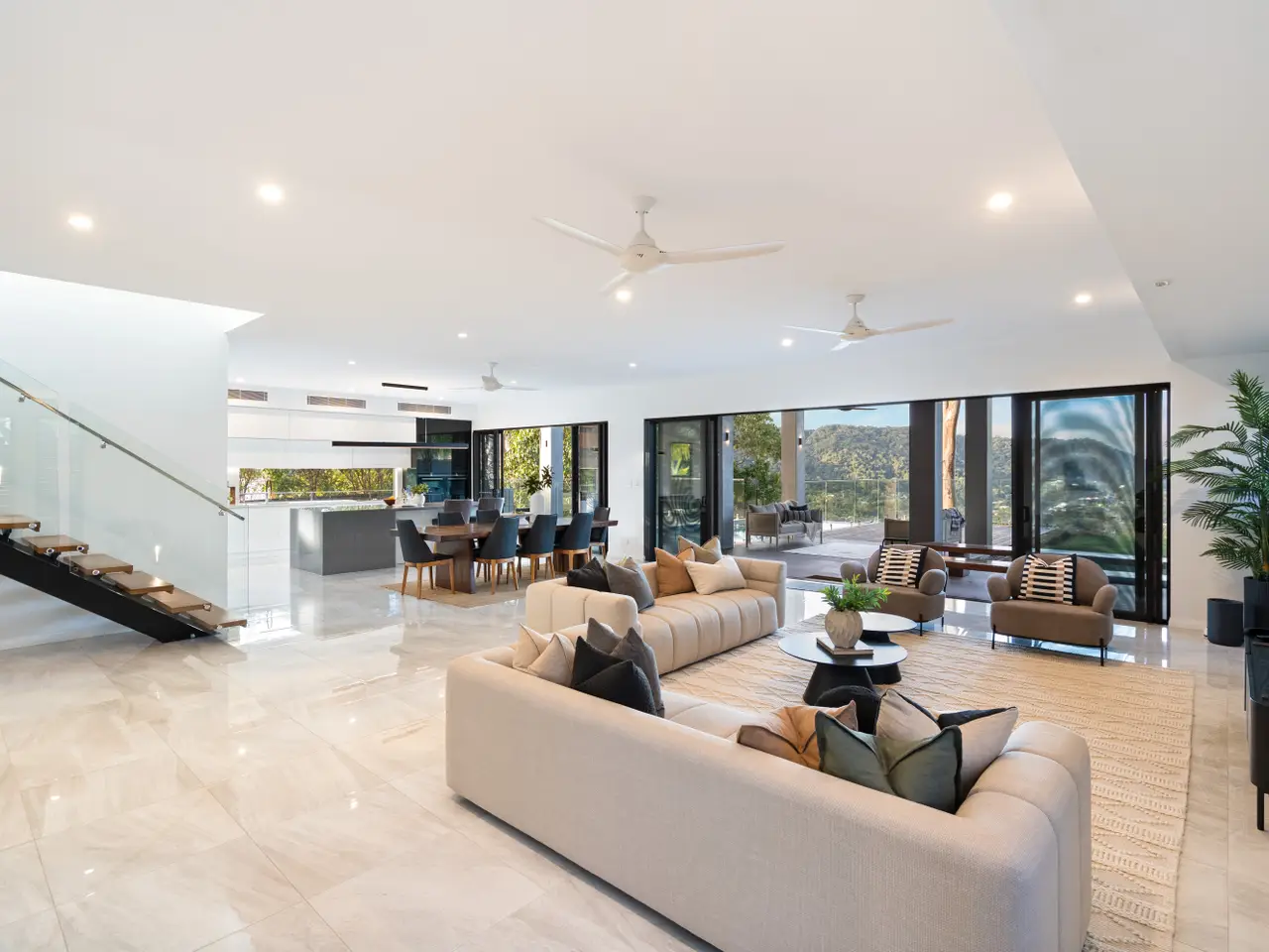 Positioned at the top of The Peak, this striking contemporary residence commands sweeping city, ocean, and mountain views. Built just four years ago to exacting standards, the home presents as new, with expansive interiors, soaring ceilings, and walls of glass designed to maximise light and outlook from every angle. The seamless connection between living spaces, balconies and a stunning wet-edge pool ensures effortless entertaining and a lifestyle of refinement and ease. - Prestigious, tightly held position at the top of The Peak - Over 540m² of living across two levels, designed for space and flow - Panoramic city, ocean, and mountain views enjoyed from almost every room - Expansive open-plan living and dining framed by full-height glass - Gourmet kitchen with butler's pantry, opening directly to poolside entertaining - Infinity-edge pool with decks and multiple alfresco terraces - Luxurious master retreat with ocean views, walk-in robe, and ensuite - Upstairs entertaining areas with balconies on both sides of the home - Guest suite with ensuite on ground level, ideal for multi-generational living - High-end bathrooms with full-height tiling and modern finishes - Ducted air-conditioning, tiled flooring, and secure entry with intercom - Oversized garage, powder room, lots of storage and solar power - Beautiful natural surrounds and established greenery - Low maintenance 1,013m² block, with small amount of grass for pets