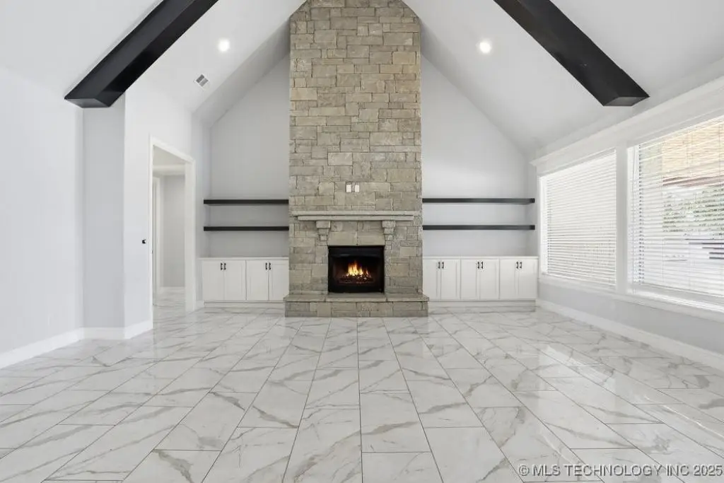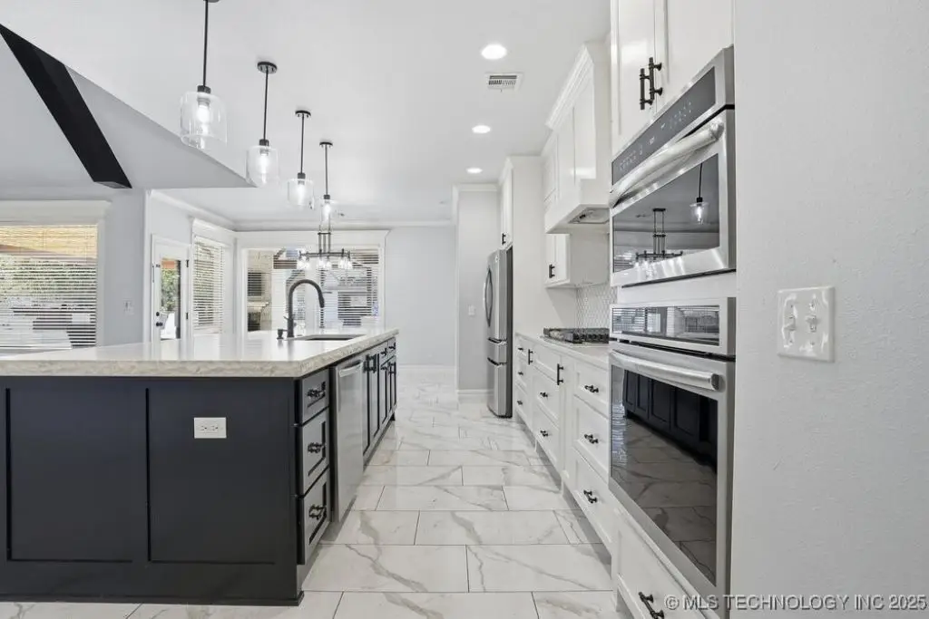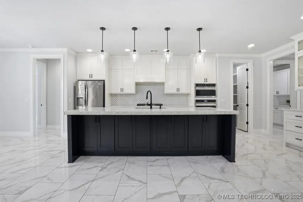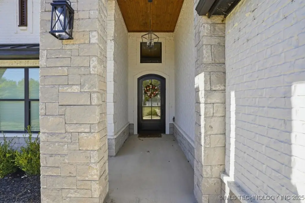 Welcome to this stunning 2022 customer-built home on 2.5 acres +/- gated, fully fenced acres in Broken Arrow. This 4-bedroom, 3.5-bath home features a 3-car garage with epoxy floors, high ceilings, and luxury finishes throughout. Enjoy a spacious kitchen with a large island, quartz countertops, gas cooktop, and oversized pantry. The primary suite offers a fireplace, walk-in shower, and custom box ceiling. Entry showcases a butterfly ceiling, and fireplace provide warmth and charm. Custom lighting, large living spaces, and tall ceilings elevate the feel. Step outside to a true backyard retreat with an outdoor kitchen, grill, bar, firepit, inground pool, hot tub, and fountain. Perfect for entertaining or peaceful evenings. Plenty of room to live, play, and relax with style and privacy.