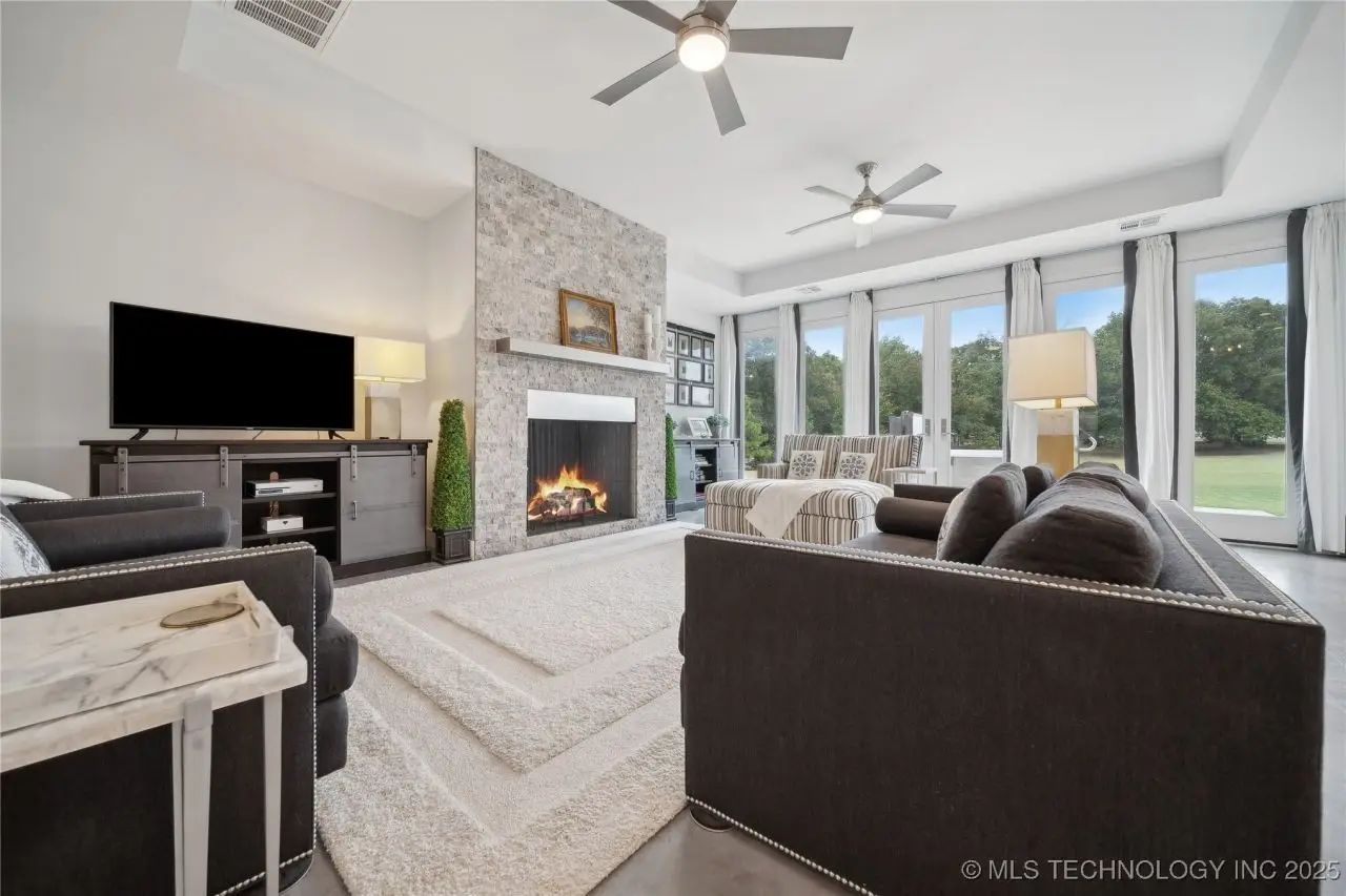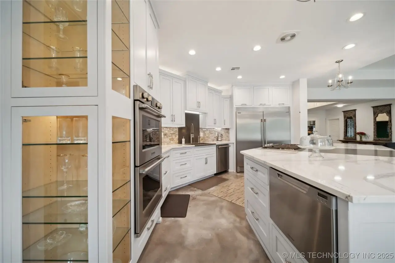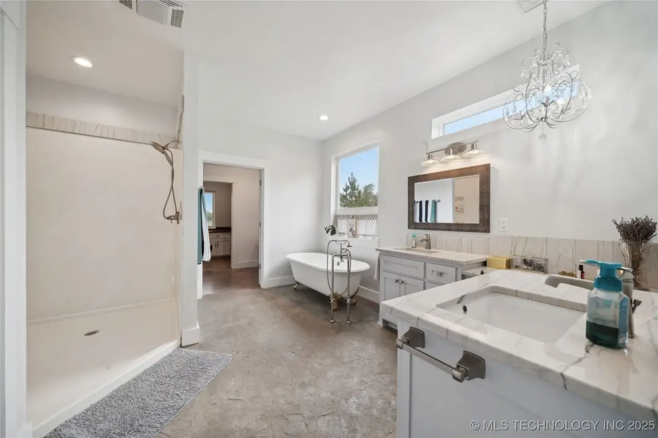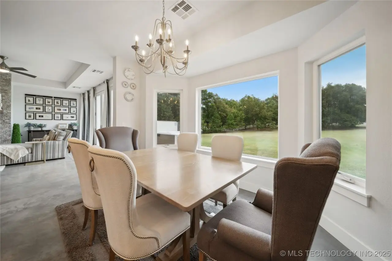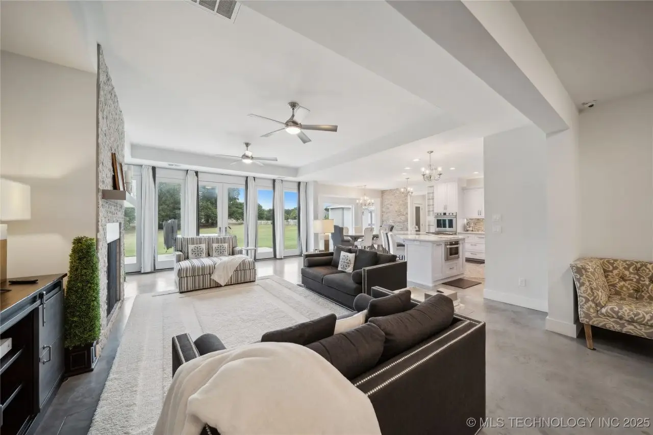 Step into this European inspired custom built home and shop located on 2.1 +/- acre lot in Broken Arrow's Blue Springs addition! A well thought out plan with attention to detail including a stunning two story entryway with two room located off the front; perfect for a study and sitting room. The welcoming living room with fireplace gives private views from the wall of windows providing perfect natural light. Come see the custom kitchen with a large island, granite, spacious eating area and a Viking 5 burner cooktop that's perfect for entertaining. The downstairs has sealed concrete floors and the upstairs features white oak hard woods for easy functionality. More charming features include: 2 bedrooms down, hobby room, tv/flex room, game room with a mini kitchen and 5 spacious bedrooms all with private baths and walk in closets. Also included on the property is a 2800sf (30x50) shop with three overhead doors and one side entry door. Both home and shop exterior walls are built with 2x6, interior walls 2x4, post tension slab on house & shop, the driveway is Rebar with tighter reinforced Rebar on the larger overhead garage door side.500-gallon owned propane tank that is dual system heat pump and electric when not using propane. Geo-spring hot water tank piped with gas converter from propane to gas and a circulation pump installed. The home also has a thermostat-regulated humidifier. The outdoor pet run can be easily converted to a chicken coop or removed. The backyard has endless possibilities with the hot tub and inviting yard ready for your personalization.