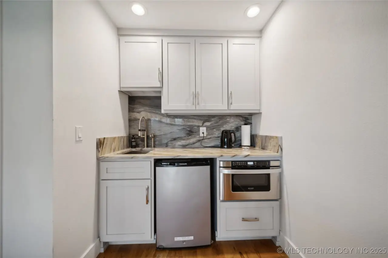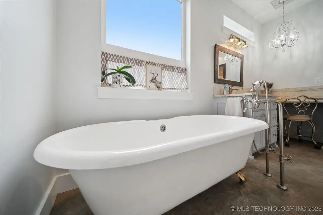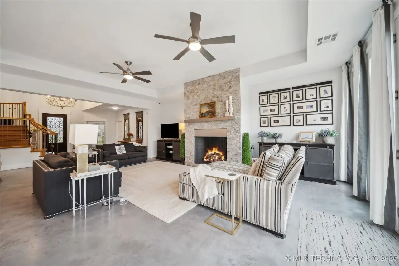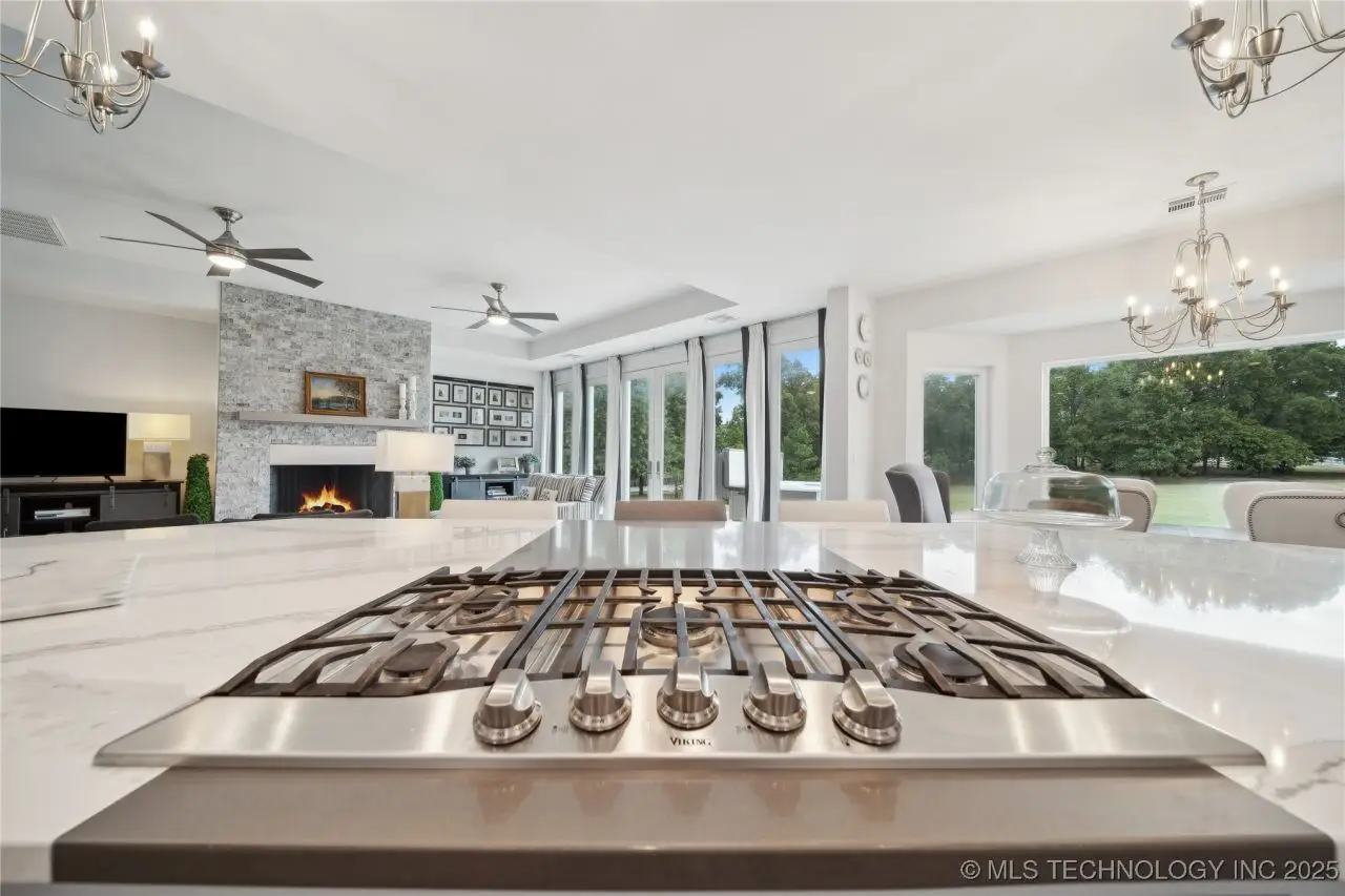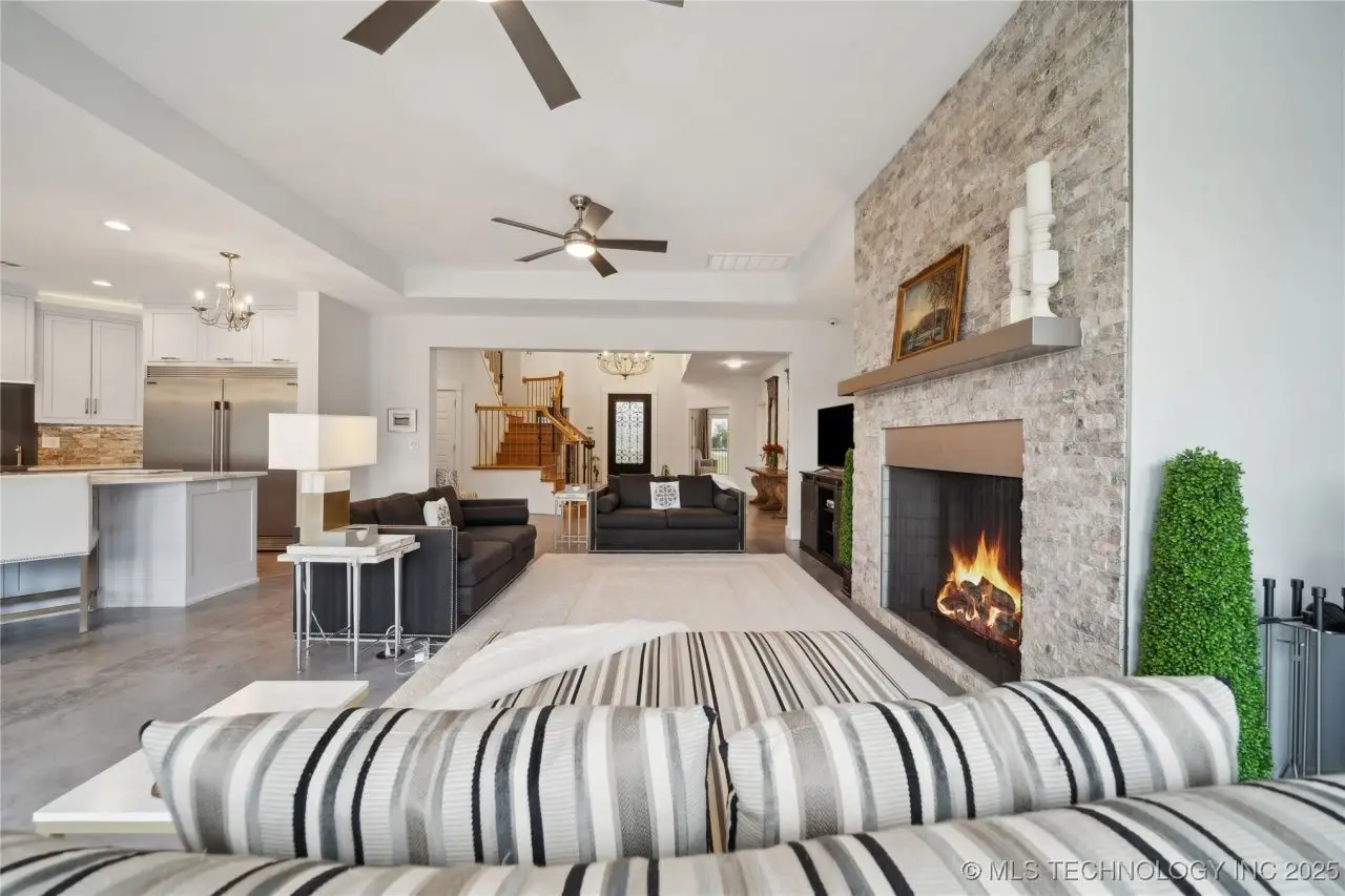 Step into this European inspired custom built home and shop located on 2.1 +/- acre lot in Broken Arrow's Blue Springs addition! A well thought out plan with attention to detail including a stunning two story entryway with two room located off the front; perfect for a study and sitting room. The welcoming living room with fireplace gives private views from the wall of windows providing perfect natural light. Come see the custom kitchen with a large island, granite, spacious eating area and a Viking 5 burner cooktop that's perfect for entertaining. The downstairs has sealed concrete floors and the upstairs features white oak hard woods for easy functionality. More charming features include: 2 bedrooms down, hobby room, tv/flex room, game room with a mini kitchen and 5 spacious bedrooms all with private baths and walk in closets. Also included on the property is a 2800sf (30x50) shop with three overhead doors and one side entry door. Both home and shop exterior walls are built with 2x6, interior walls 2x4, post tension slab on house & shop, the driveway is Rebar with tighter reinforced Rebar on the larger overhead garage door side.500-gallon owned propane tank that is dual system heat pump and electric when not using propane. Geo-spring hot water tank piped with gas converter from propane to gas and a circulation pump installed. The home also has a thermostat-regulated humidifier. The outdoor pet run can be easily converted to a chicken coop or removed. The backyard has endless possibilities with the hot tub and inviting yard ready for your personalization.