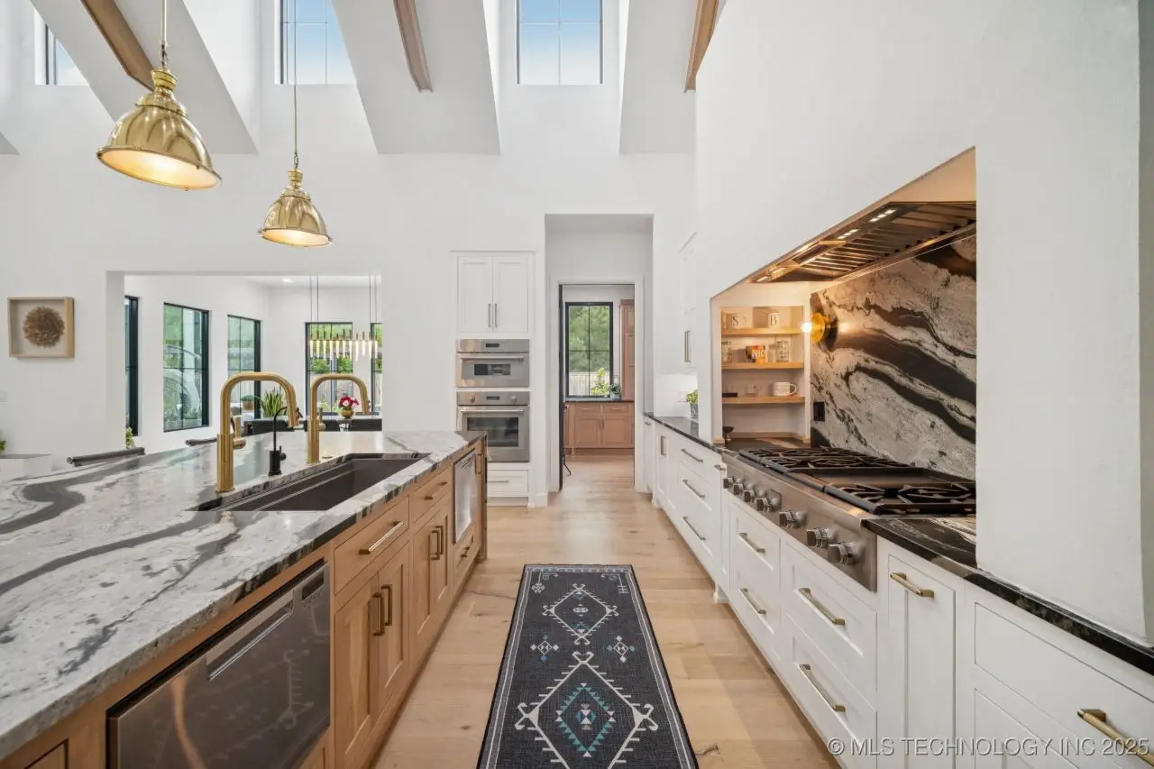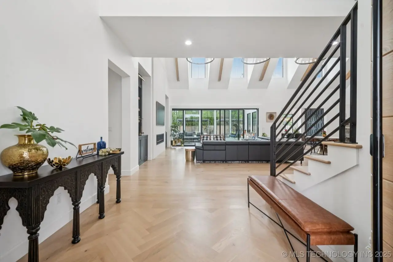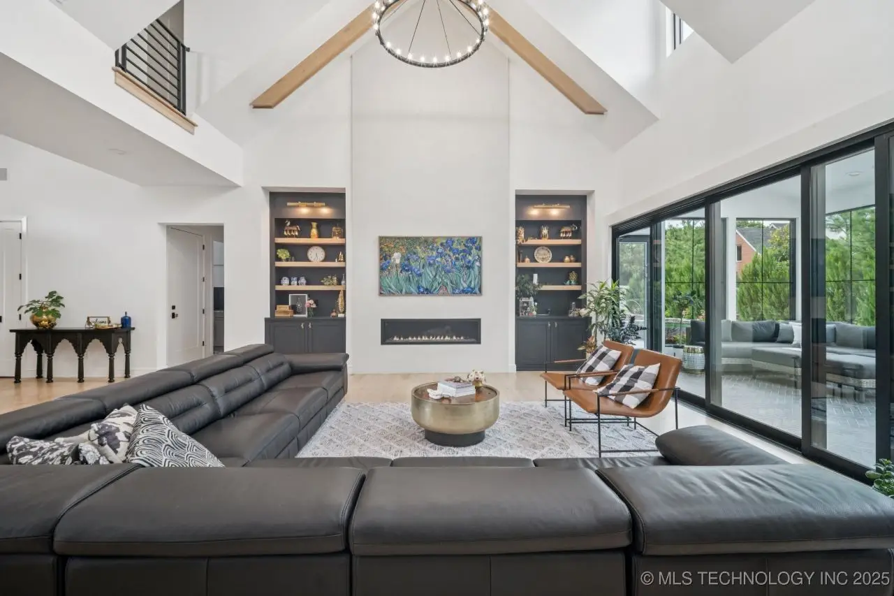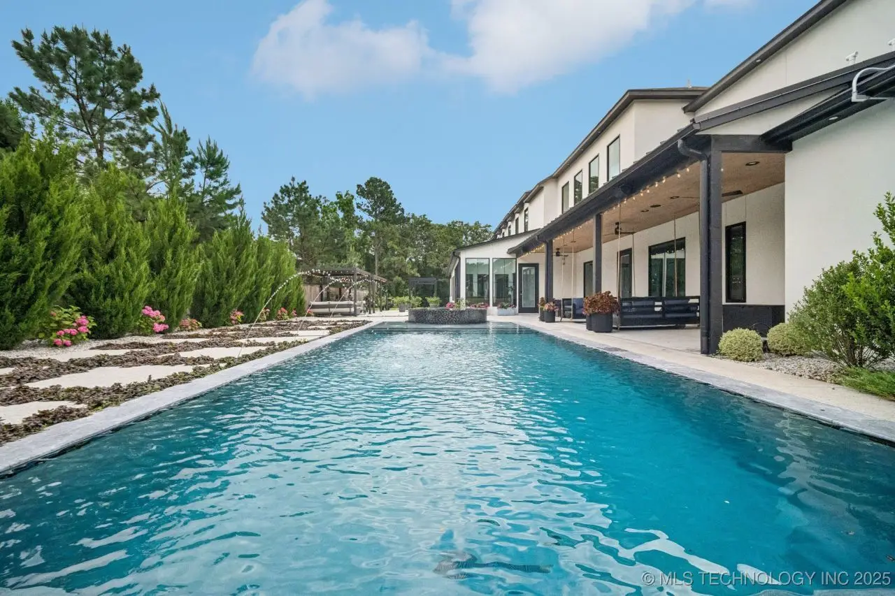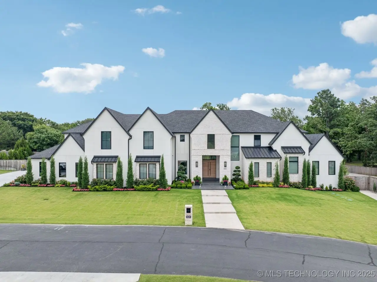 Modern Eco-Luxury Smart Home with Solar, Tesla Powerwall, Pool & Resort-Style Outdoor Living Completed in 2023, this modern estate combines contemporary elegance, energy efficiency, and future-ready technology. A striking exterior and lush evergreen landscaping welcome you inside, where soaring ceilings and floor-to-ceiling windows fill the home with light. The main level offers a designer kitchen with Thermador appliances, reverse osmosis system and a Scullery-style prep kitchen - a fully equipped second kitchen tucked away for cooking perfect for both everyday living and entertaining. Flexible living spaces include 5 bedrooms (all with ensuite baths + walk-in closets), 6 bathrooms, office, gym, an all-season enclosed sunroom designed to enjoy the changing scenery year-round, theater with wet bar, game room, hobby room, and dual laundries. A future elevator shaft and storm shelter add comfort and peace of mind. Step outdoors to a private resort retreat: sleek pool with spa, shaded pergolas, outdoor kitchen, covered patios (including a private patio off the primary suite), mature oak trees, raised garden beds, fruit trees, and drip irrigation. Smart features include rooftop solar panels, Tesla Powerwall, whole-home audio, integrated security with surveillance, motorized shades, wall iPorts, and EV-ready outlets in the oversized epoxy-finished 4-car garage. Located in the award-winning Bixby School District, this property blends sustainability, innovation, and luxury into one lifestyle. Special Features: Solar Panels Tesla Powerwall EV Charging / 4 car Smart Home Whole-Home Audio Motorized Shades Chef's Kitchen + Full Prep Kitchen / Pantry Theater Gym Sleek Pool & Spa Outdoor Kitchen Pergolas Seamless Indoor / Outdoor living Storm Shelter Future Elevator Shaft Dual Laundry Irrigated Raised Gardens Private Primary Patio. Be sure to view the video (https://iframe.videodelivery.net/5d62837dbdb4c3eabbff880f08a89753)
