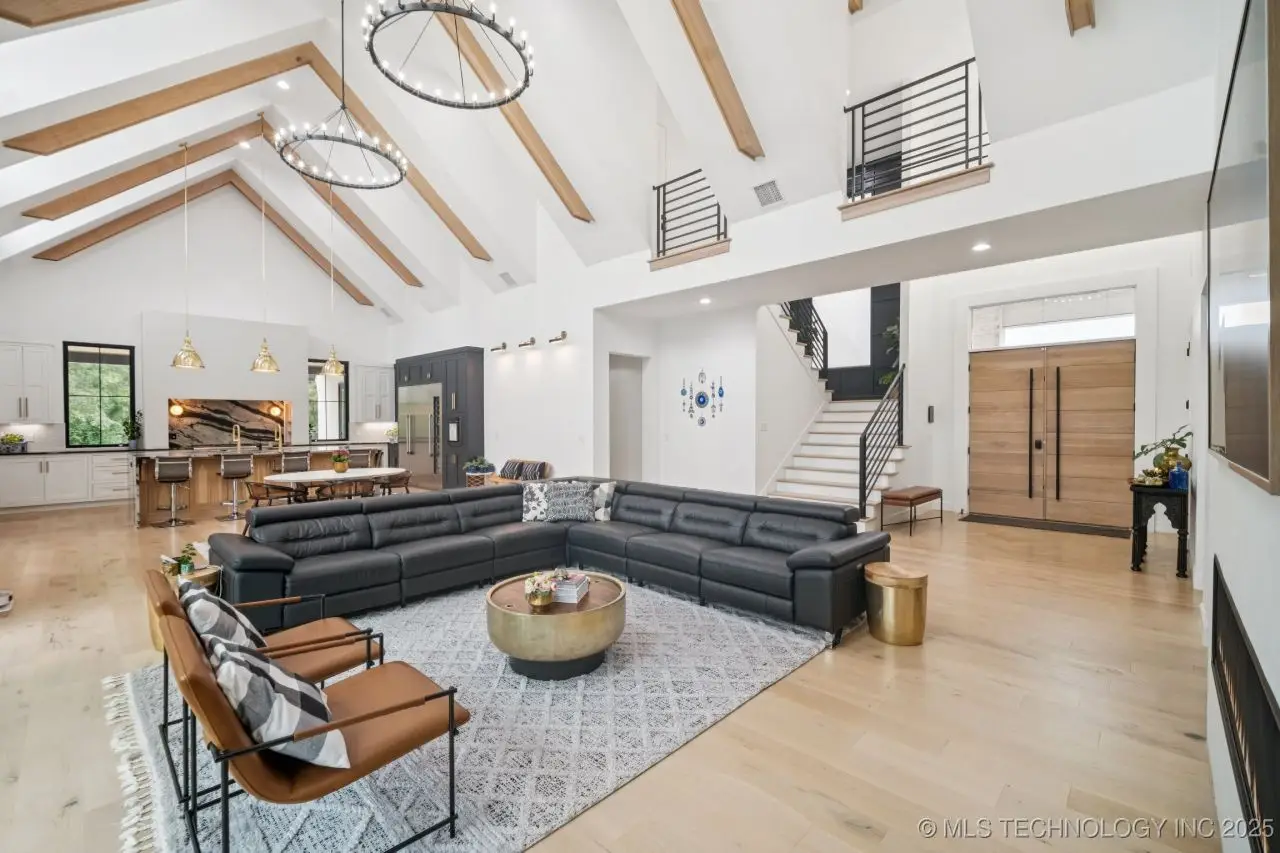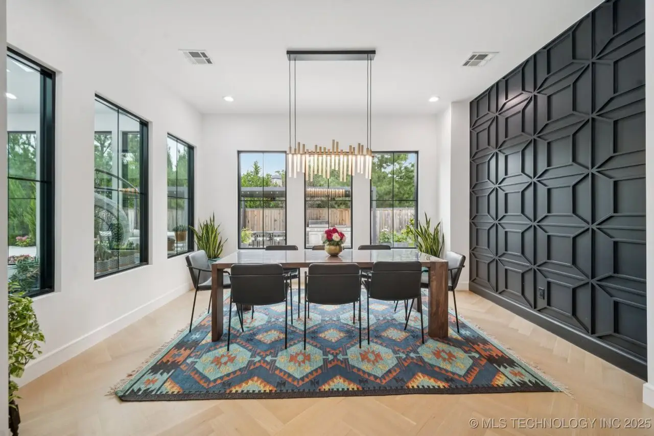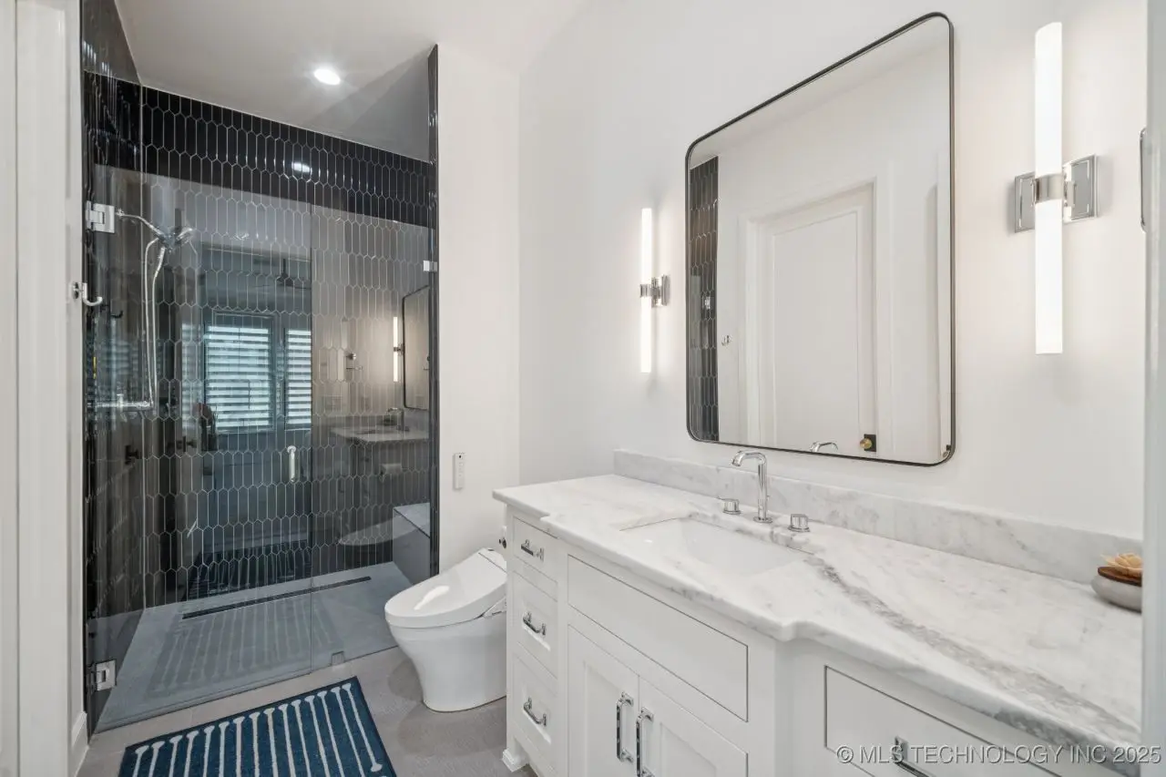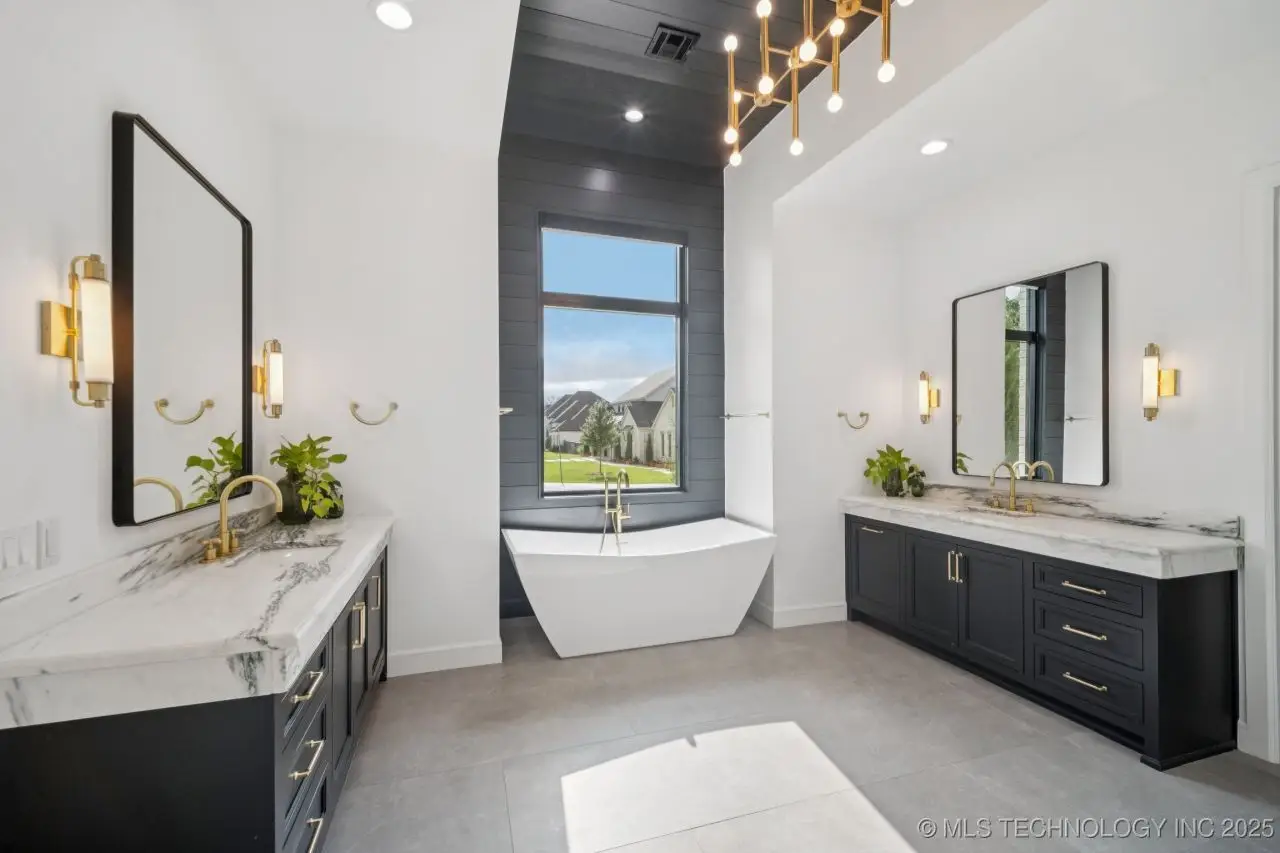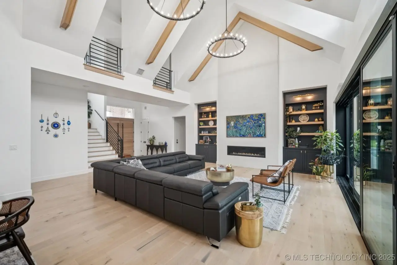 Modern Eco-Luxury Smart Home with Solar, Tesla Powerwall, Pool & Resort-Style Outdoor Living Completed in 2023, this modern estate combines contemporary elegance, energy efficiency, and future-ready technology. A striking exterior and lush evergreen landscaping welcome you inside, where soaring ceilings and floor-to-ceiling windows fill the home with light. The main level offers a designer kitchen with Thermador appliances, reverse osmosis system and a Scullery-style prep kitchen - a fully equipped second kitchen tucked away for cooking perfect for both everyday living and entertaining. Flexible living spaces include 5 bedrooms (all with ensuite baths + walk-in closets), 6 bathrooms, office, gym, an all-season enclosed sunroom designed to enjoy the changing scenery year-round, theater with wet bar, game room, hobby room, and dual laundries. A future elevator shaft and storm shelter add comfort and peace of mind. Step outdoors to a private resort retreat: sleek pool with spa, shaded pergolas, outdoor kitchen, covered patios (including a private patio off the primary suite), mature oak trees, raised garden beds, fruit trees, and drip irrigation. Smart features include rooftop solar panels, Tesla Powerwall, whole-home audio, integrated security with surveillance, motorized shades, wall iPorts, and EV-ready outlets in the oversized epoxy-finished 4-car garage. Located in the award-winning Bixby School District, this property blends sustainability, innovation, and luxury into one lifestyle. Special Features: Solar Panels Tesla Powerwall EV Charging / 4 car Smart Home Whole-Home Audio Motorized Shades Chef's Kitchen + Full Prep Kitchen / Pantry Theater Gym Sleek Pool & Spa Outdoor Kitchen Pergolas Seamless Indoor / Outdoor living Storm Shelter Future Elevator Shaft Dual Laundry Irrigated Raised Gardens Private Primary Patio. Be sure to view the video (https://iframe.videodelivery.net/5d62837dbdb4c3eabbff880f08a89753)