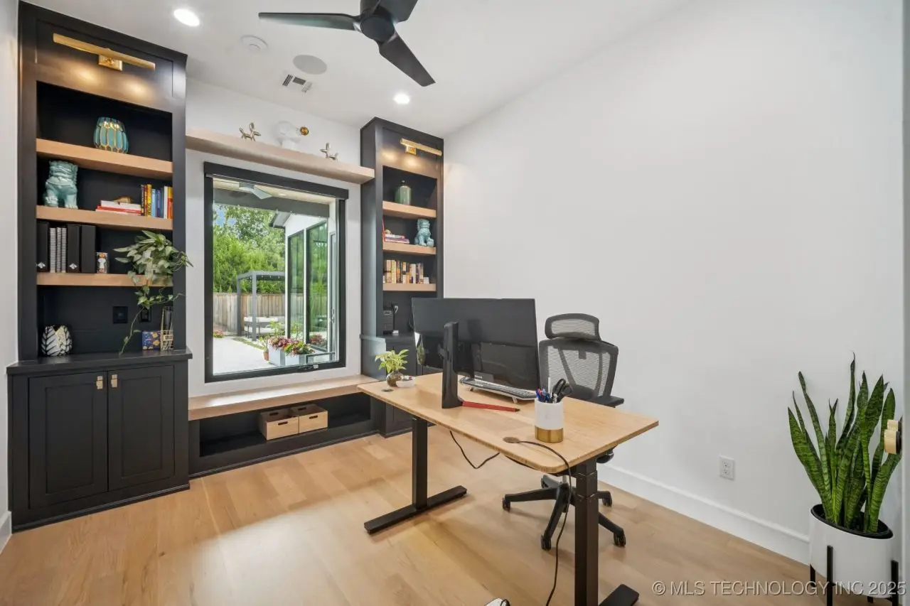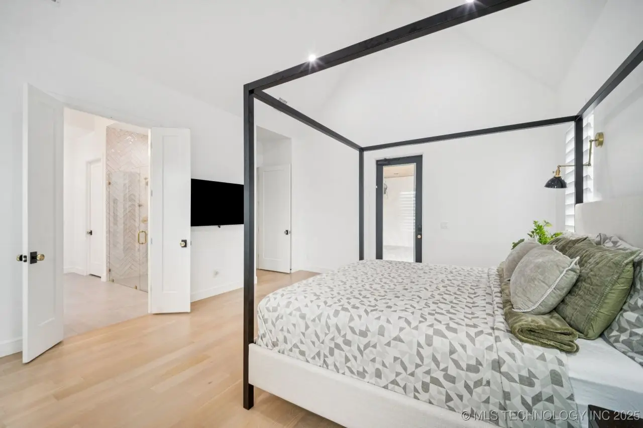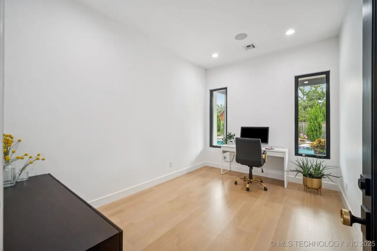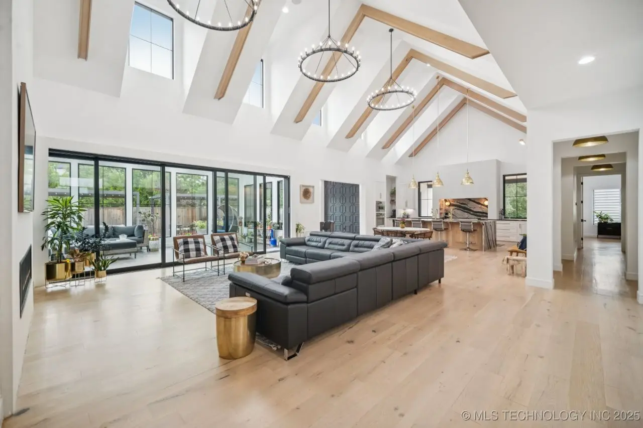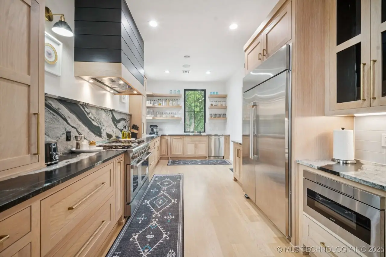 Modern Eco-Luxury Smart Home with Solar, Tesla Powerwall, Pool & Resort-Style Outdoor Living Completed in 2023, this modern estate combines contemporary elegance, energy efficiency, and future-ready technology. A striking exterior and lush evergreen landscaping welcome you inside, where soaring ceilings and floor-to-ceiling windows fill the home with light. The main level offers a designer kitchen with Thermador appliances, reverse osmosis system and a Scullery-style prep kitchen - a fully equipped second kitchen tucked away for cooking perfect for both everyday living and entertaining. Flexible living spaces include 5 bedrooms (all with ensuite baths + walk-in closets), 6 bathrooms, office, gym, an all-season enclosed sunroom designed to enjoy the changing scenery year-round, theater with wet bar, game room, hobby room, and dual laundries. A future elevator shaft and storm shelter add comfort and peace of mind. Step outdoors to a private resort retreat: sleek pool with spa, shaded pergolas, outdoor kitchen, covered patios (including a private patio off the primary suite), mature oak trees, raised garden beds, fruit trees, and drip irrigation. Smart features include rooftop solar panels, Tesla Powerwall, whole-home audio, integrated security with surveillance, motorized shades, wall iPorts, and EV-ready outlets in the oversized epoxy-finished 4-car garage. Located in the award-winning Bixby School District, this property blends sustainability, innovation, and luxury into one lifestyle. Special Features: Solar Panels Tesla Powerwall EV Charging / 4 car Smart Home Whole-Home Audio Motorized Shades Chef's Kitchen + Full Prep Kitchen / Pantry Theater Gym Sleek Pool & Spa Outdoor Kitchen Pergolas Seamless Indoor / Outdoor living Storm Shelter Future Elevator Shaft Dual Laundry Irrigated Raised Gardens Private Primary Patio. Be sure to view the video (https://iframe.videodelivery.net/5d62837dbdb4c3eabbff880f08a89753)