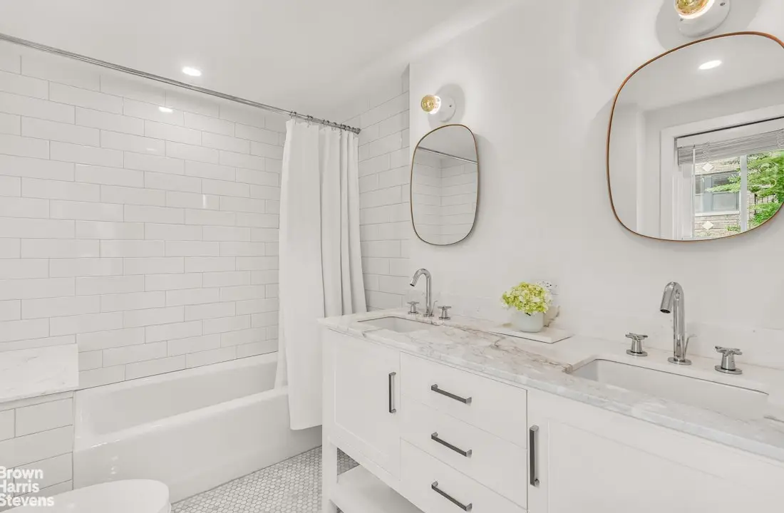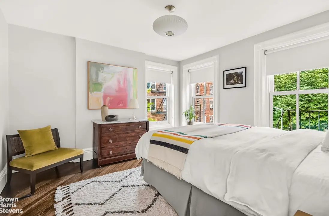 Beyond the kitchen, discover spaces bathed in natural light, thanks to the home's triple exposures, with an impressive array of 35 windows and a rooftop skylight. Corner rooms with double exposures offer tree-lined street views and an abundance of sunlight, creating warm, inviting environments throughout the day. For the ultimate in cozy ambiance, there is a parlor floor woodburning fireplace, elegantly surrounded by Calacatta Ora marble, perfect for drawing together on crisp New York evenings. On the ground floor there is another large living room/den, in which to play games, exercise, watch movies or just chill.