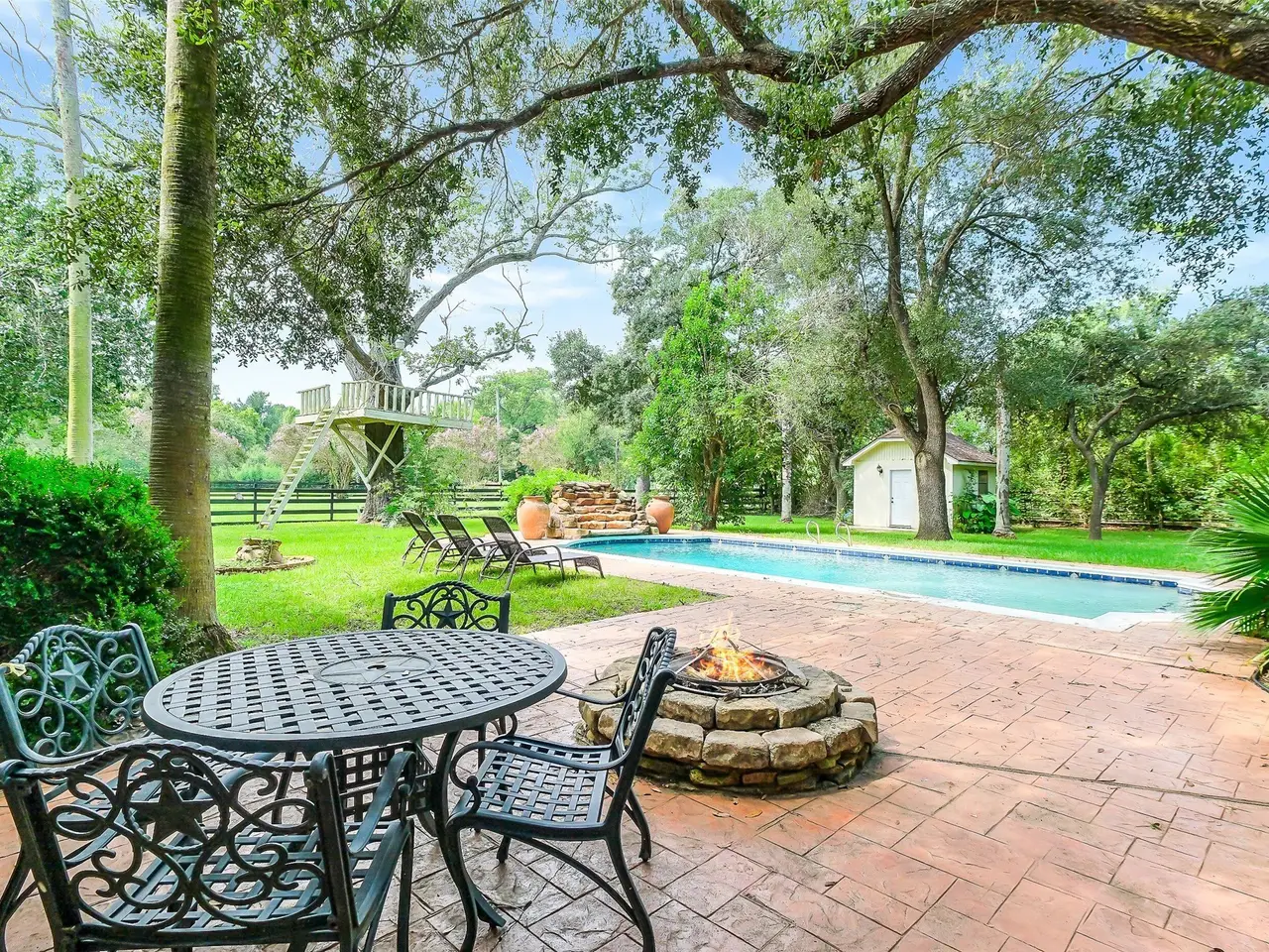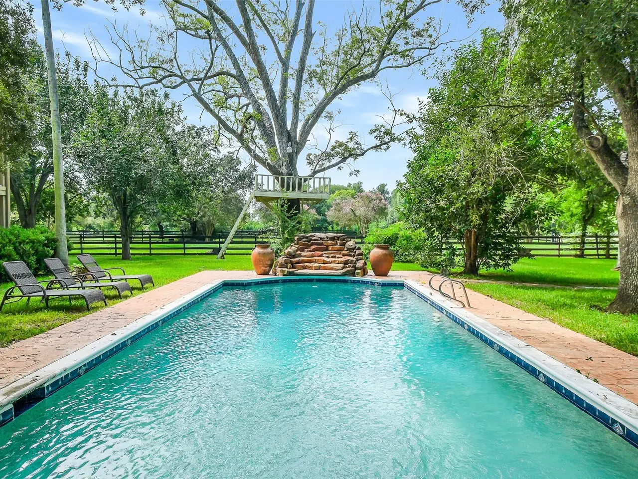 This stunning property in Brookshire, Texas, spans 4.37 acres with a spacious 7,800 square foot home featuring SIX BEDROOMS, four full baths and 2 half baths. The fully fenced estate boasts a gated entrance and a generous double-wide driveway. Highlights include a gazebo, a GUEST HOUSE, and a two-story barn with 10 STABLES with lodging areas for horses and also a CORRAL. Enjoy the serenity of a man-made pond where you can fish for Bass and Catfish, a pool house with two dressing rooms, and a gorgeous pool with delightful water features. In the home, there is a GAMES ROOM and dedicated HOME THEATER. There is plenty of parking and a five-car garage. The acreage offers so many opportunities; the home is 40 minutes from downtown Houston, less than five minutes from the I-10 but with the serenity that living surrounded by green fields and nature brings. There is also ample space for entertaining - this exceptional property is a must-see. Don't miss your chance to explore it!