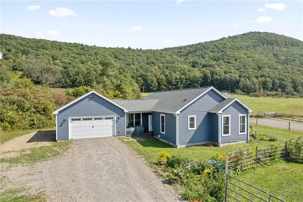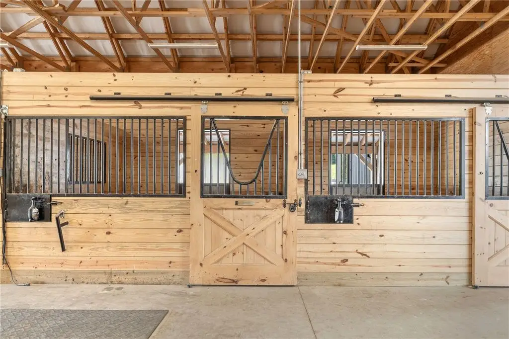 This exceptional equestrian property offers a rare combination of features. Set on 30 acres only 15 minutes from Cornell University in the Finger Lakes region, this facility's amenities are top of the line! The barn features 6 stalls, all with 12x12' mats, outlets and automatic waterers, a wash stall, heated bathroom, feed room, and heated tack room with observation area. 5 stalls have Dutch doors to the run-in shed and dry lot paddock that leads to a 20-acre pasture. The 80 x 160 indoor arena is perfect for year-round equestrian needs and the professionally built turf riding field with cross country jumps offers even more riding space. An additional paddock with run-in and large storage area off the arena round out this elite facility. Relax and watch your horses through the wall of windows in your 2020, 3-bedroom home with an open floor plan, 9-foot ceilings, lots of light, a perfect primary suite and plenty more space in the basement to expand or use for gym/rec activities. Geothermal heat for the home and solar for the house and stable result in very low utilities. Currently an income producing boutique boarding business. Continue a business or use it all for your own horses!