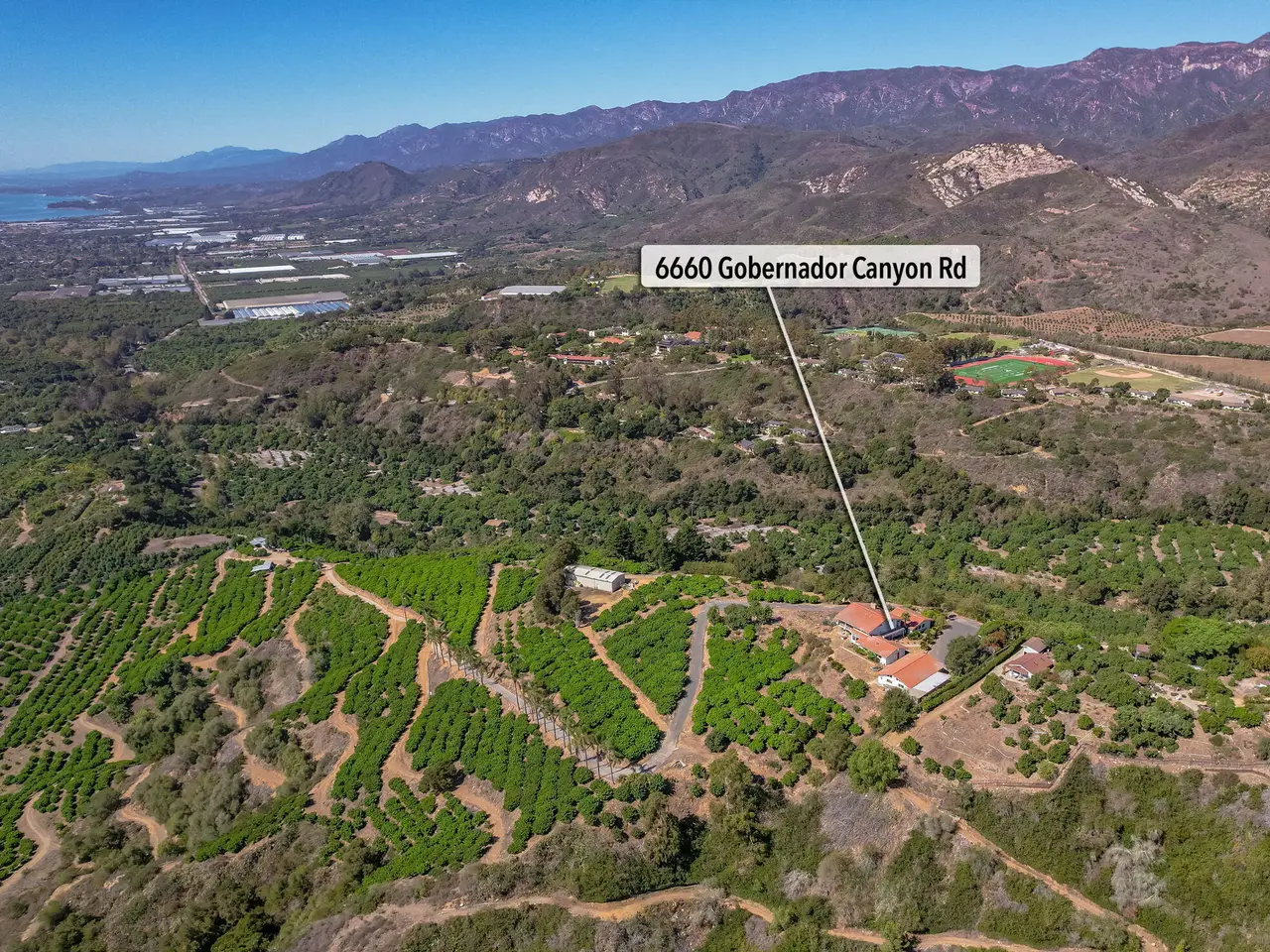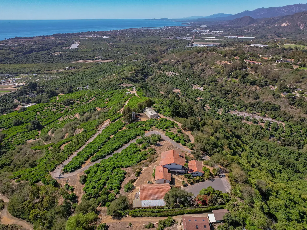 Conveniently located Carpinteria ranch showcasing unobstructed panoramic ocean, island, coastline & mountain views on 28+ acres on 2 parcels (22.5+ & 6 + acres). 1st time offered in 55+ years. This gated & private ranch features approx. 3,000 cherimoya trees, 500 avocado trees & a family orchard. The spacious two-story 5 bed, 3.5 bath home with wraparound patios & decks takes full advantage of the jaw-dropping panoramic vistas. Comfortable as is, or with exciting remodel or reimagining potential. The large motor court has a detached 4+ car garage & large workshop with full bath.The 2nd parcel boasts a large barn perfect for car enthusiasts or hobbies.Currently in an ''Ag preserve''. Come experience the peacefulness, privacy, beauty & lifestyle this exceptional ranch/family compound offers