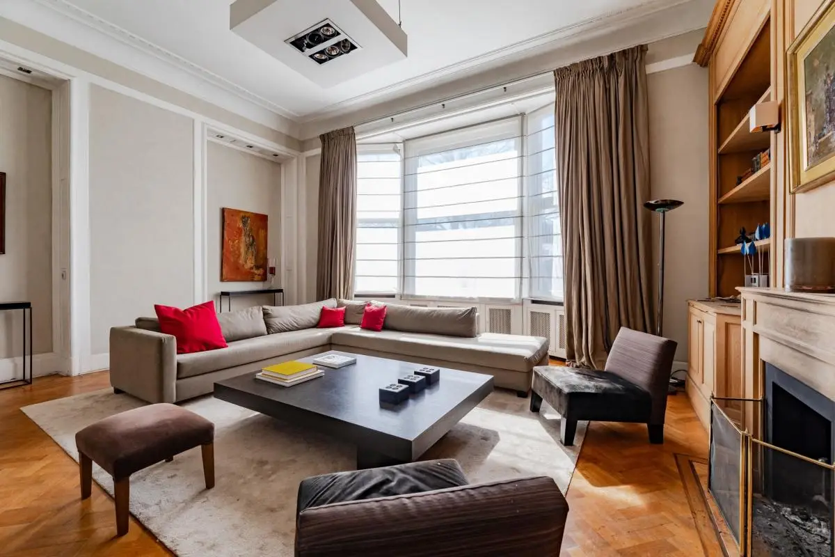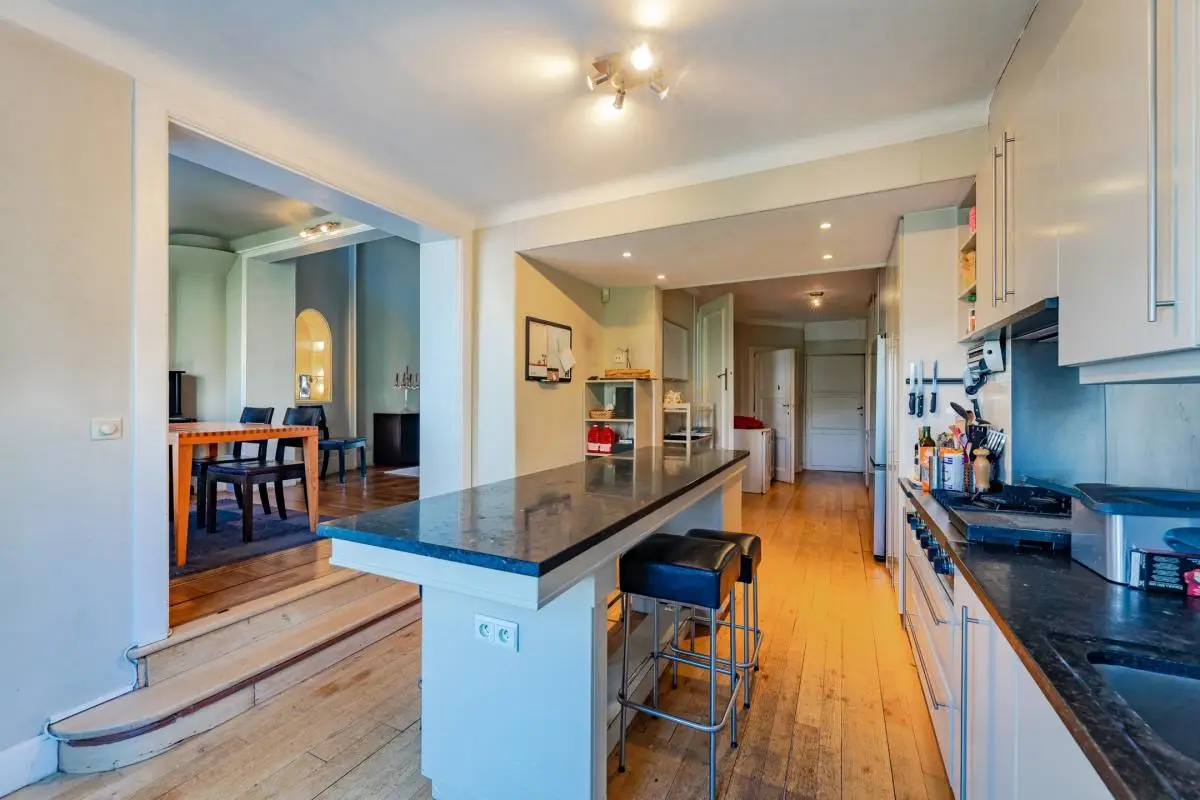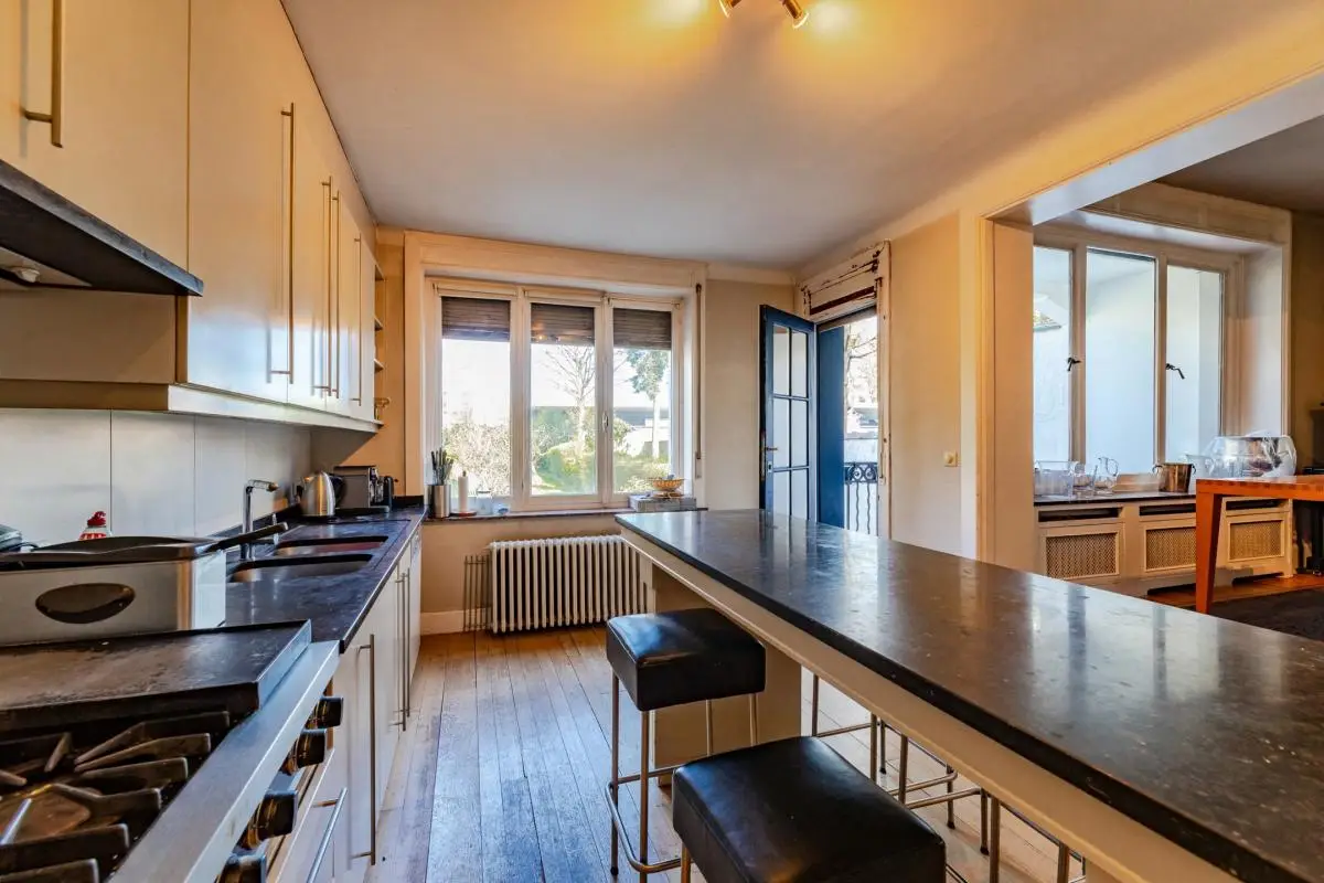 Facing the Bois de la Cambre, this elegant 1930s mansion immediately captivates with its distinctive 7-metre façade, combining red brick and cut stone, enhanced by an imposing carved stone balcony. Renovated over the years, this residence with its preserved character has a built area of ± 660 m², on a plot of ± 5 ares 50 including a city garden of ± 3 ares 20. Its office permit for ± 200 m² makes it ideal for mixed use. It offers beautiful, bright reception rooms, a super equipped kitchen, 5 bedrooms including a master suite, 3 bathrooms, as well as an integrated garage and a parking space. A rare property, combining residential prestige and functionality, in the heart of a sought-after neighbourhood. EPC F