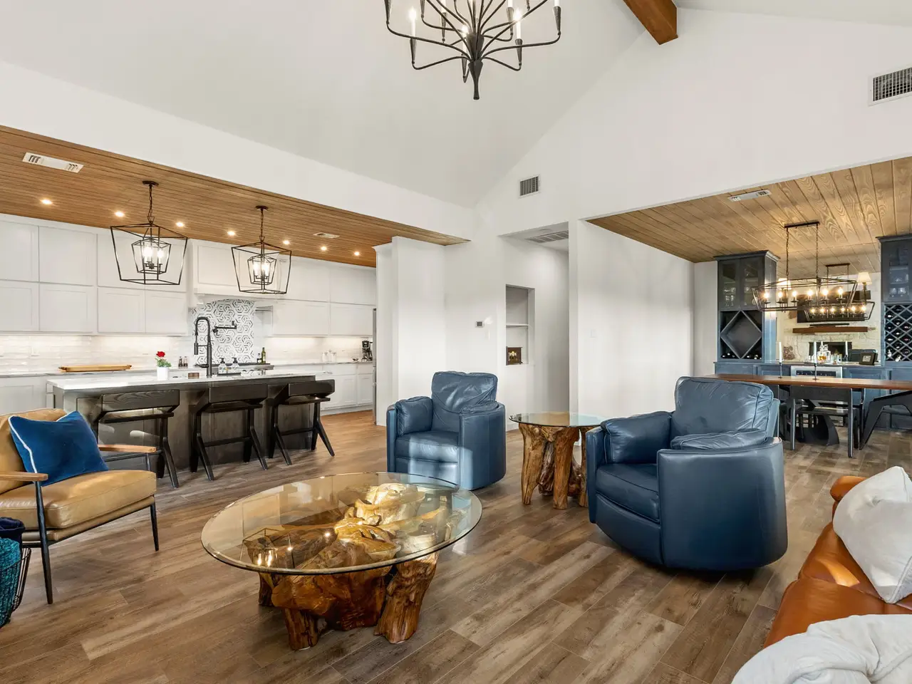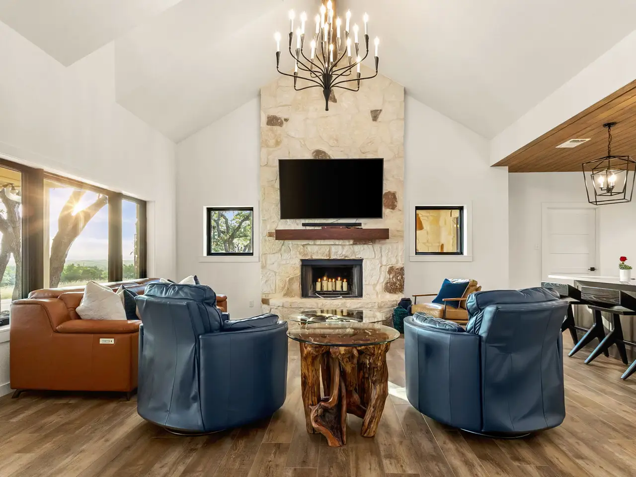 Experience elevated Hill Country living on 7.34 unrestricted acres with panoramic views and ultimate privacy. This completely renovated single-story ranch boasts high-end finishes throughout-featuring Andersen windows, Kentmore cabinetry, vaulted ceilings, and a designer kitchen built to impress. The 2 bed/2 bath main residence is complemented by a 1 bed/1 bath casita and a fully finished flex space ideal for a luxe bar, retreat, or studio. Spa-style bathrooms, stone fireplace, and expansive indoor-outdoor flow enhance the living experience. Equestrian-friendly and ideal for FFA/4H projects, with a private well, workshop, and no HOA. An exceptional estate blending modern elegance with country freedom. - 10/31/2025 8:00:54 AM